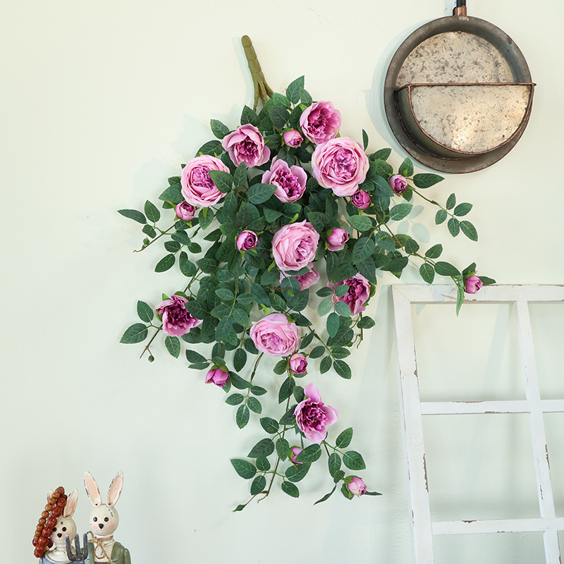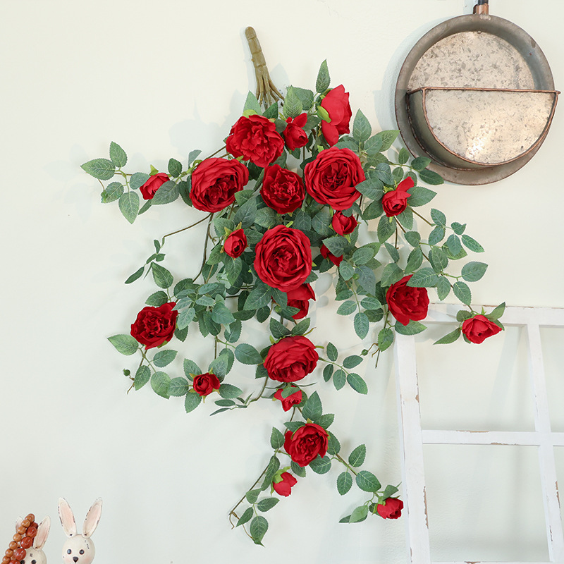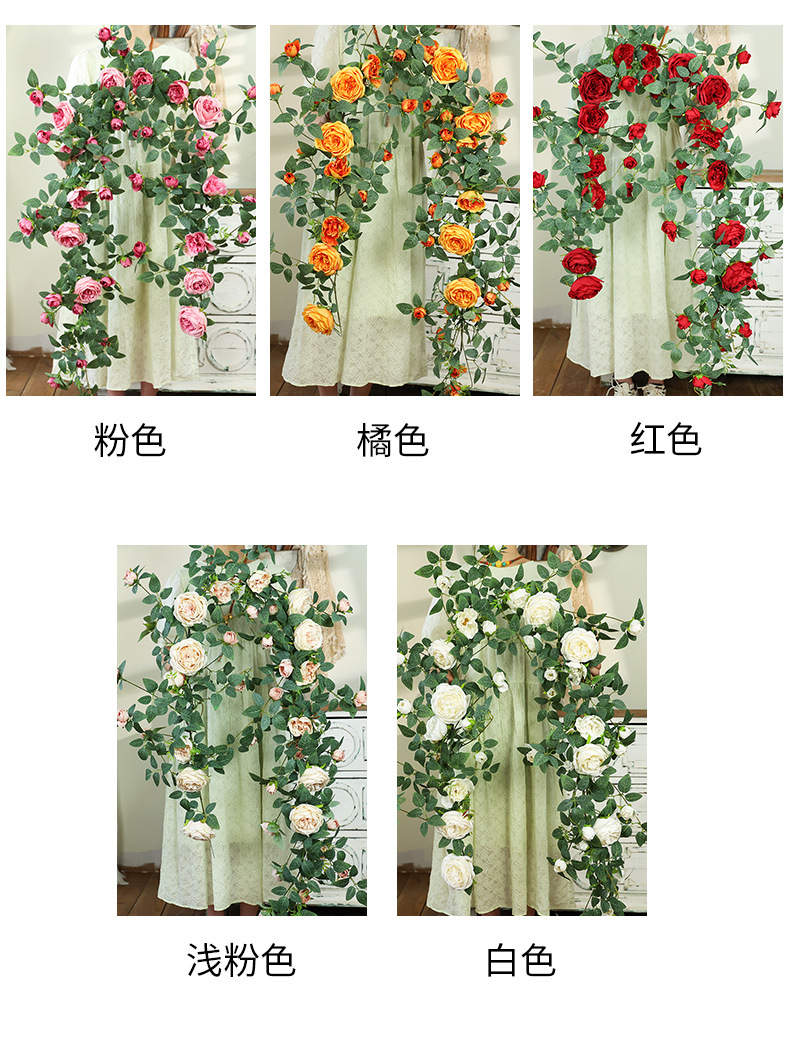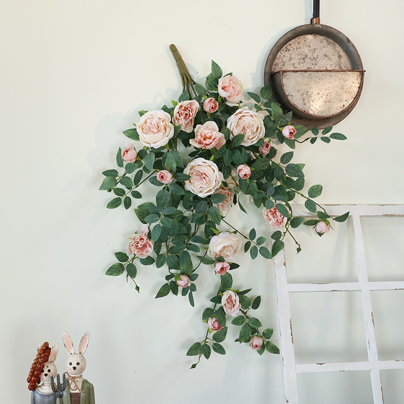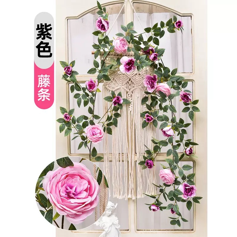 仿真甜心玫瑰藤条仿真花藤装饰吊花玫瑰缠绕藤蔓花艺管道吊顶橱窗