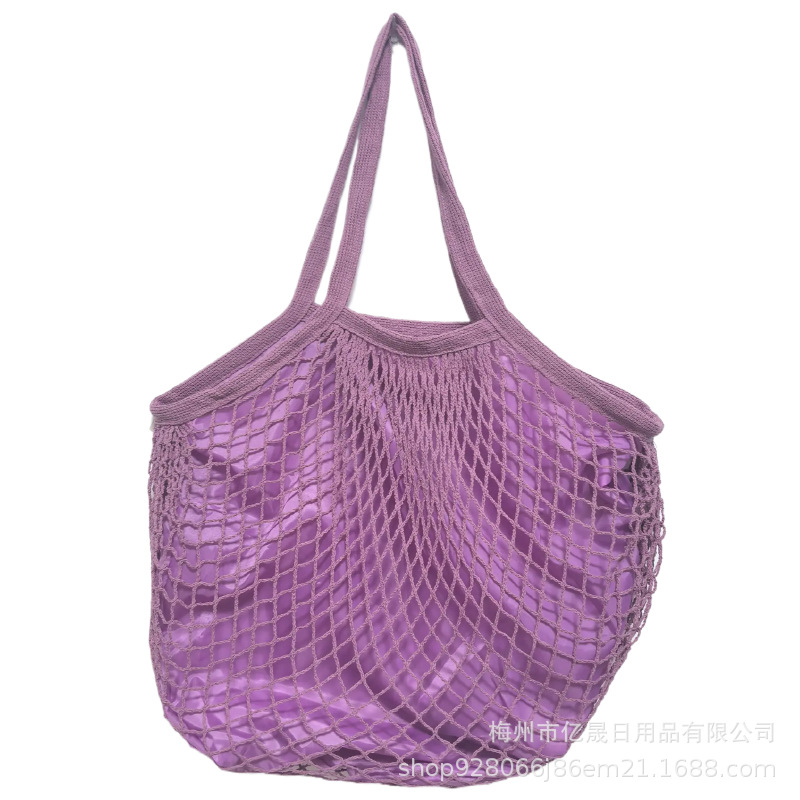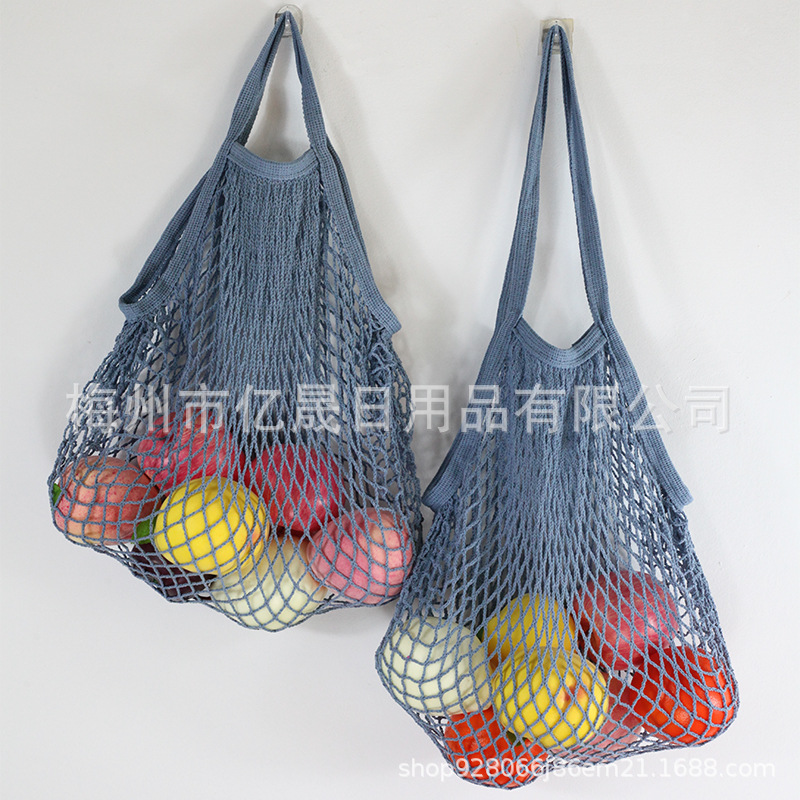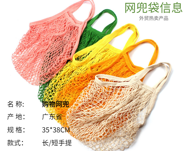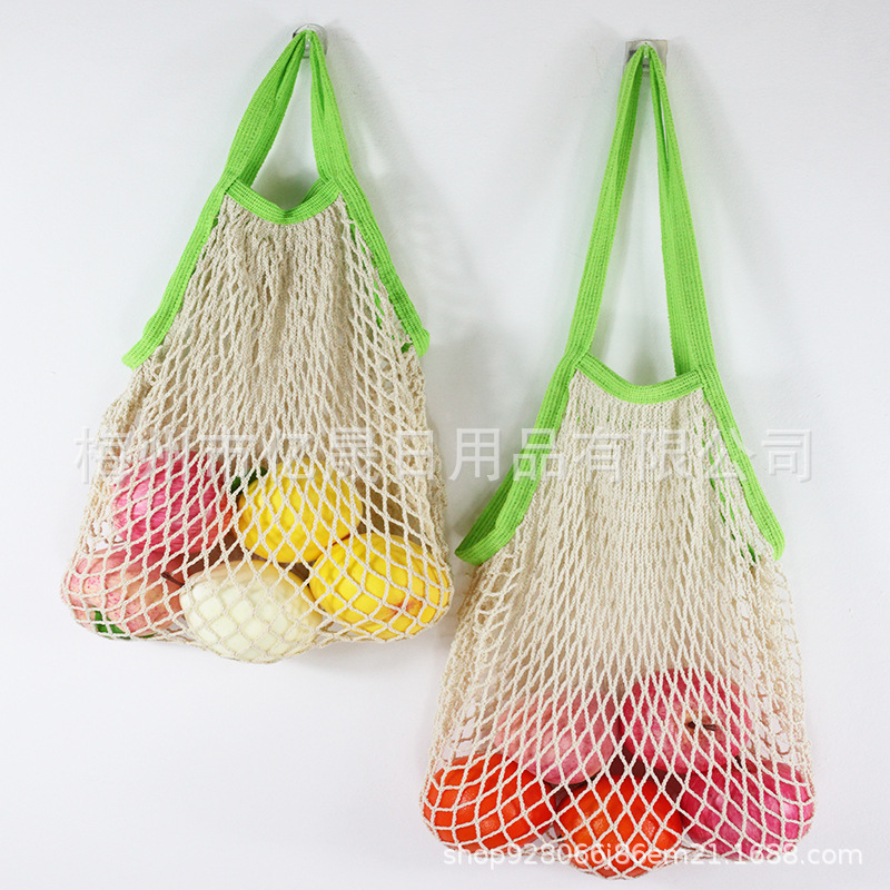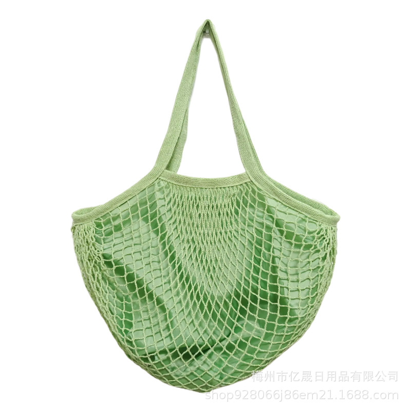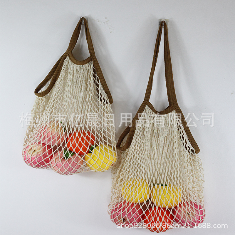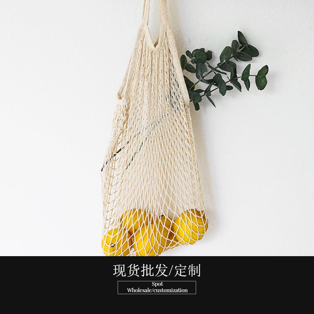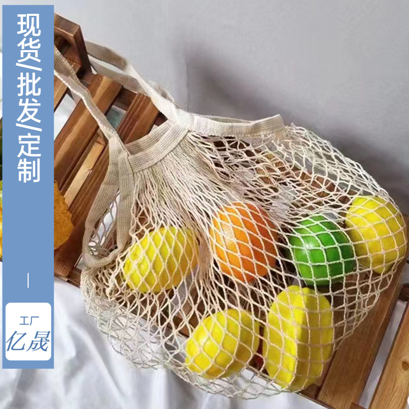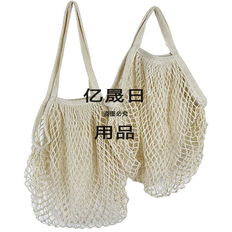 现货收纳折叠袋便携纯棉网袋手提式网兜水果购物网兜袋编织棉网兜
