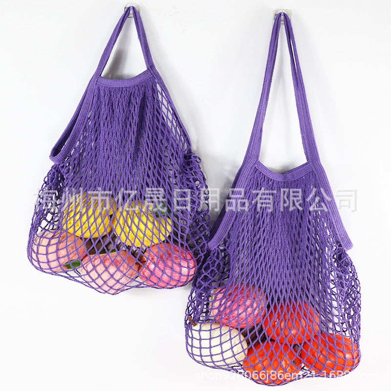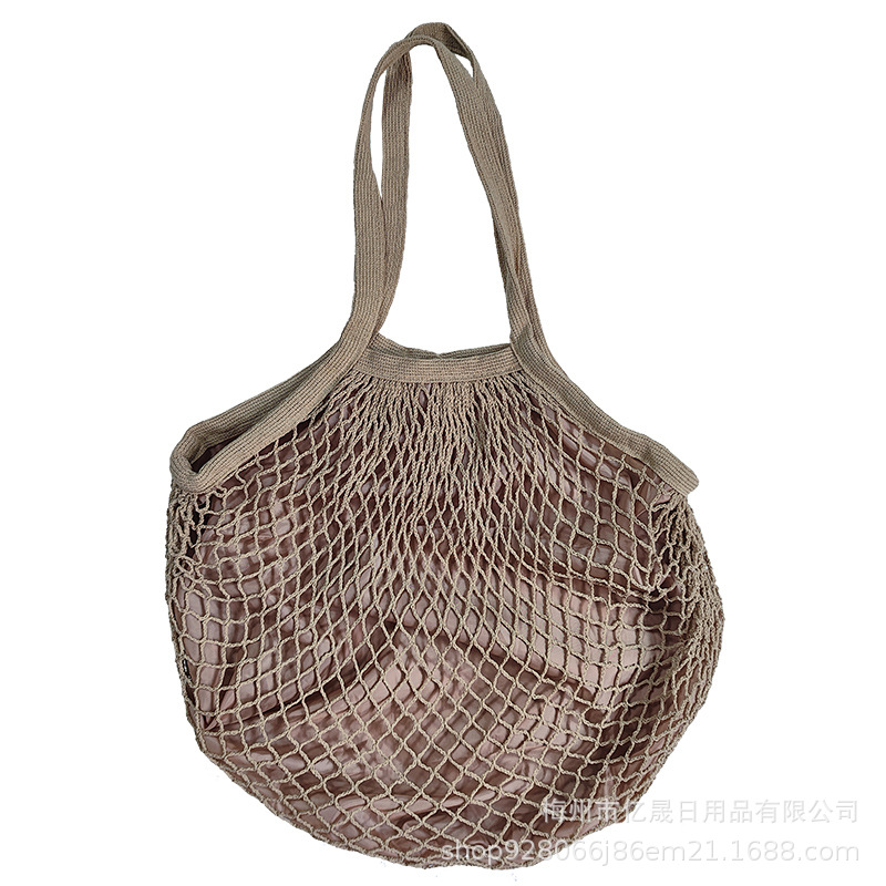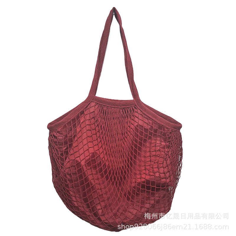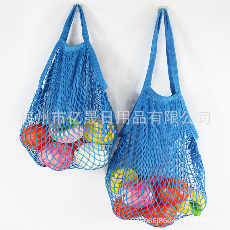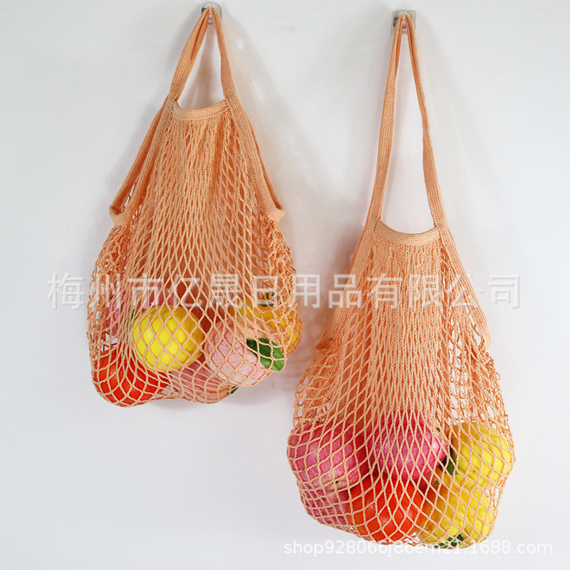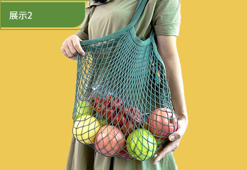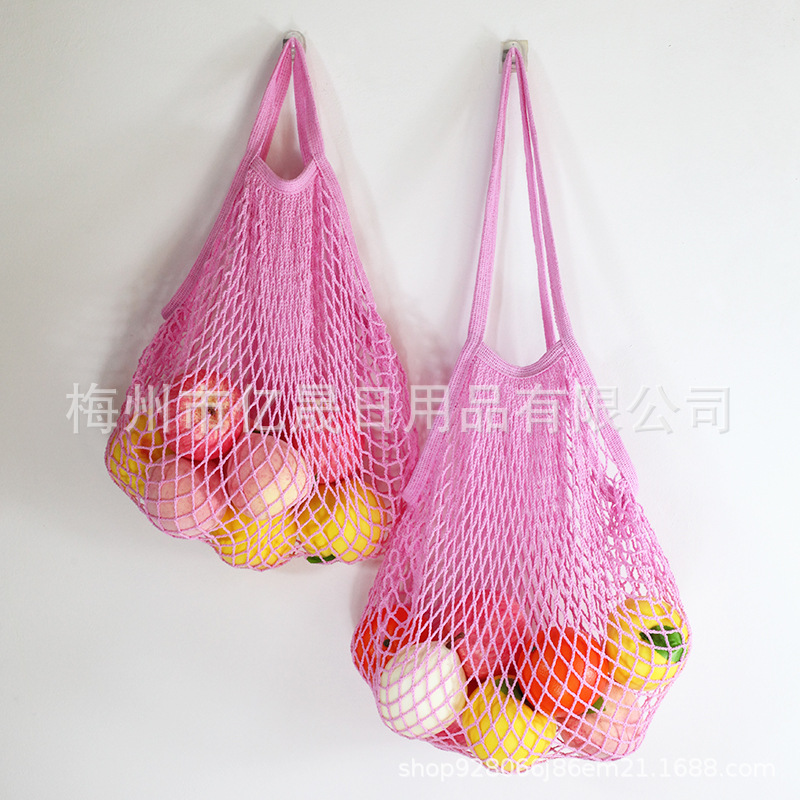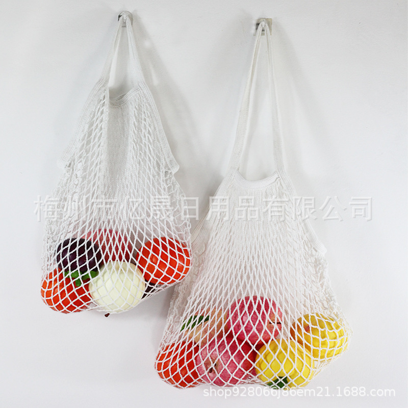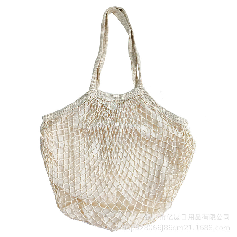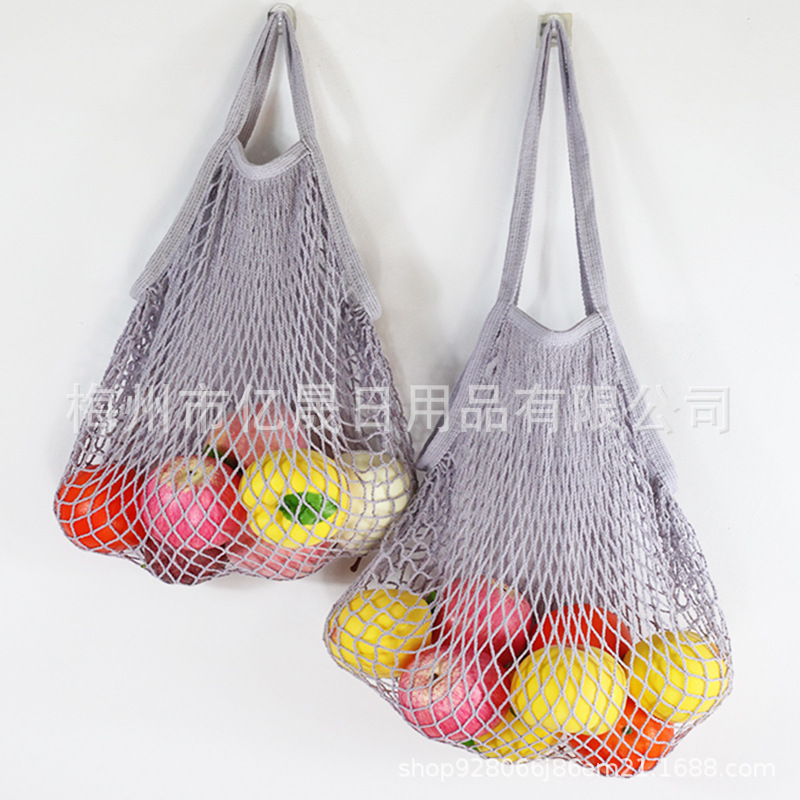 现货收纳折叠袋便携纯棉网袋手提式网兜水果购物网兜袋编织棉网兜