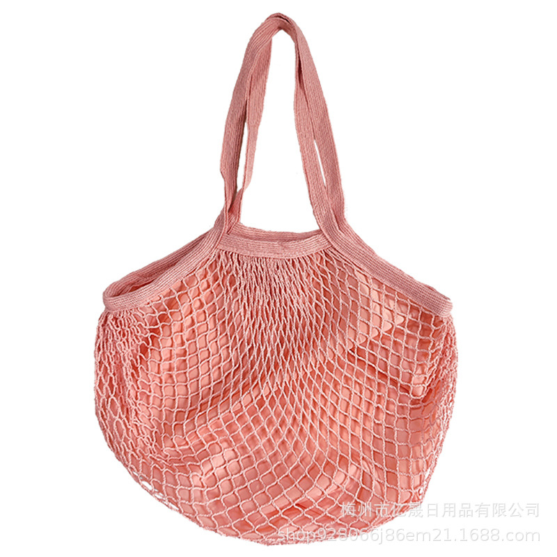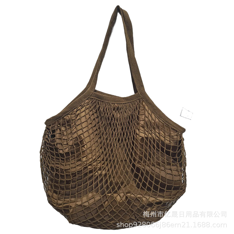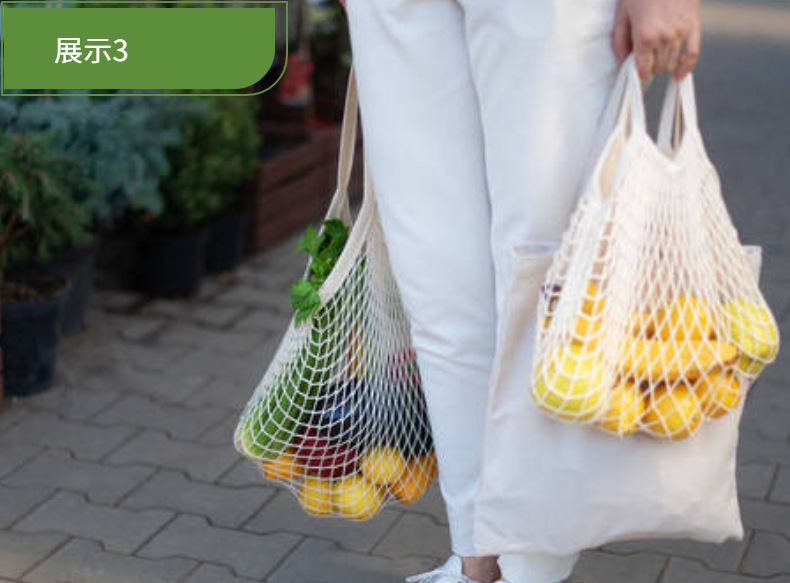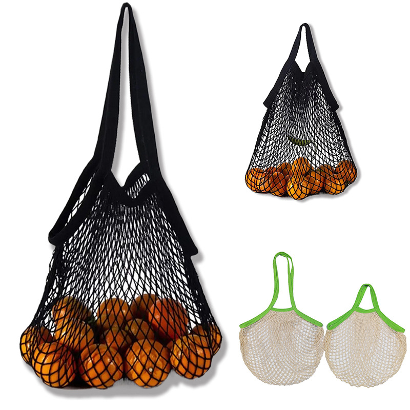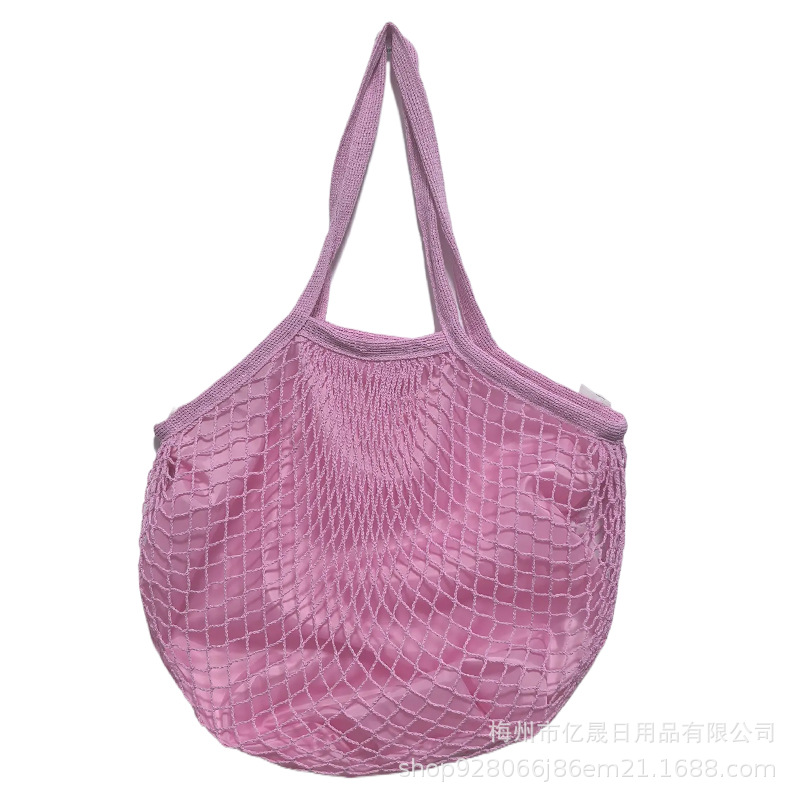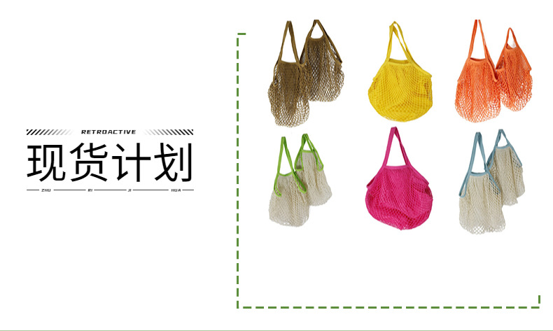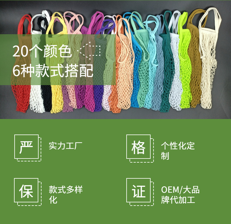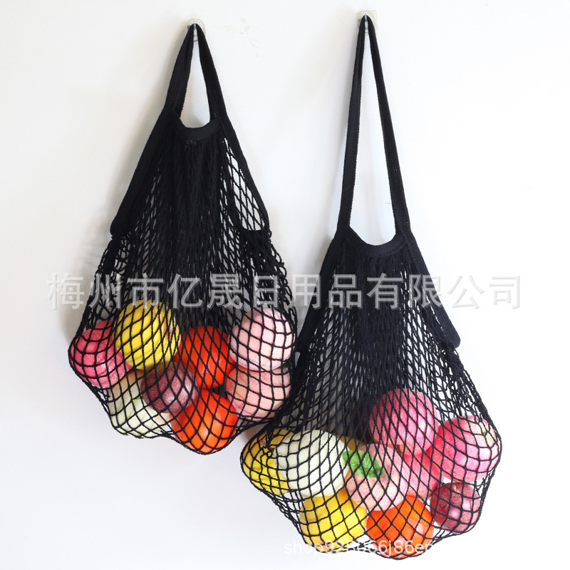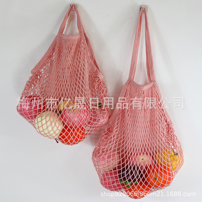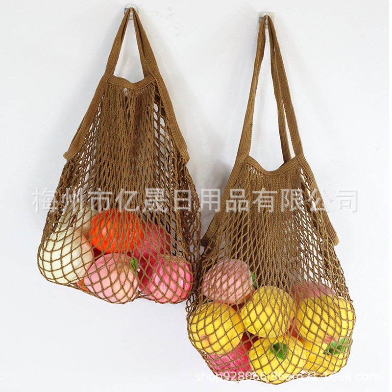 现货收纳折叠袋便携纯棉网袋手提式网兜水果购物网兜袋编织棉网兜