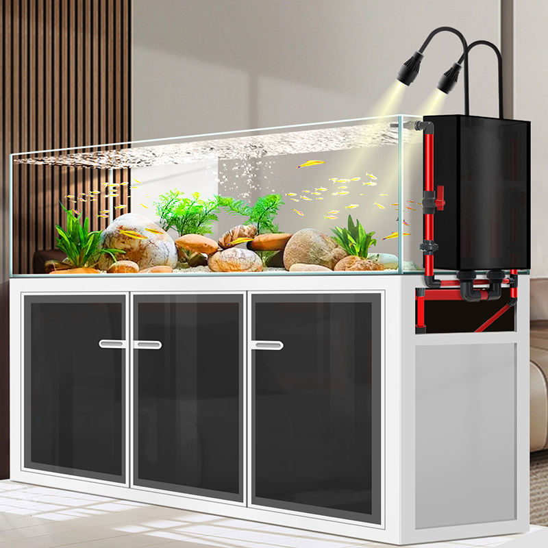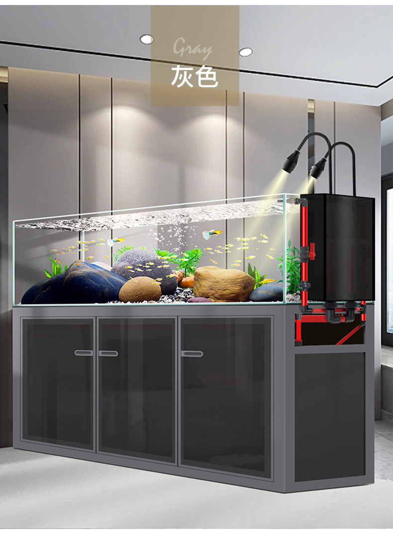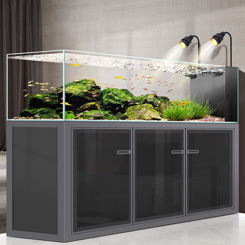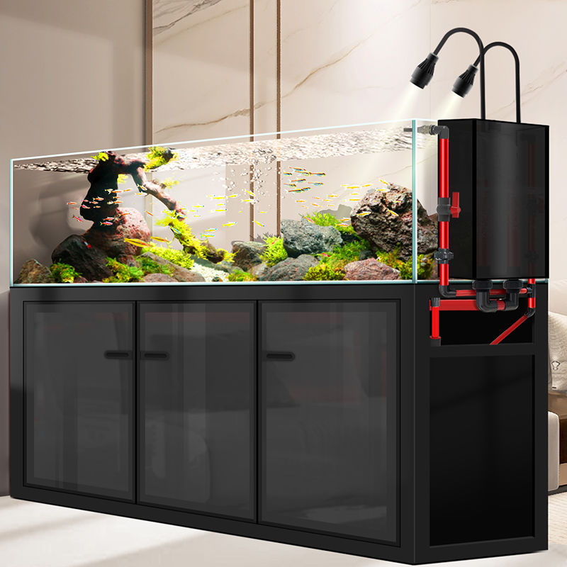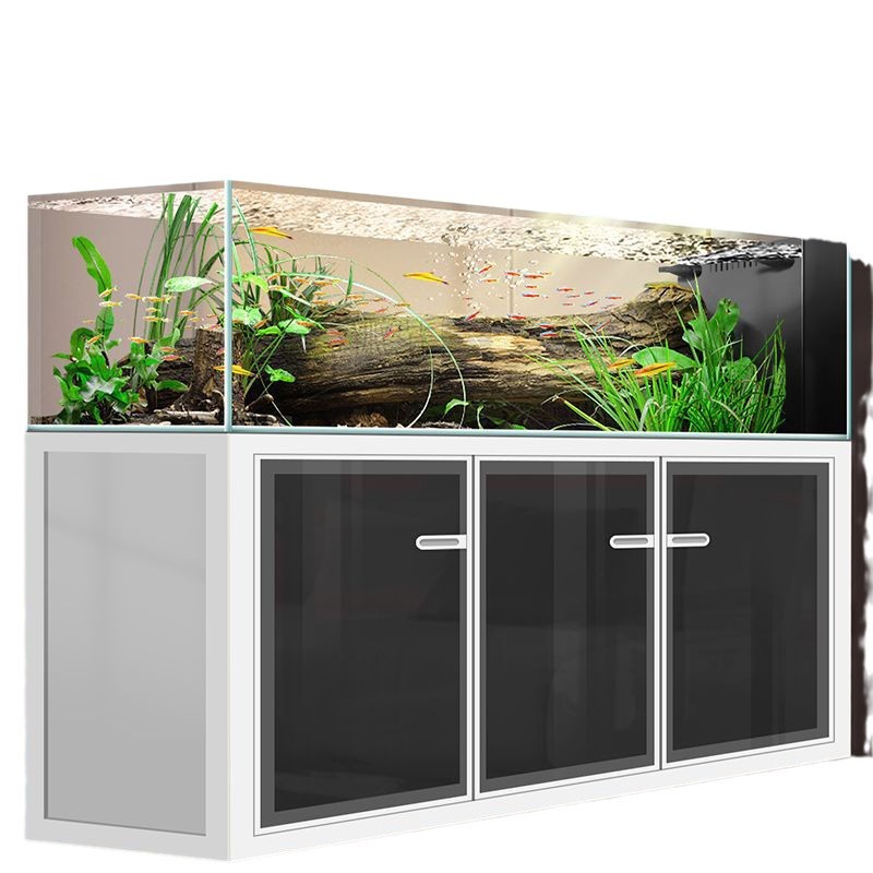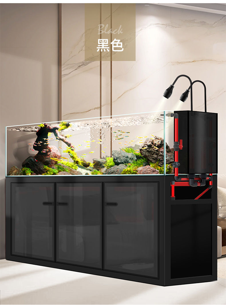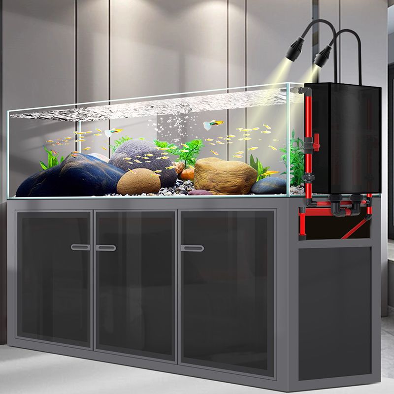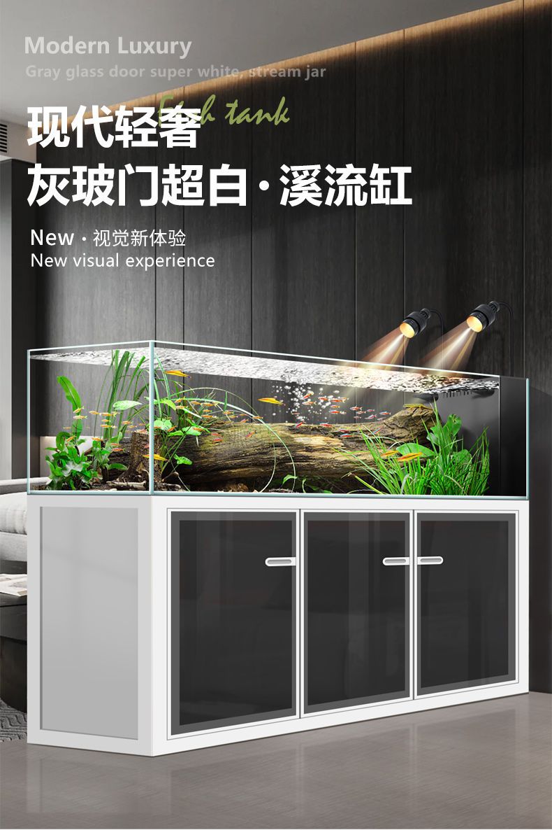 溪流缸造景工业生态鱼缸家用免换水超白玻璃底滤客厅中大型水族箱