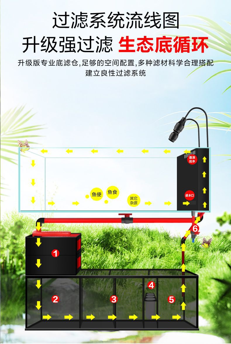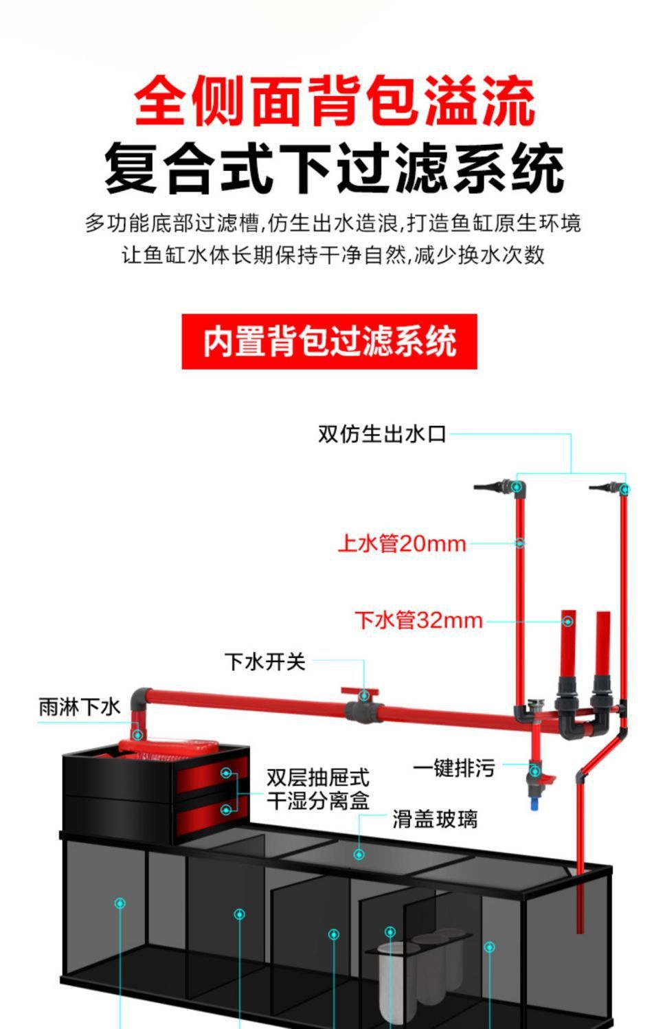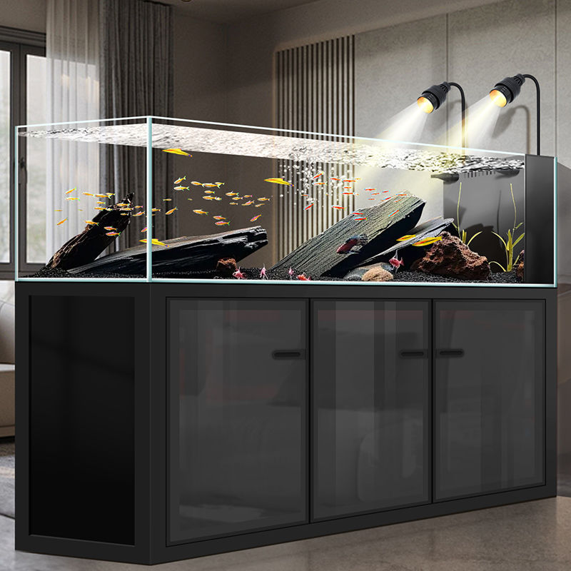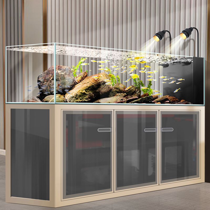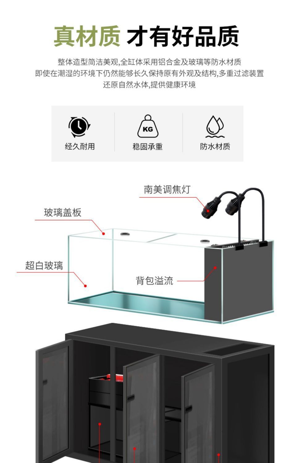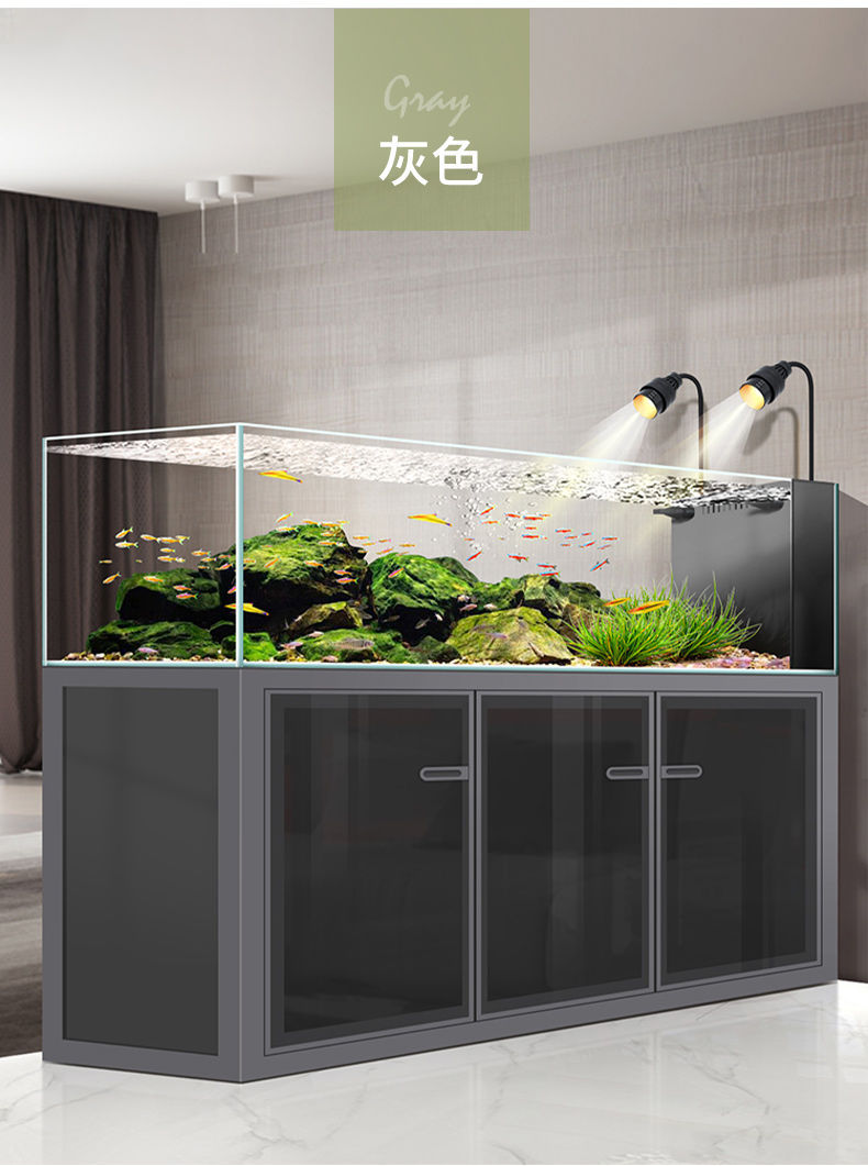 溪流缸造景工业生态鱼缸家用免换水超白玻璃底滤客厅中大型水族箱