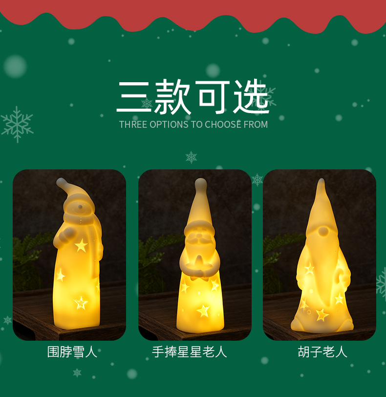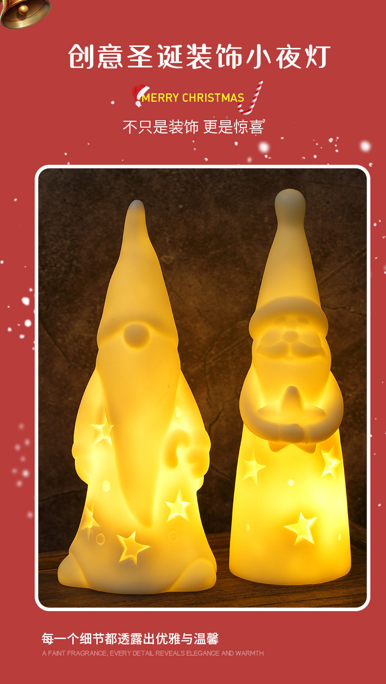跨境圣诞小夜灯创意卧室床头灯氛围灯LED蜡烛灯夜市摆地摊夜灯批