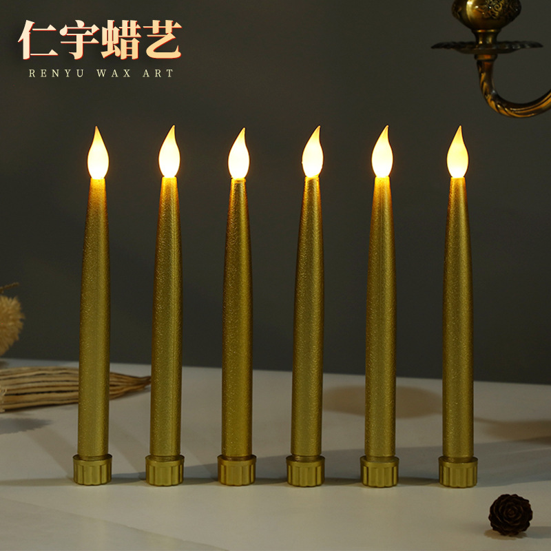 万圣节跨境led金色长杆电子蜡烛 长条圆柱形蜡烛灯万圣节圣诞蜡烛