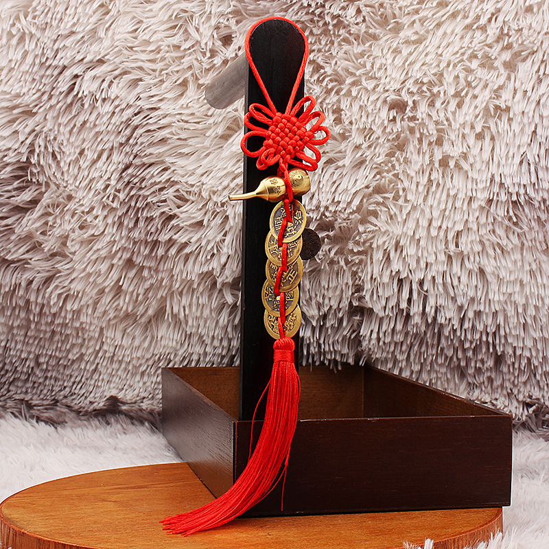 黄铜葫芦中国结五帝钱葫芦挂饰手工编织流苏家居车载挂件批发
