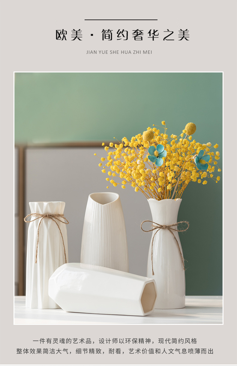 现代简约白色北欧陶瓷花瓶水养创意家居客厅餐桌干花插花装饰摆件