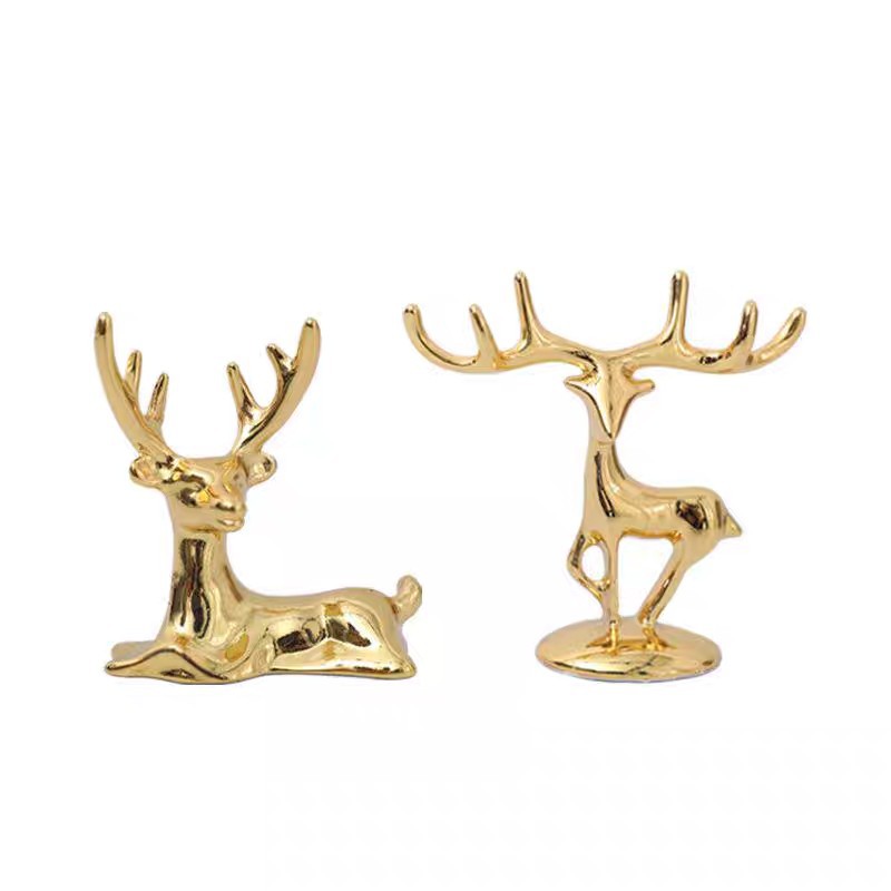 北欧轻奢时尚饰品客厅装饰创意金色小鹿摆件家居摆件首饰架