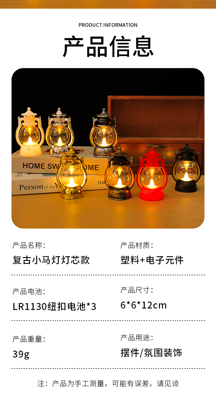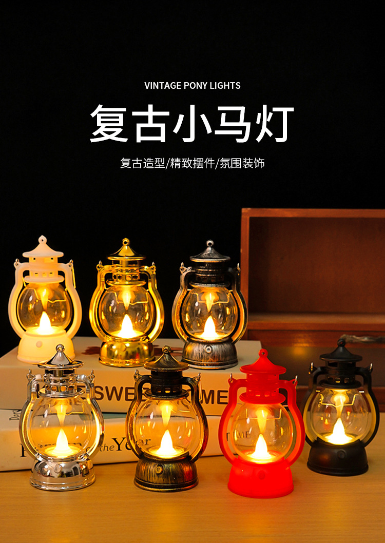跨境复古小马灯创意手提小夜灯LED电子蜡烛灯桌面装饰摆件小礼物