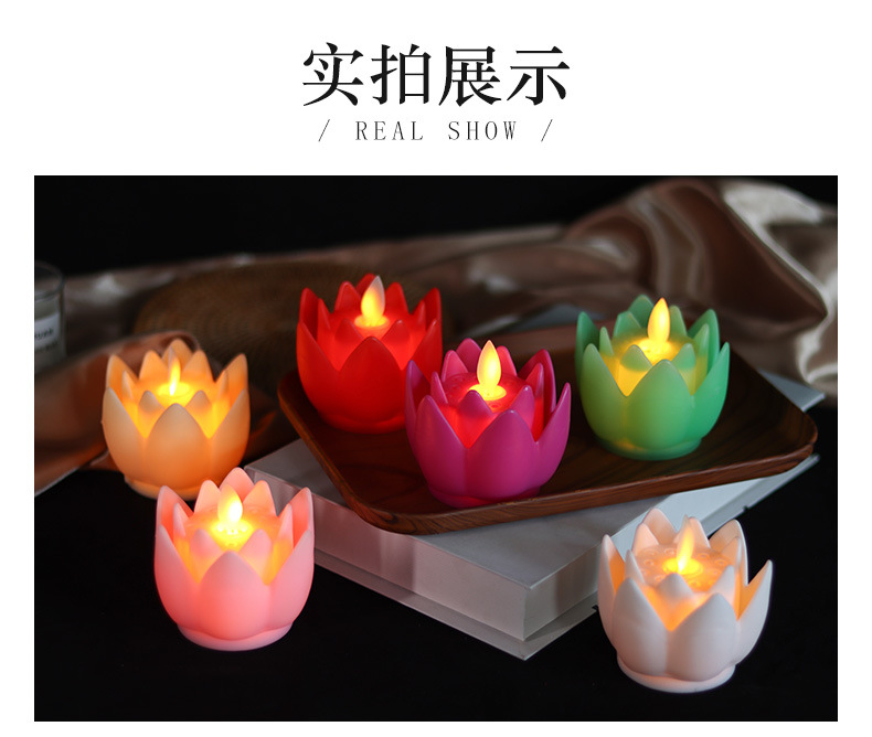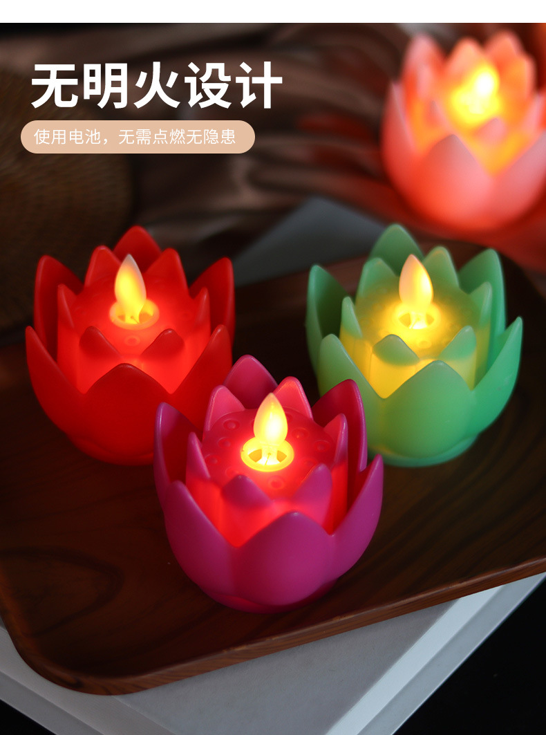 LED莲花灯家用佛供灯 仿真摇摆火焰电子蜡烛灯长明灯佛具用品烛台