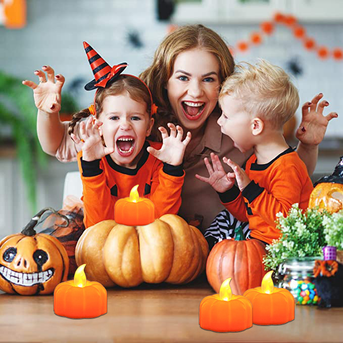 跨境万圣节南瓜蜡烛灯 鬼节氛围装饰电子蜡烛灯创意造型led蜡烛灯