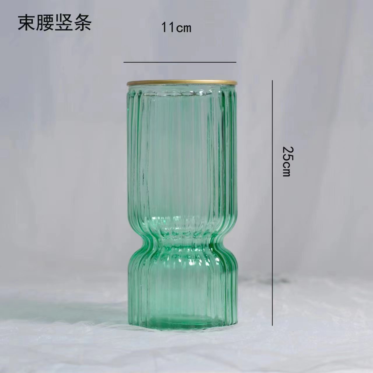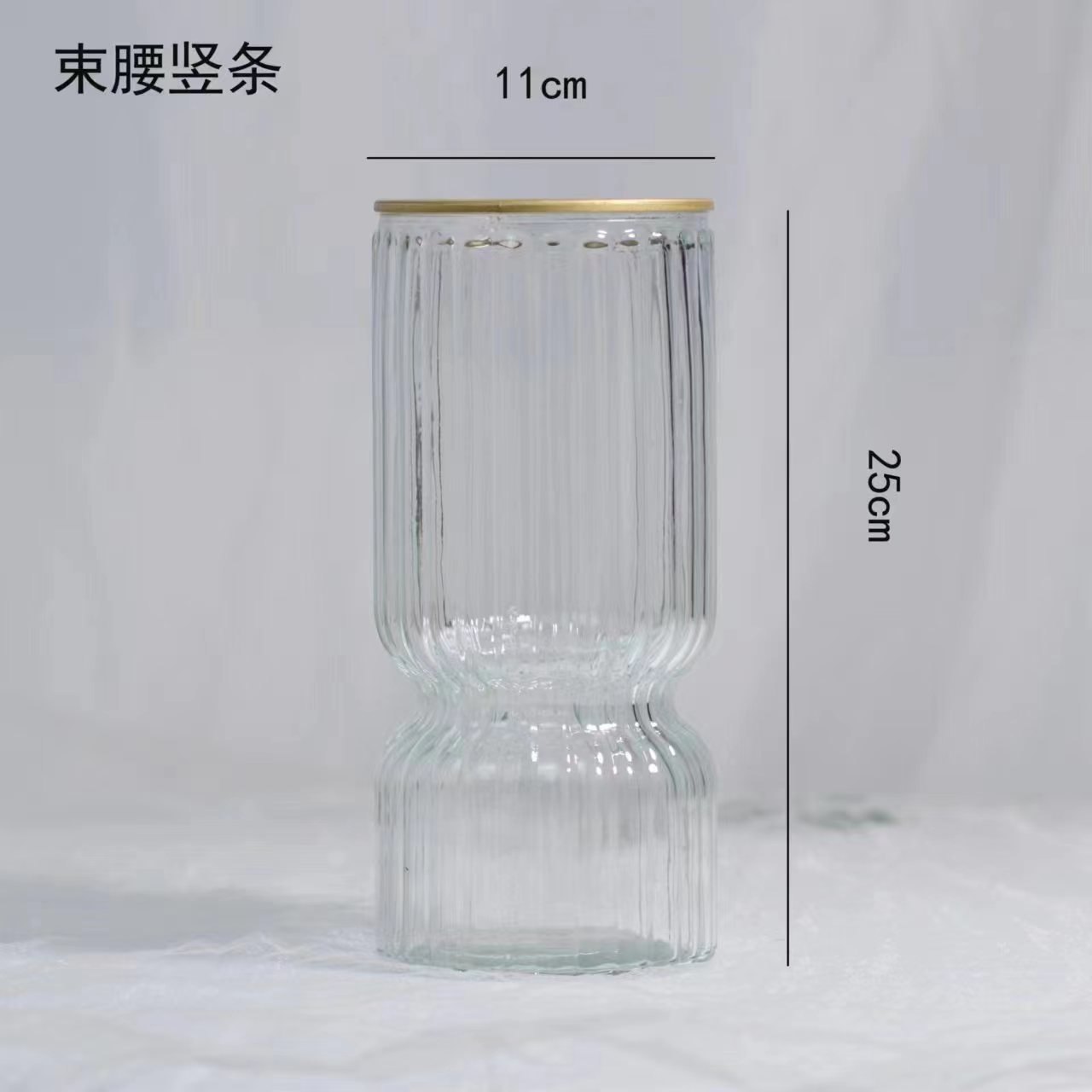 花瓶高颜值束腰竖条家居办公室桌摆件水培鲜花ins风玻璃花瓶批发