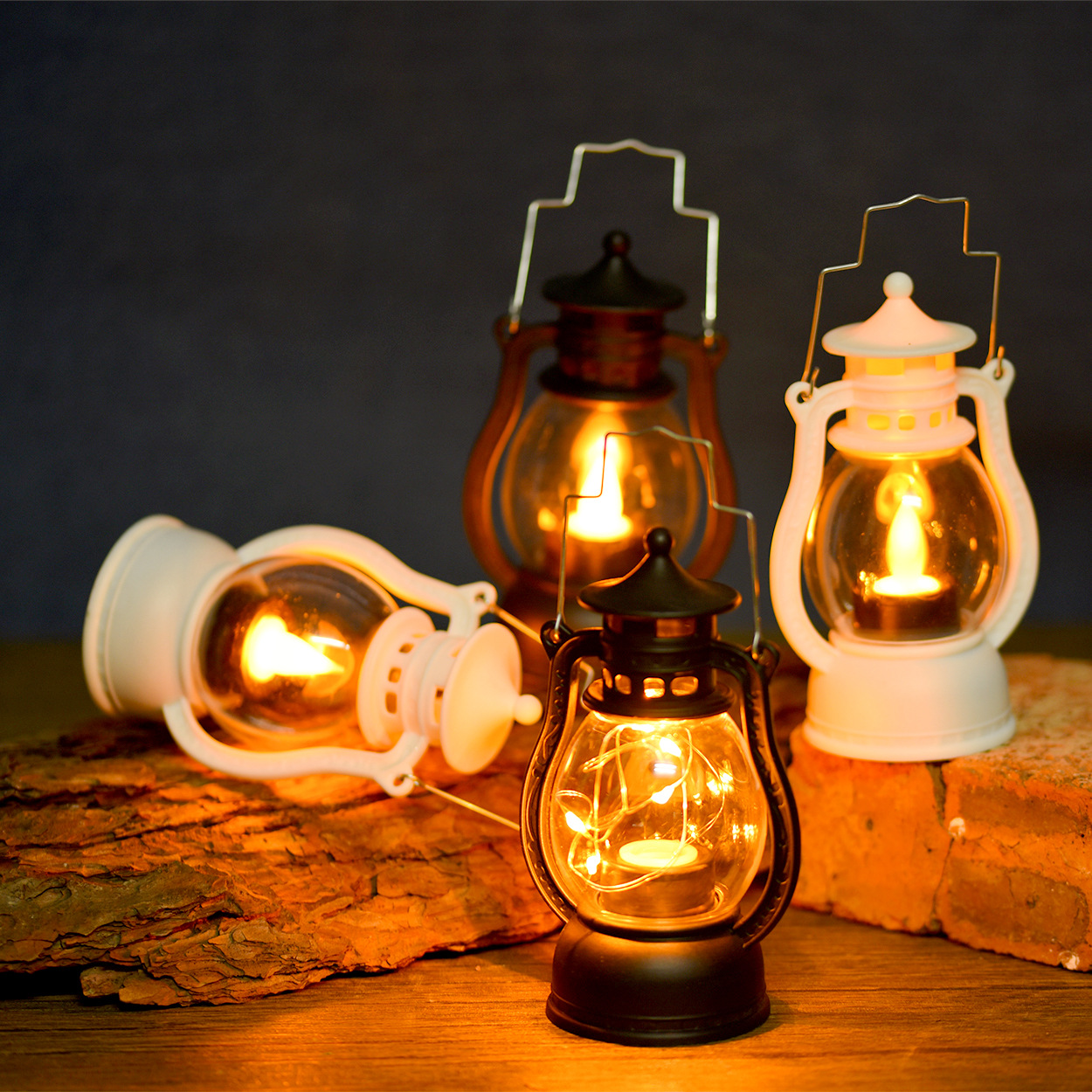 复古小马灯电子蜡烛灯跨境批发圣诞节装饰手提小油灯酒吧氛围灯