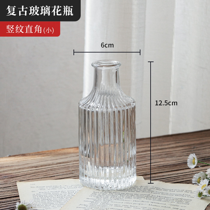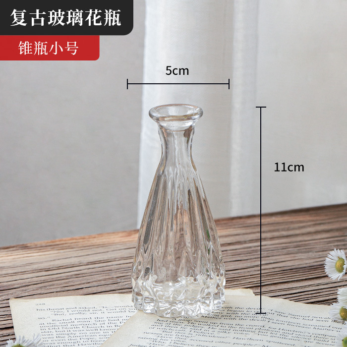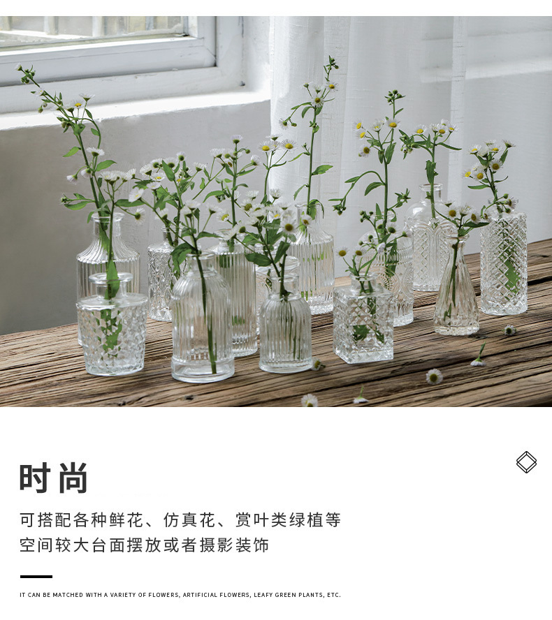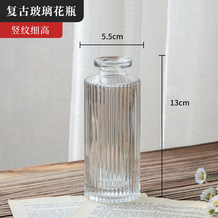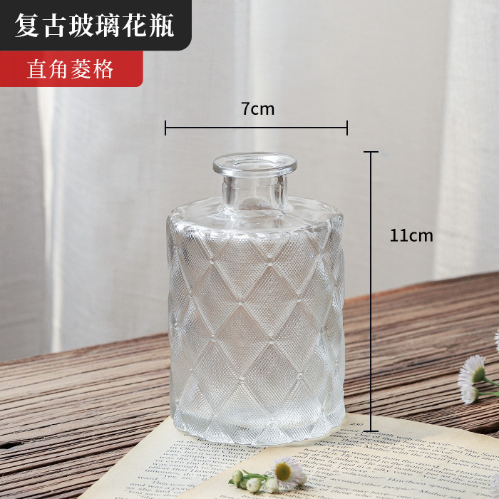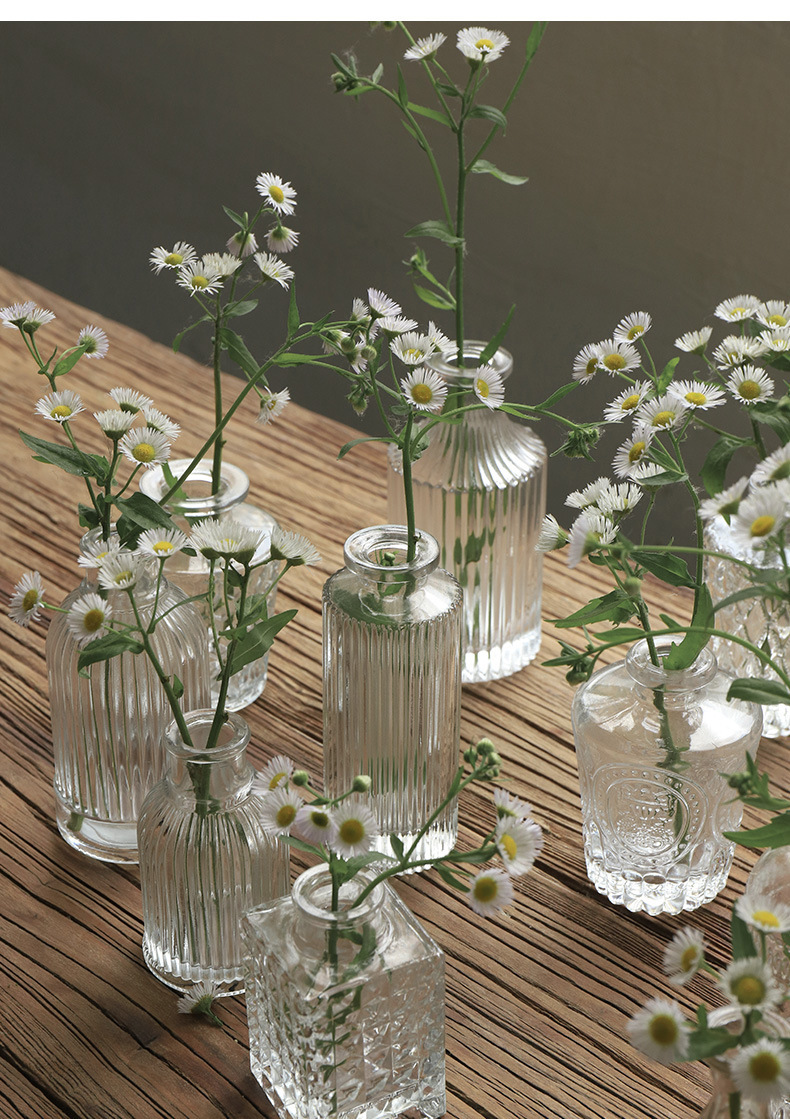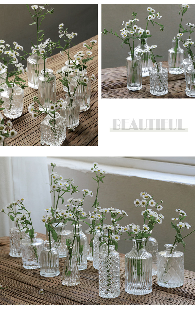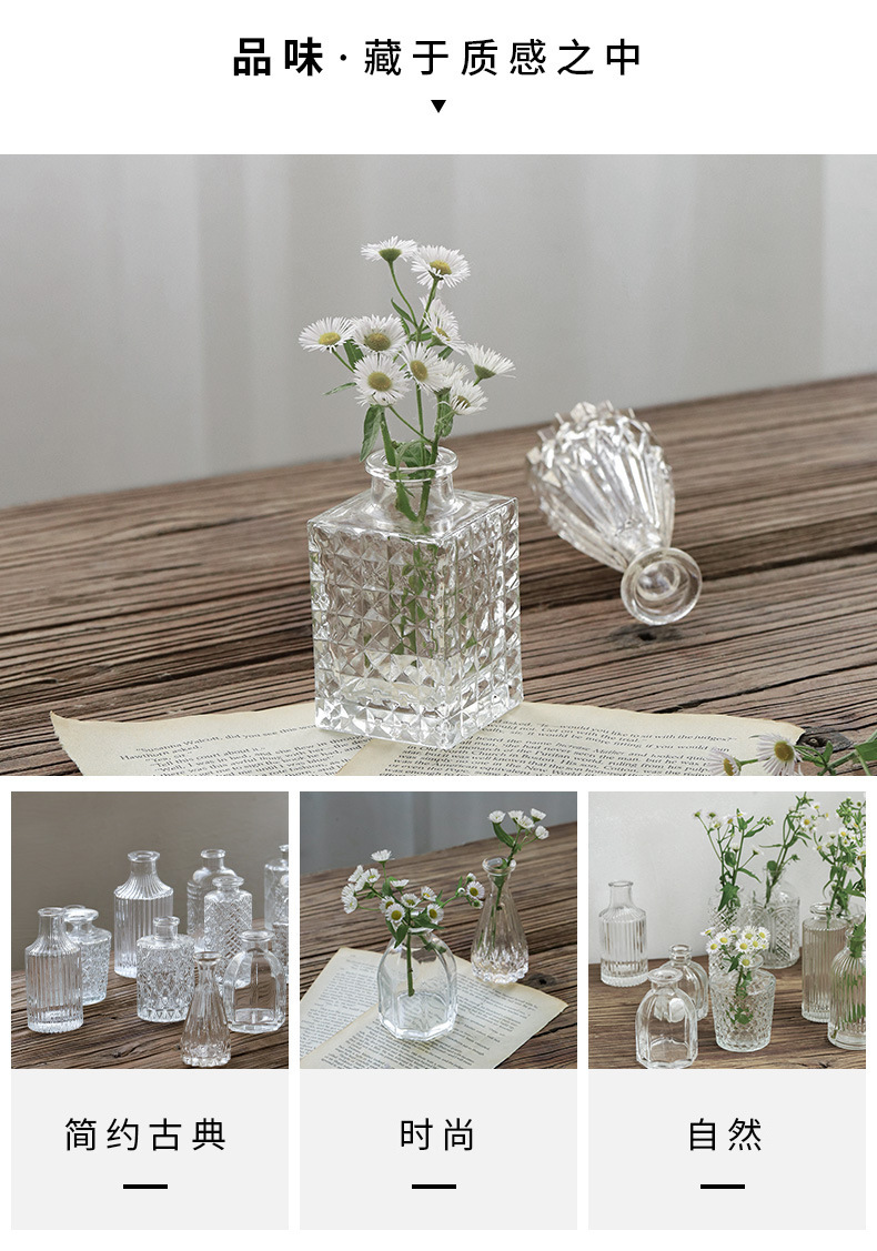 家居卧室装饰摆件插花器复古浮雕玻璃花器ins风透明玻璃花瓶