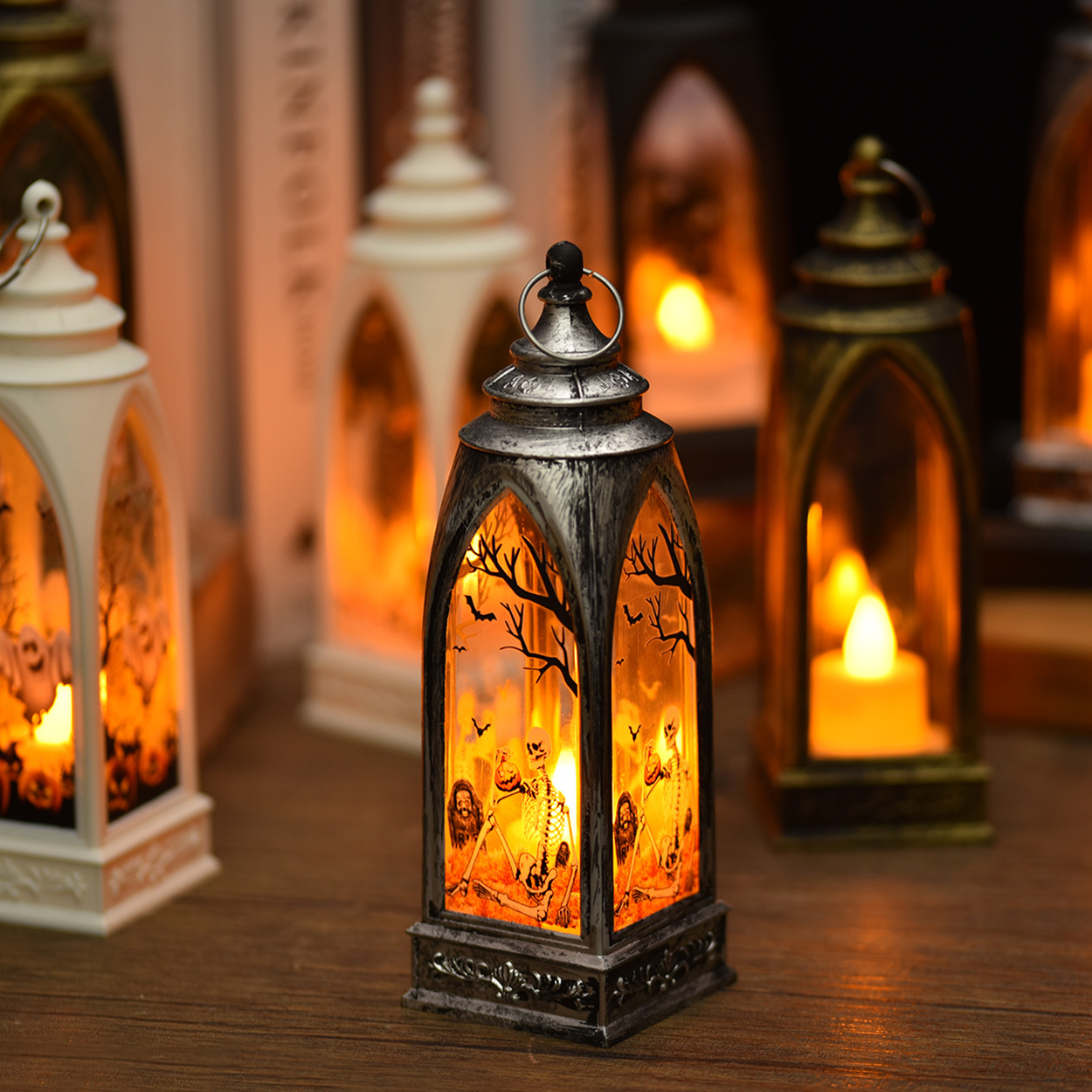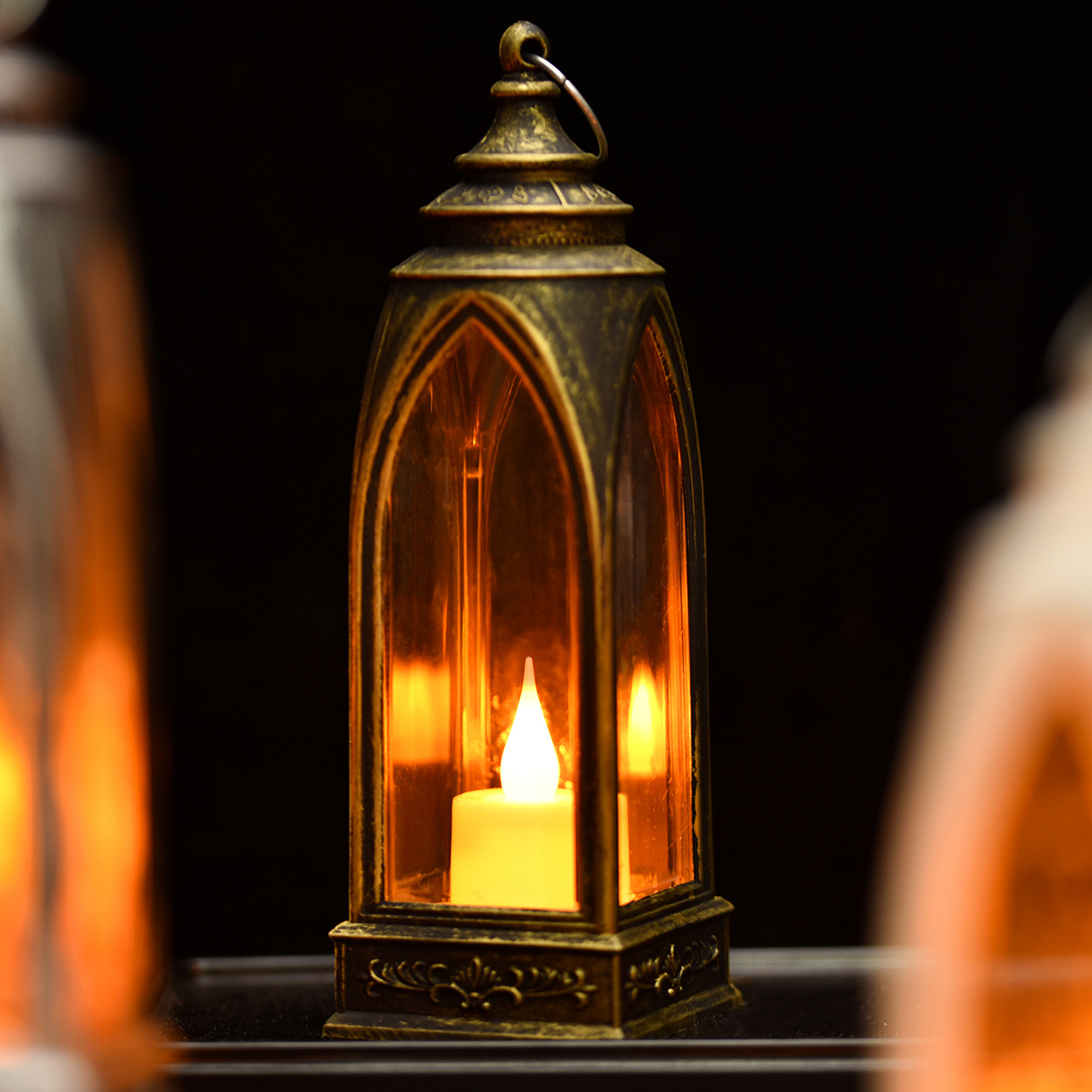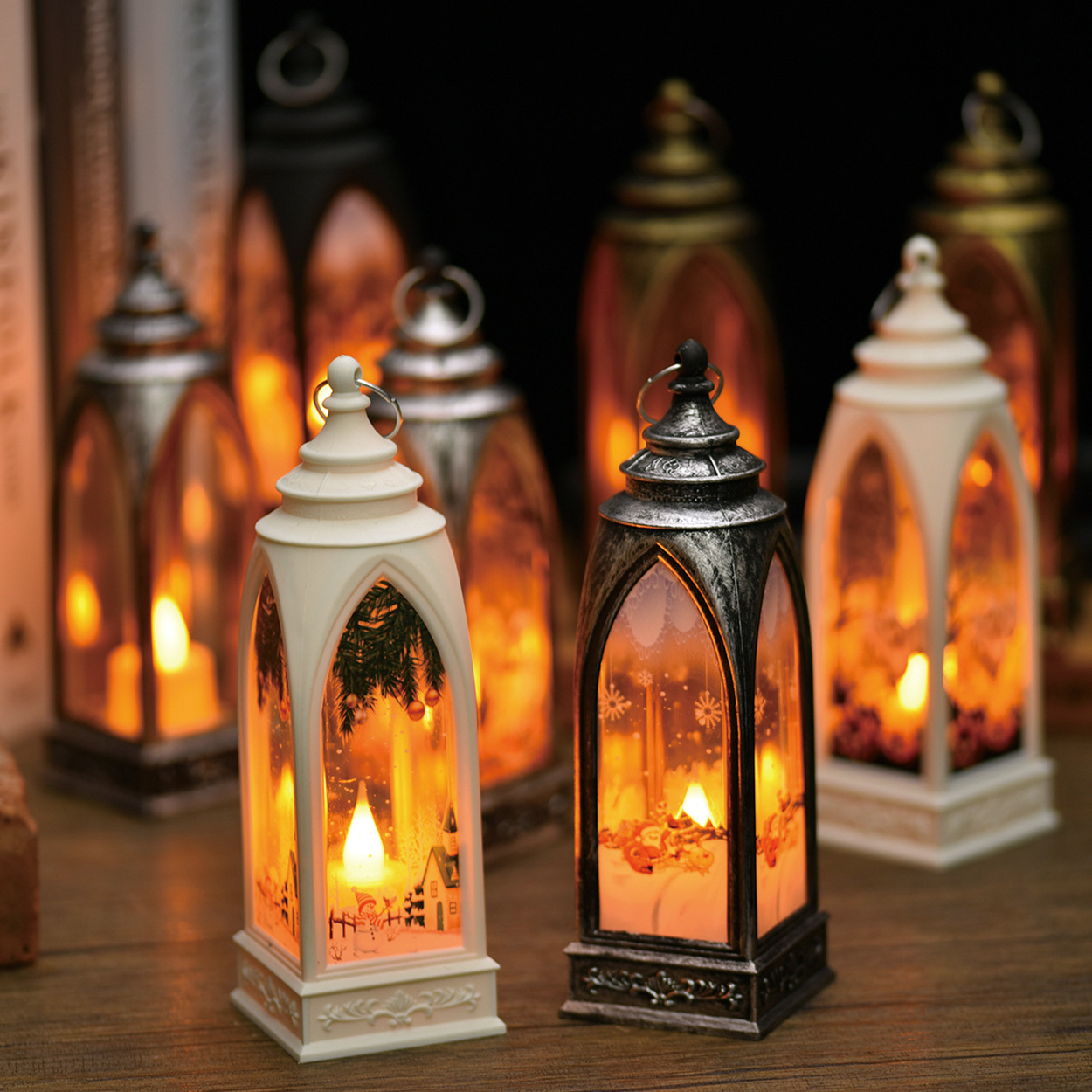 复古ianter风灯圣诞装饰蜡烛灯万圣节LED电子挂件派对聚会氛围灯