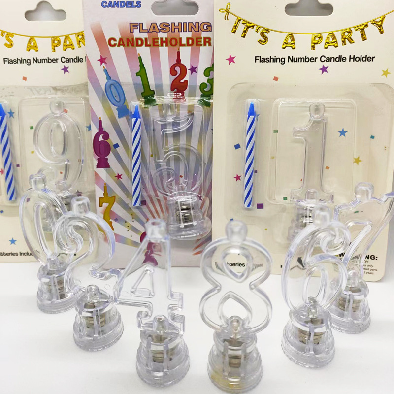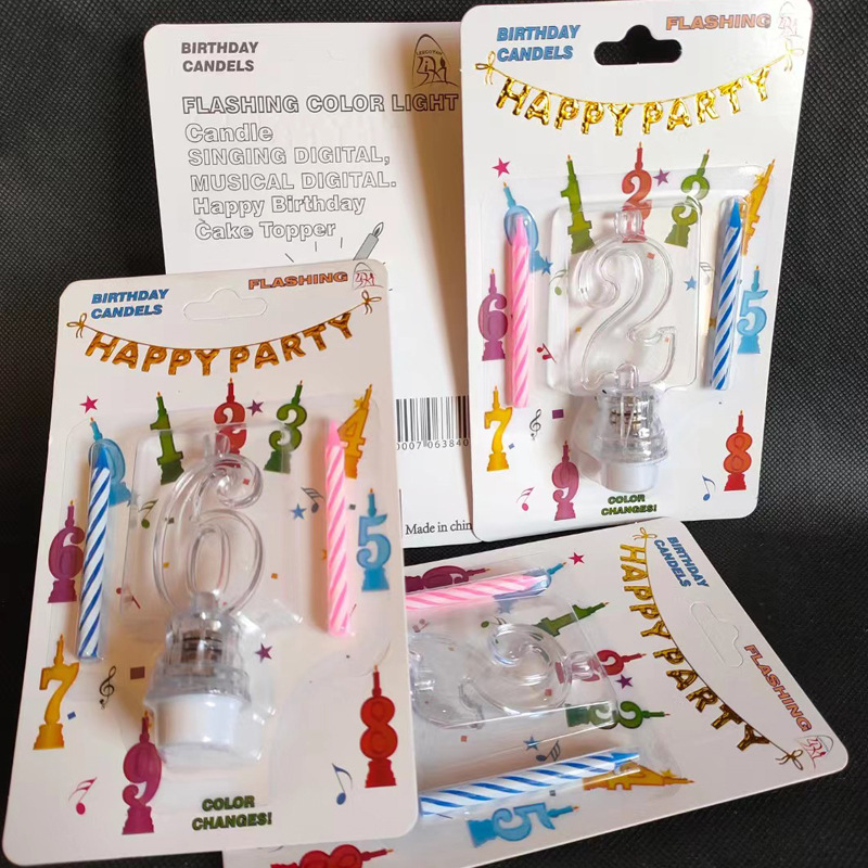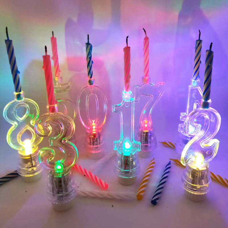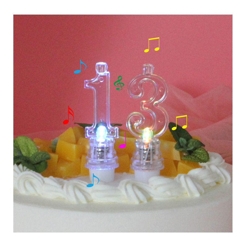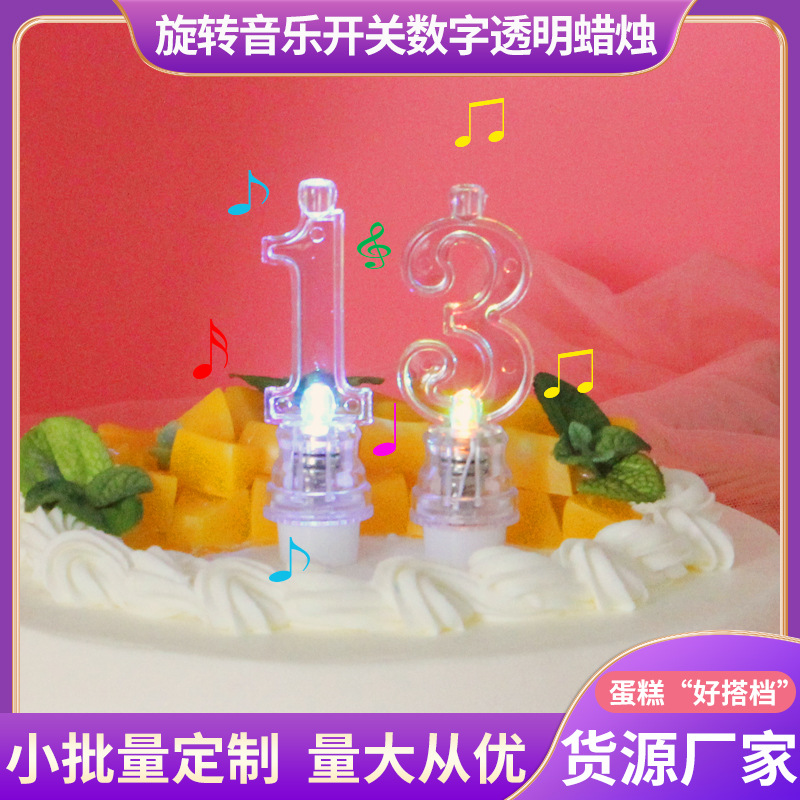 旋转音乐发光数字生日蛋糕派对音乐发光透明数字蜡烛数字0-9