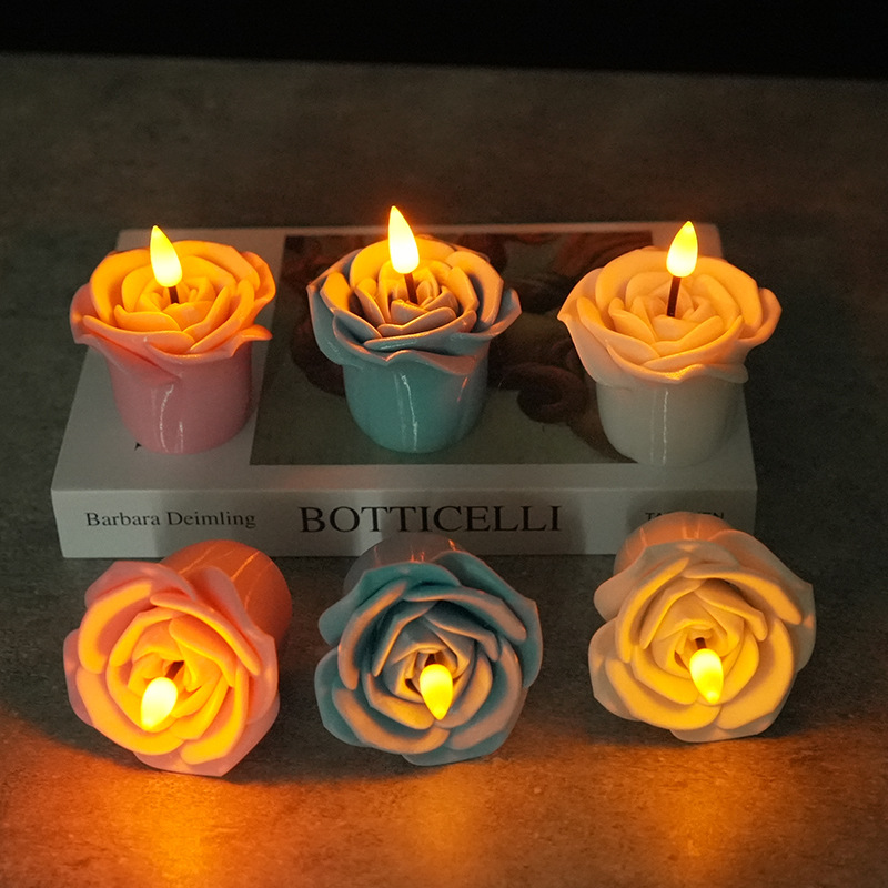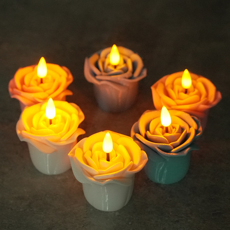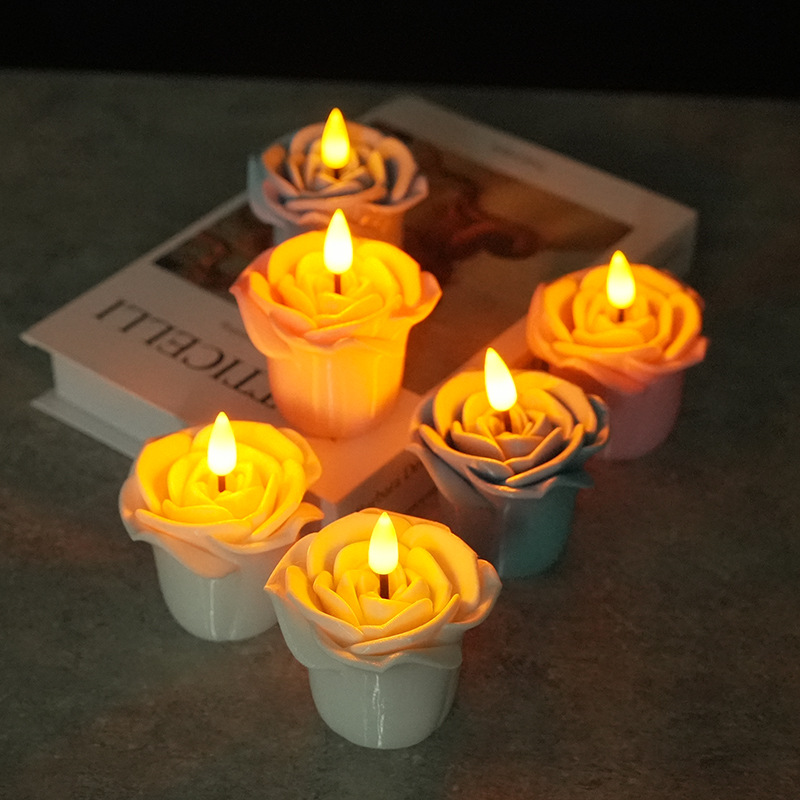 跨境led电子蜡烛灯玫瑰花浪漫生日求婚创意装饰烛光氛围小夜灯