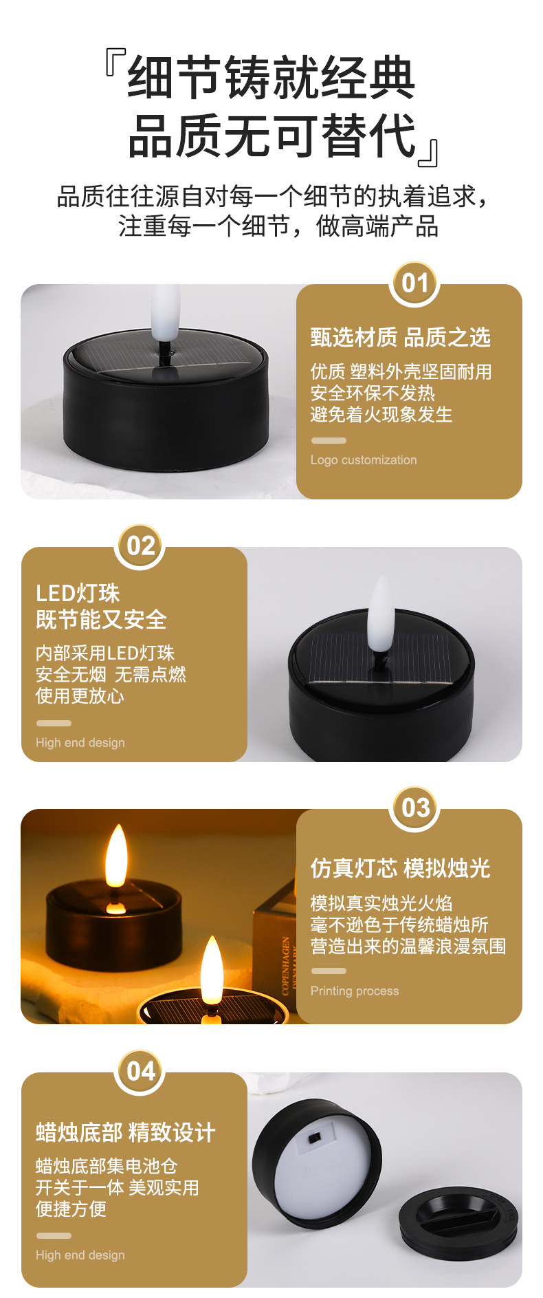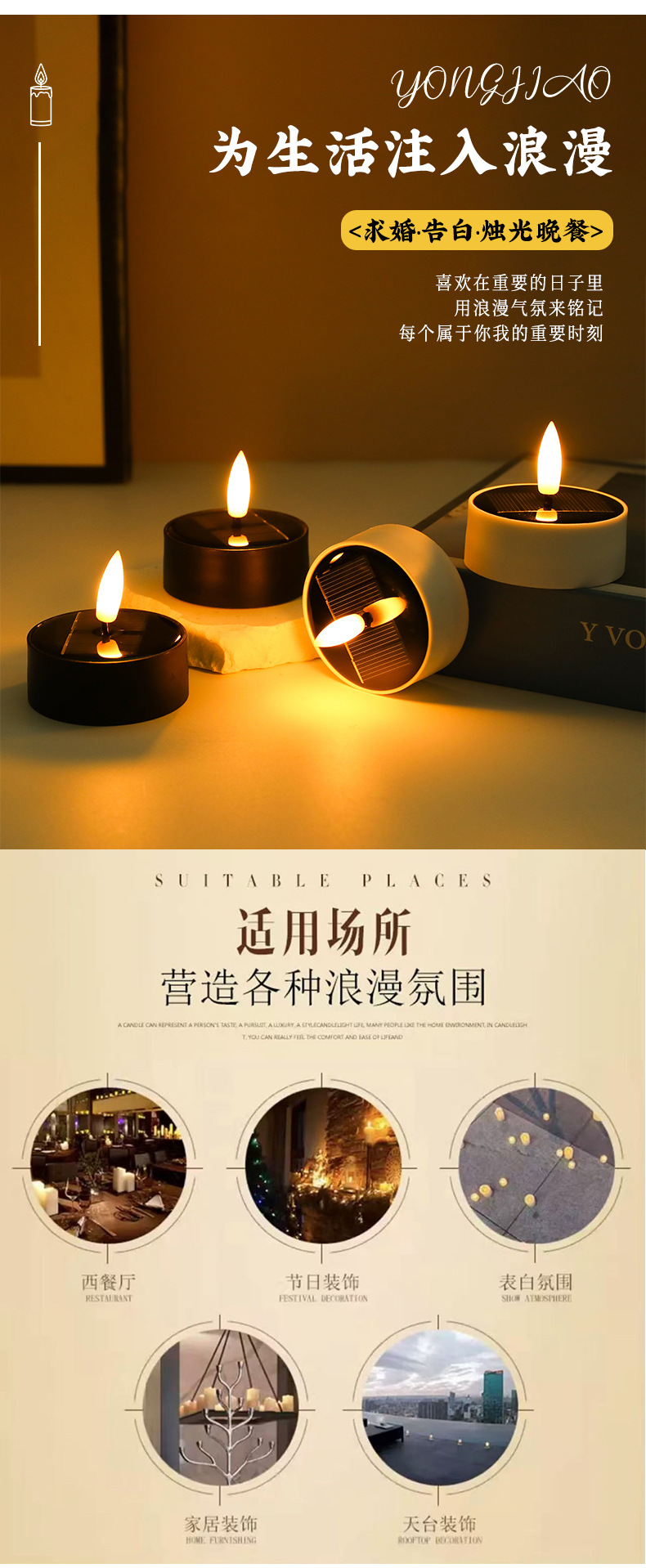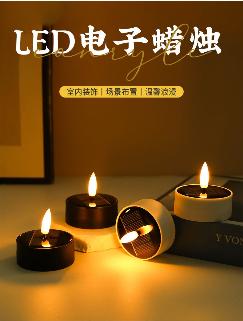 跨境太阳能电子蜡烛 家用户外求婚告白氛围感仿真led蜡烛灯小夜灯