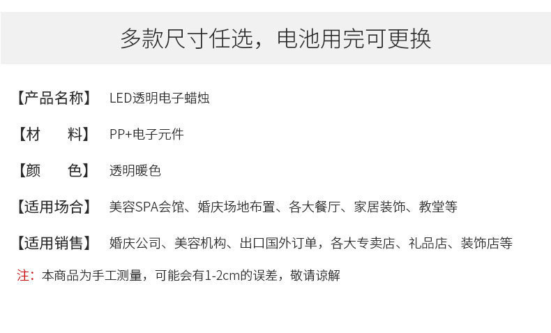 厂家直销LED电子蜡烛透明外壳茶蜡 无烟茶蜡 PVC流泪茶蜡 Tea蜡