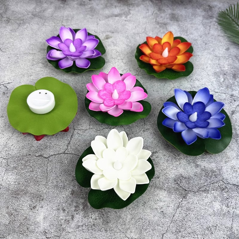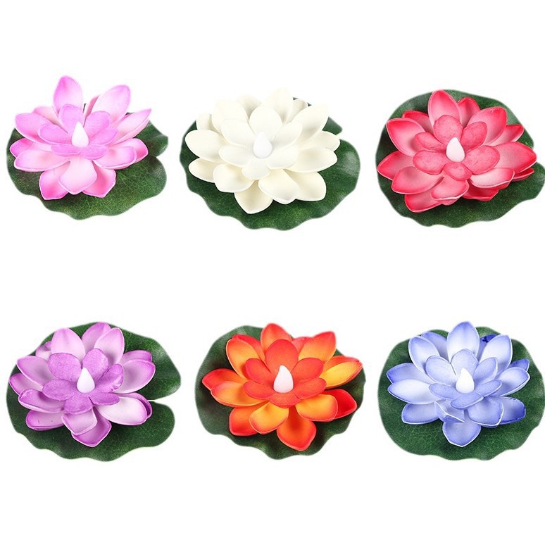 跨境led电子蜡烛仿真荷花浮水蜡烛 景观装饰浮水荷花河灯许愿莲花