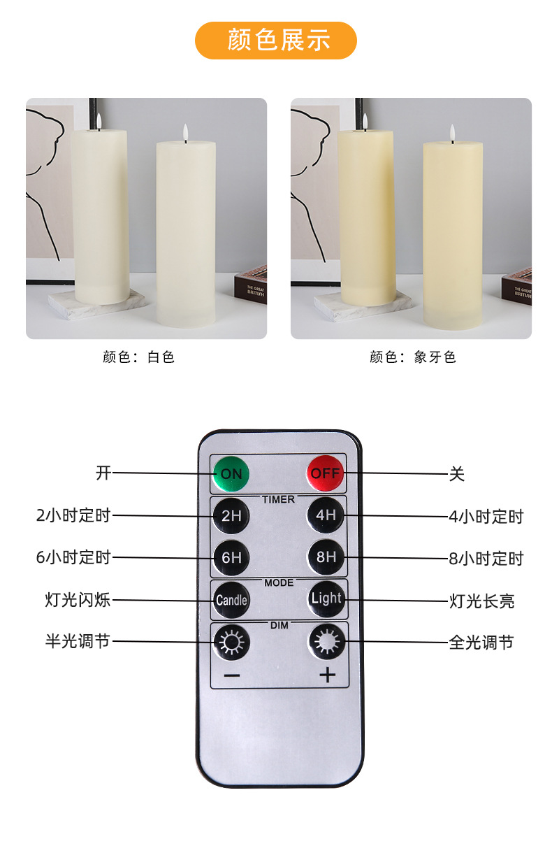 10键遥控蜡烛平口蜡烛灯黄光防水LED蜡烛灯氛围蜡烛电子蜡烛批发