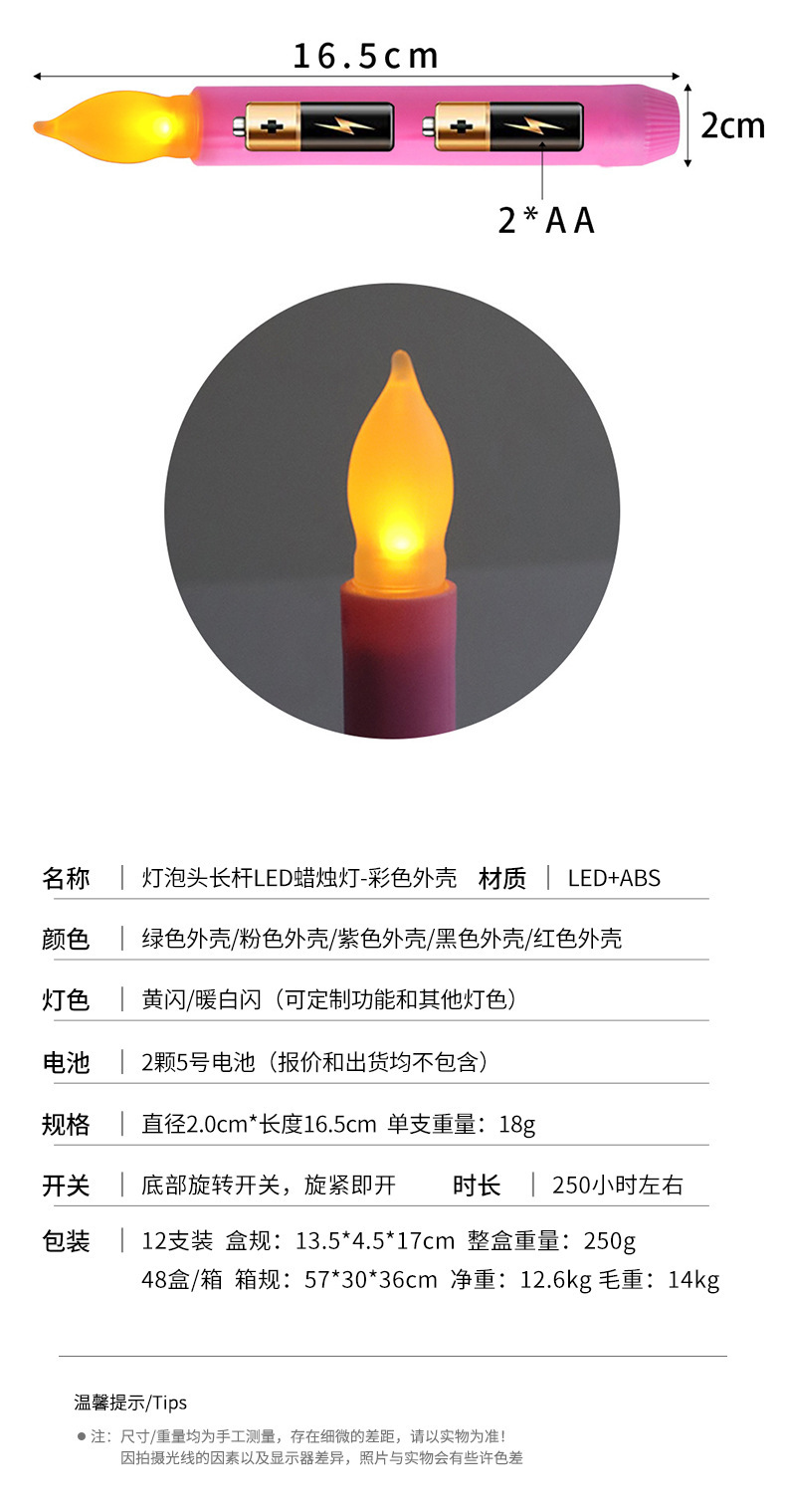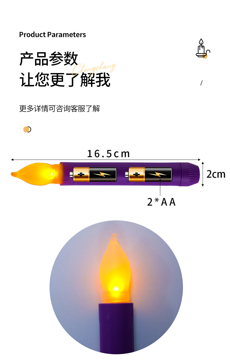 跨境爆款LED电子蜡烛灯仿真长条杆蜡万圣节道具氛围感装饰蜡烛灯