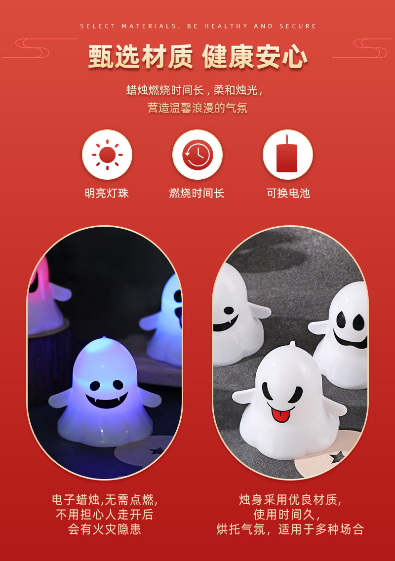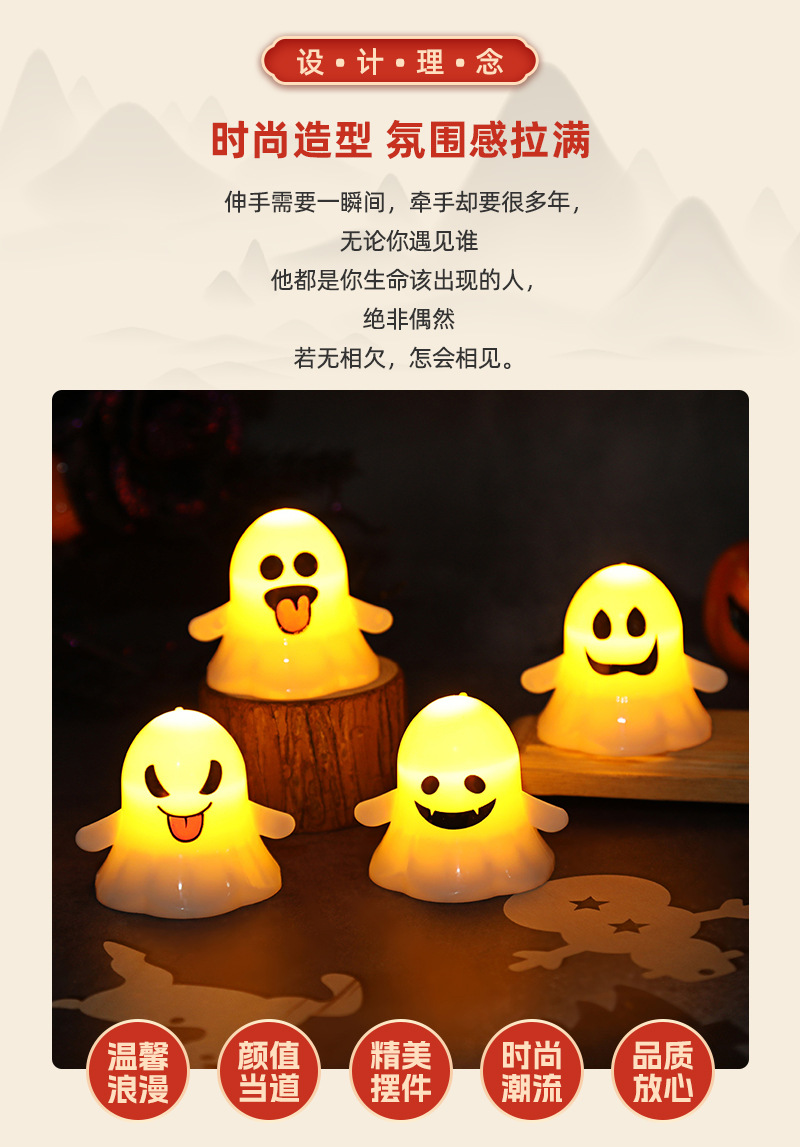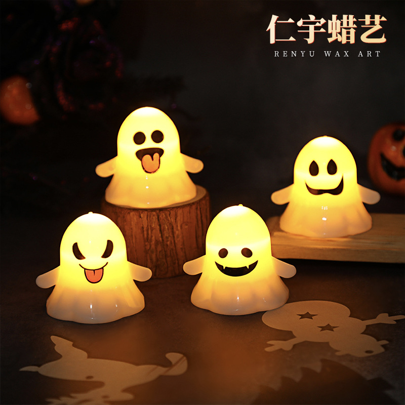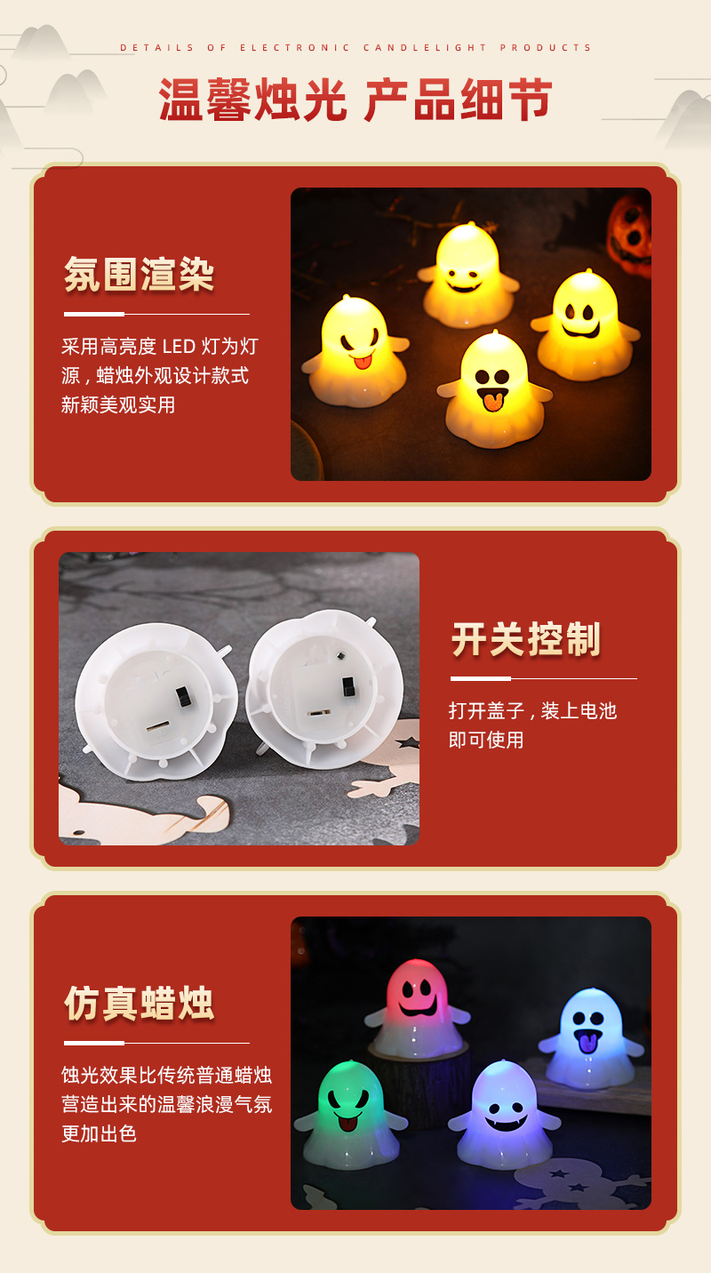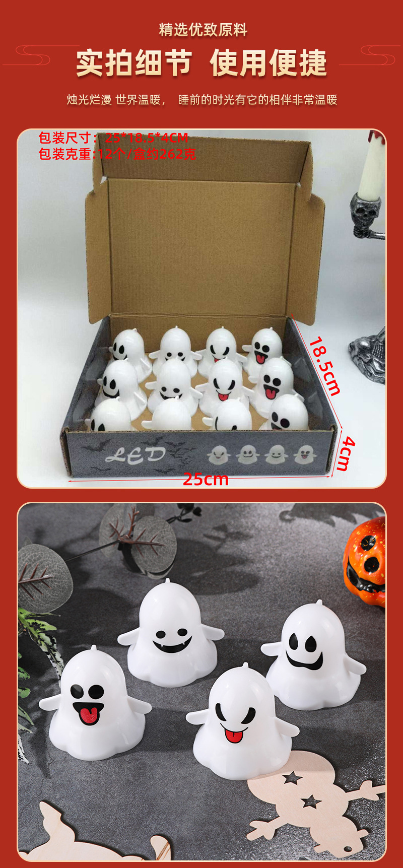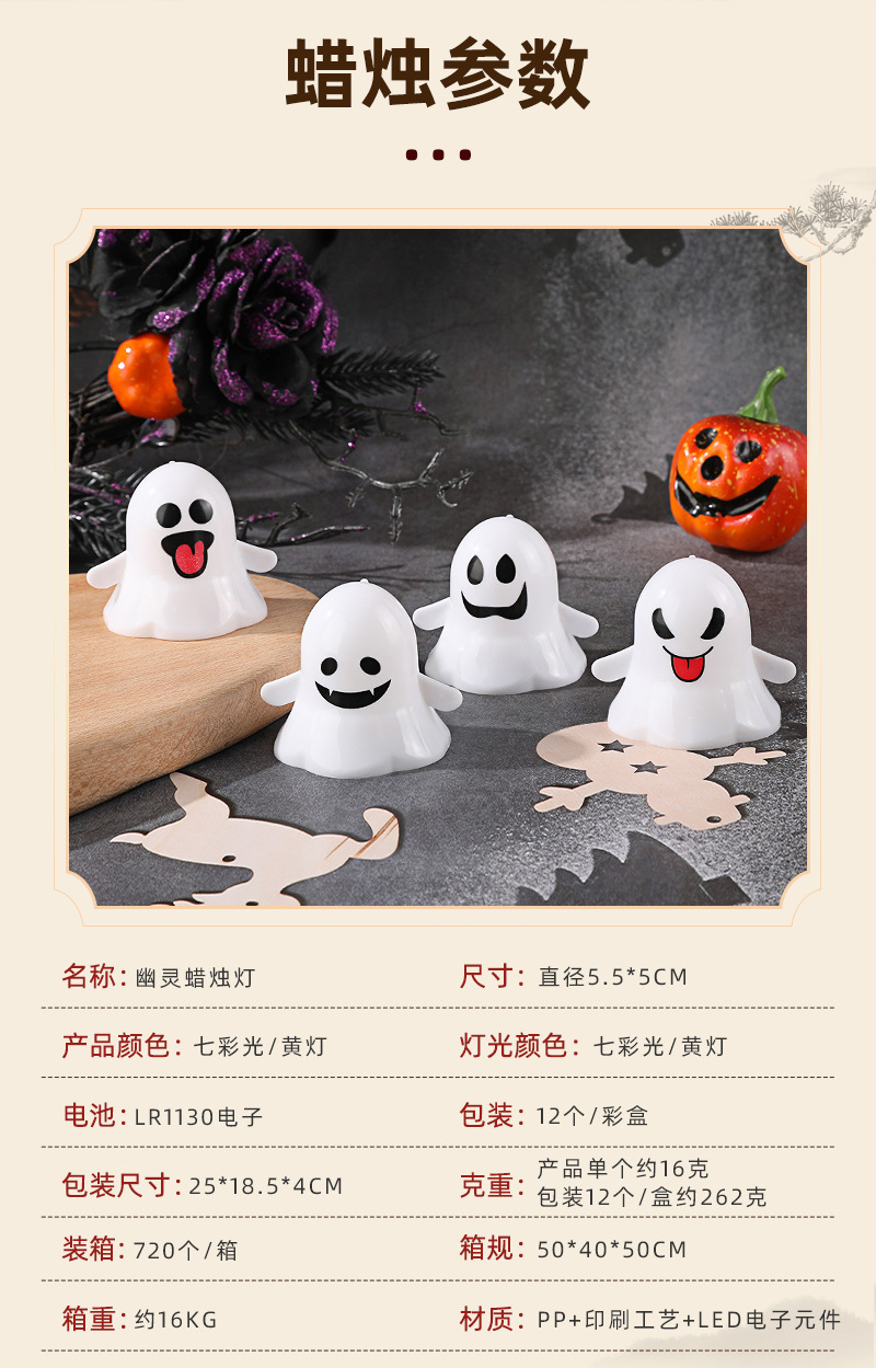 万圣节可爱幽灵蜡烛灯派对氛围装饰led电子蜡烛节日场景布置道具