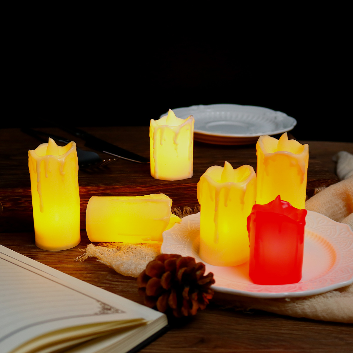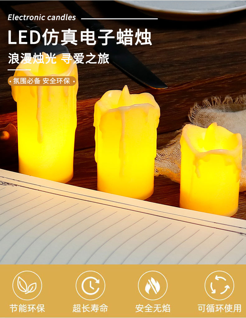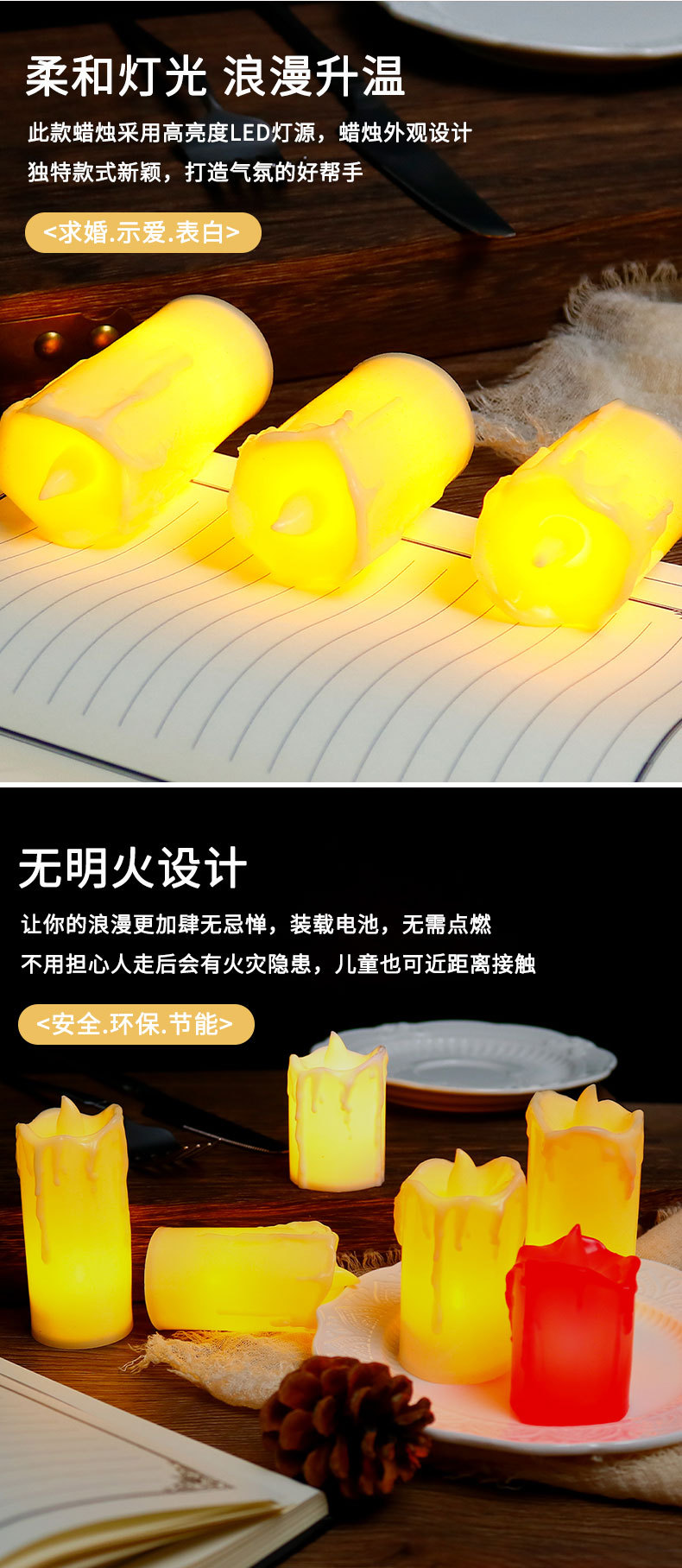 LED电子蜡烛灯餐厅装饰引路小夜灯仿真流泪波浪口茶蜡节日氛围灯