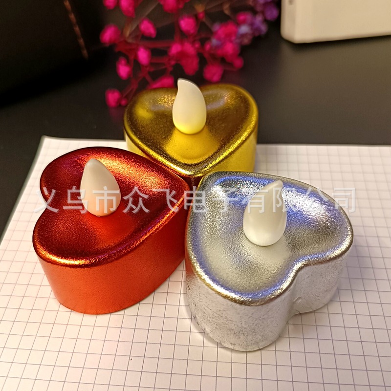 led电子小茶蜡电镀爱心蜡烛浪漫求婚布置用品 装饰创意仿真蜡烛灯