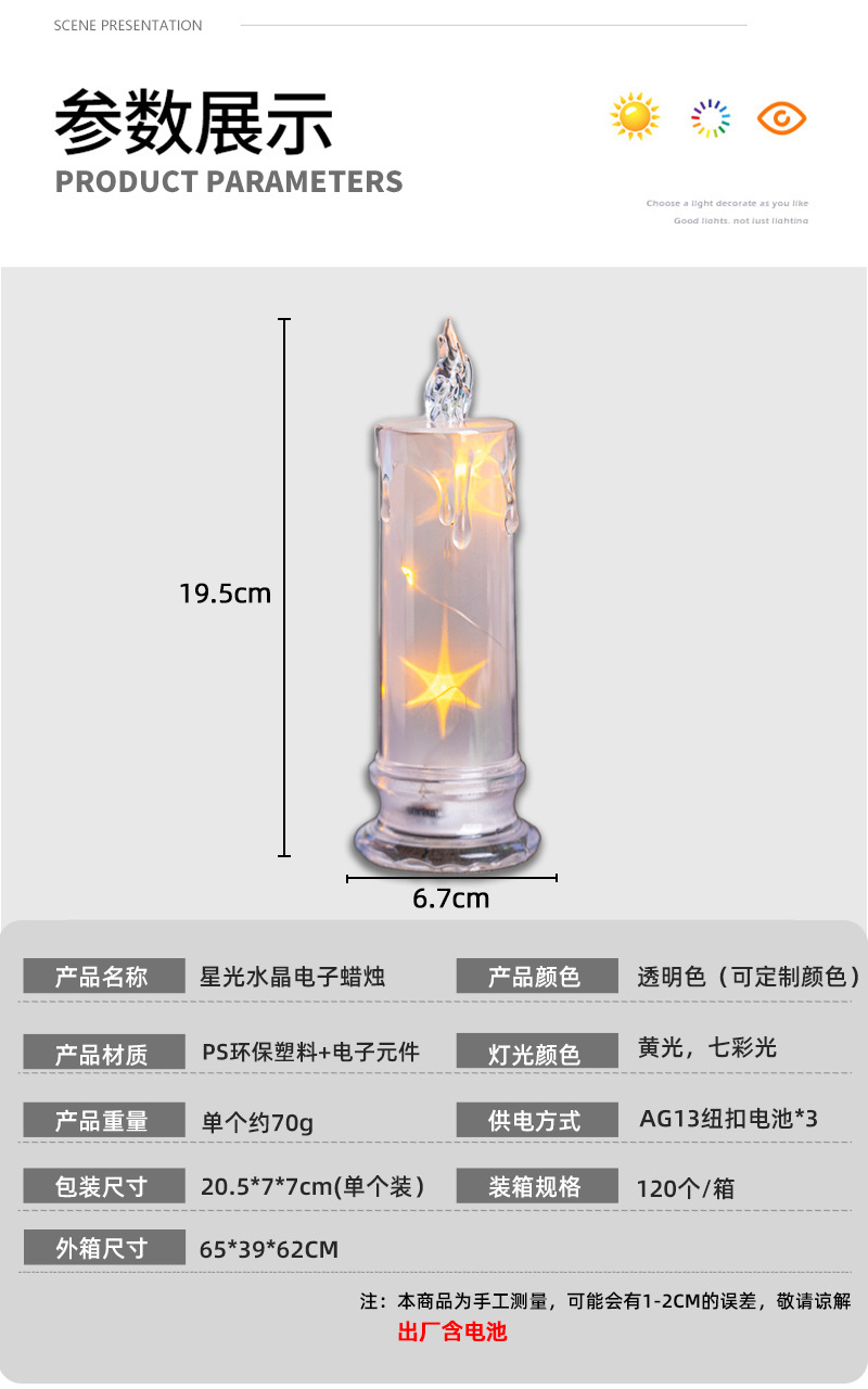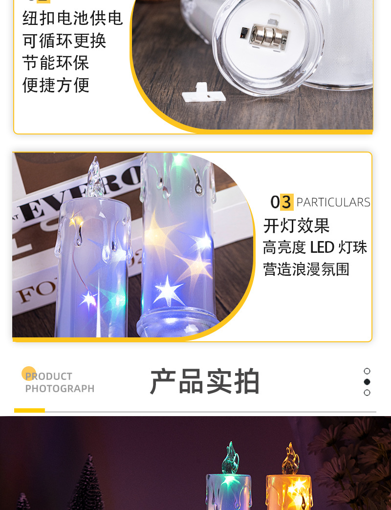 星光led仿真电子蜡烛灯 ins卧室床头浪漫装饰灯小夜灯水晶氛围灯