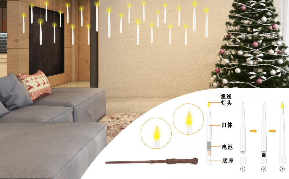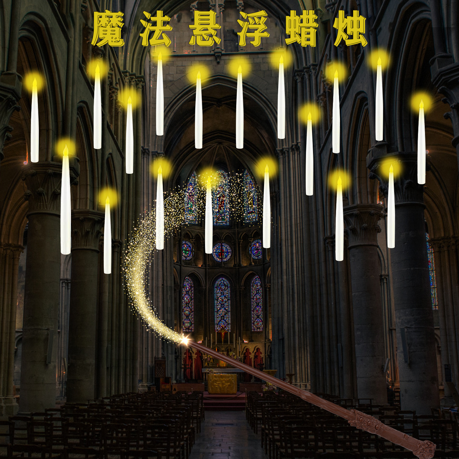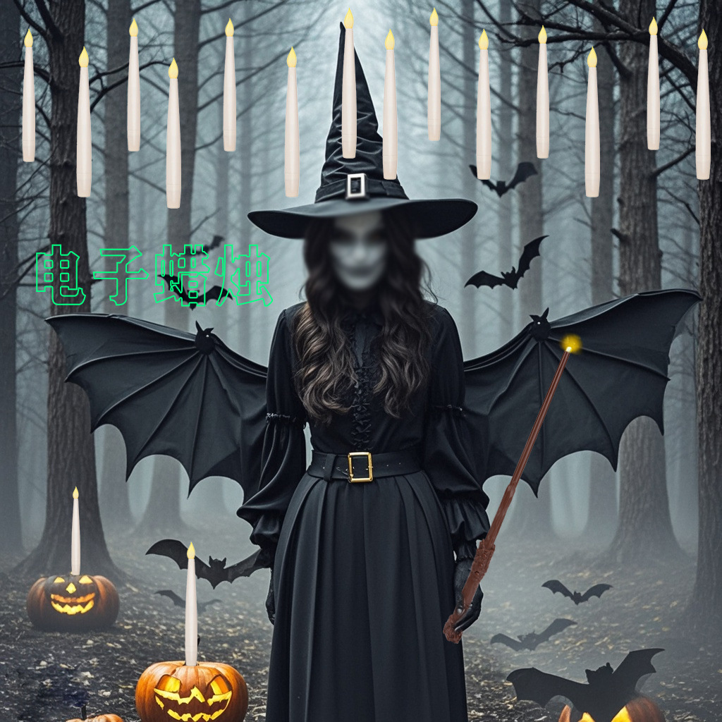 亚马逊万圣节LED电子蜡烛 悬浮发光蜡烛灯魔法棒礼物氛围布置派对
