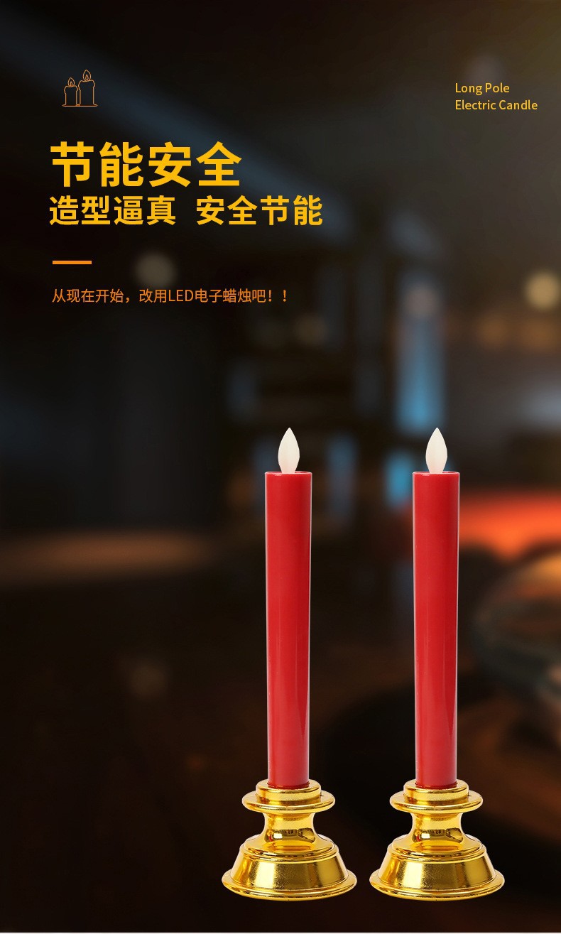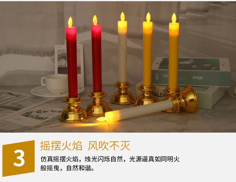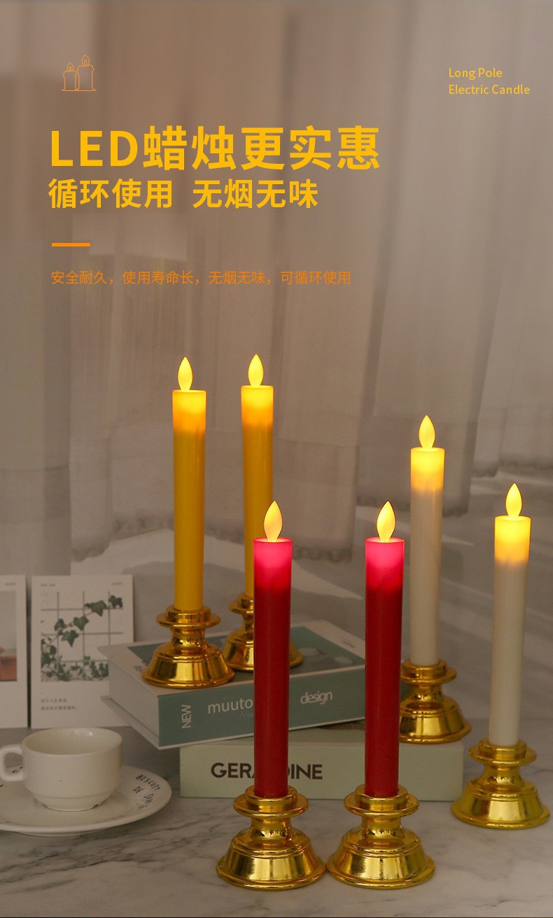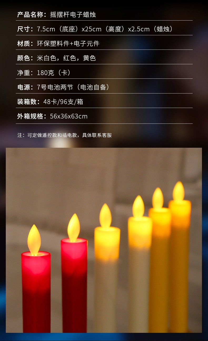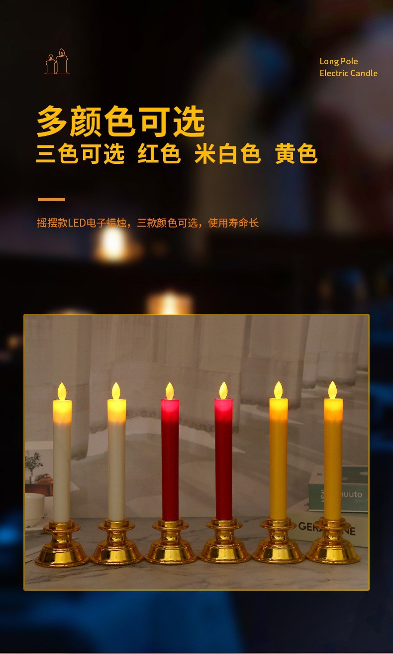 电子蜡烛厂家直销长杆塑料摇摆教堂供佛供财神气氛布置热