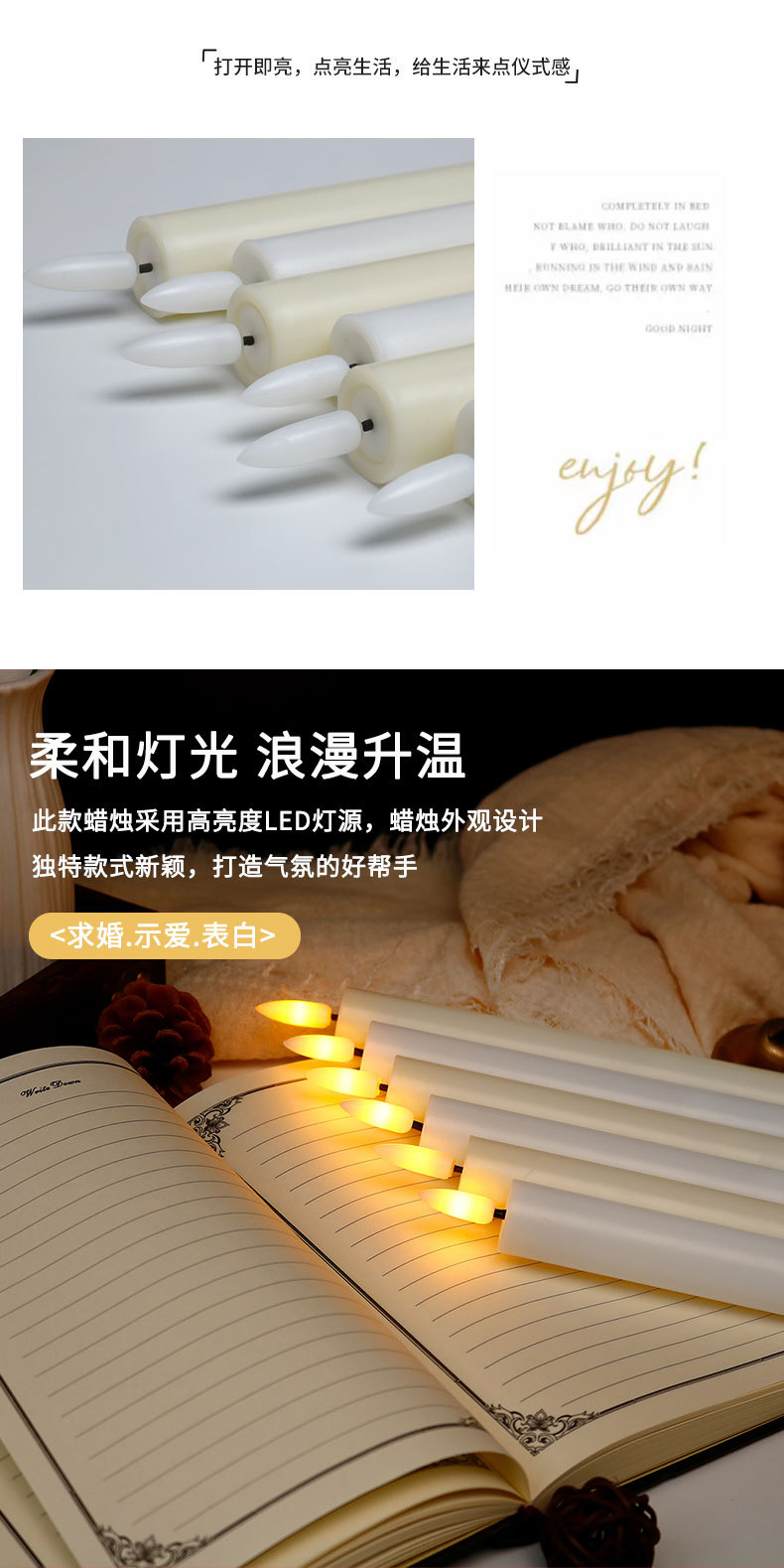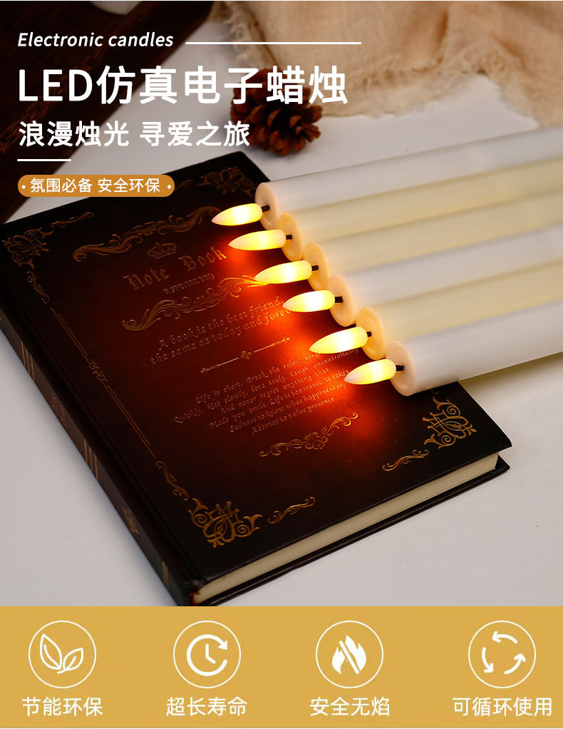 led电子蜡烛可遥控长条杆蜡仿真黄闪平口子弹头餐厅派对家用装饰