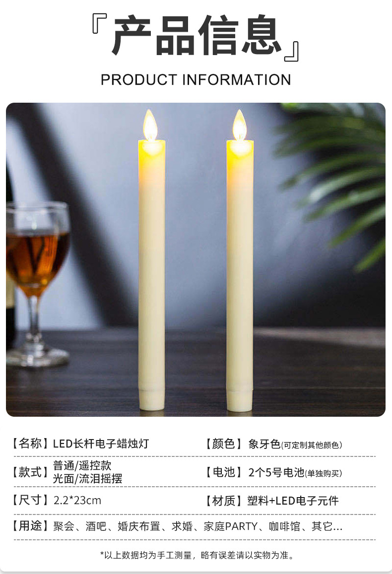 长杆蜡烛灯 酒店餐厅装饰仿真摇摆led电子蜡烛 家居应急照明杆蜡