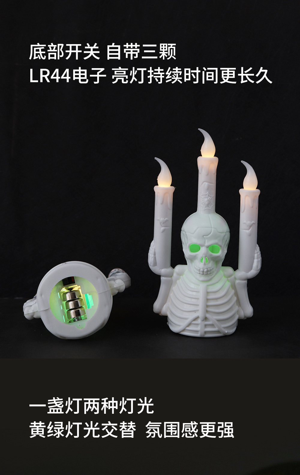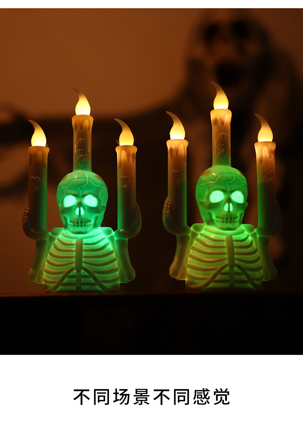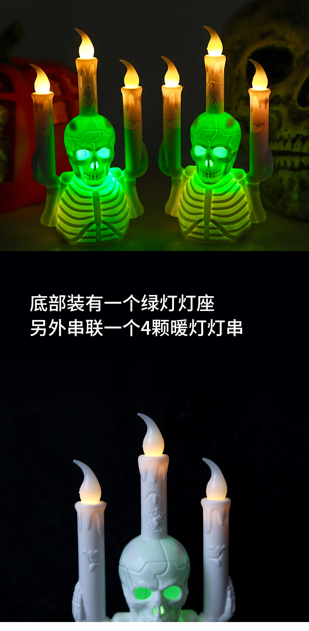 跨境万圣节骷髅烛台灯新款LED电子蜡烛灯气氛布置道具桌摆南瓜灯