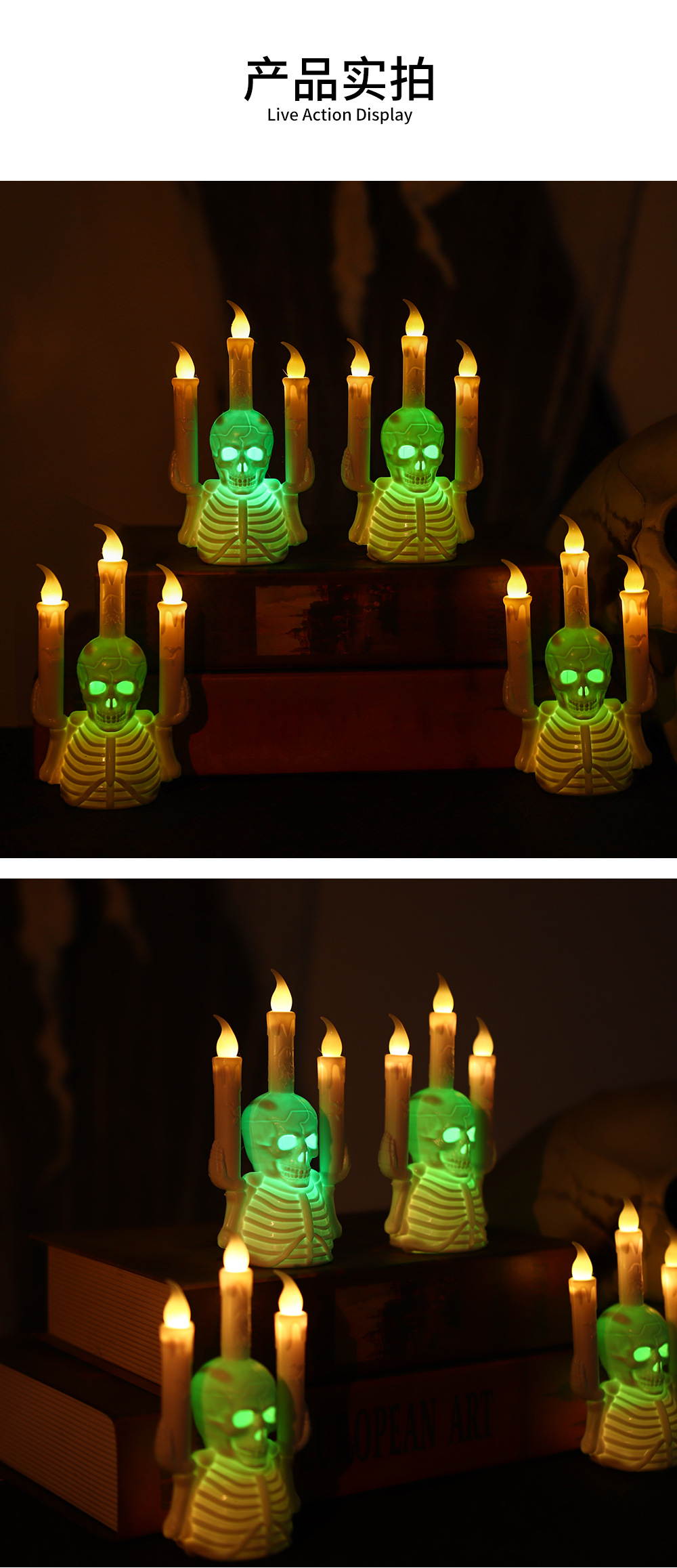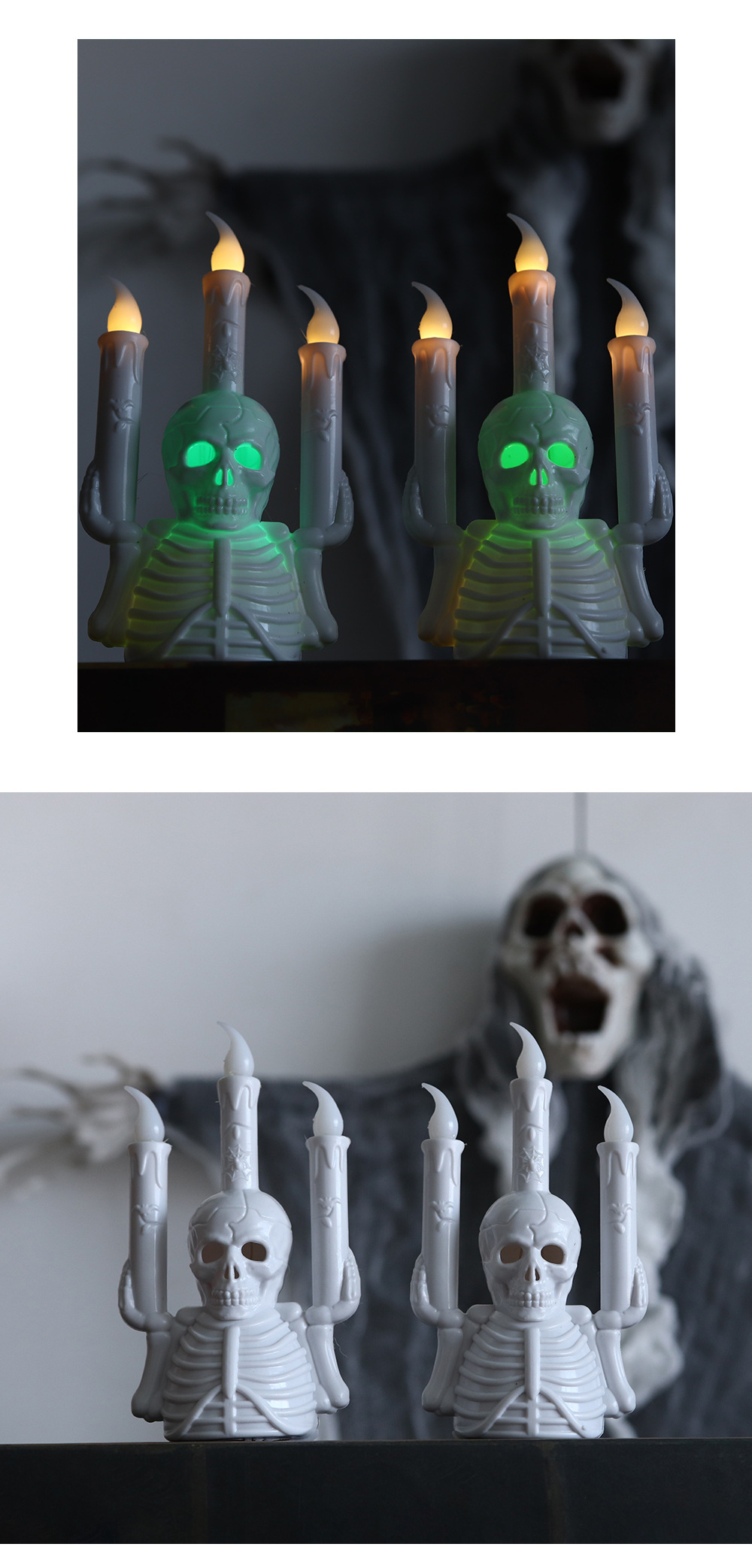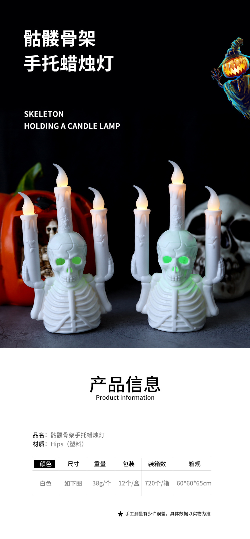 跨境万圣节骷髅烛台灯新款LED电子蜡烛灯气氛布置道具桌摆南瓜灯
