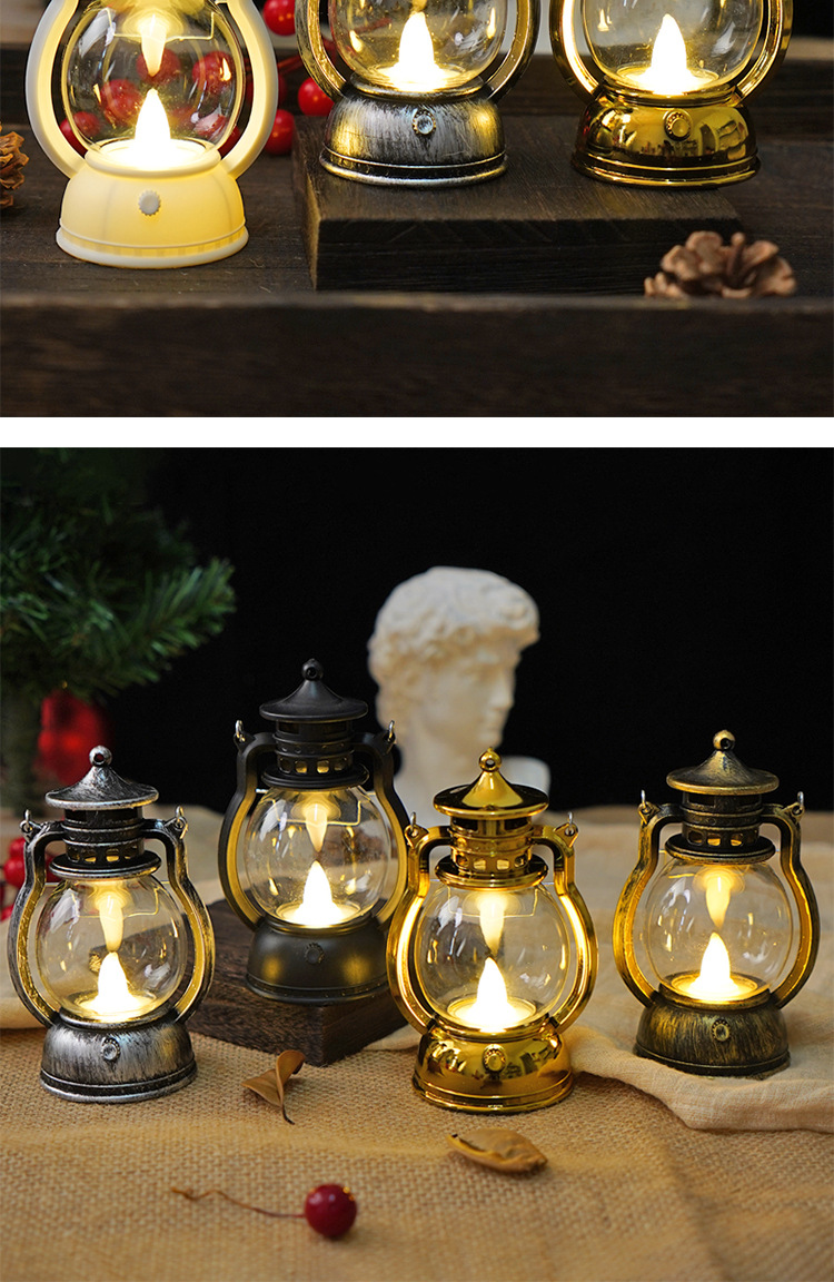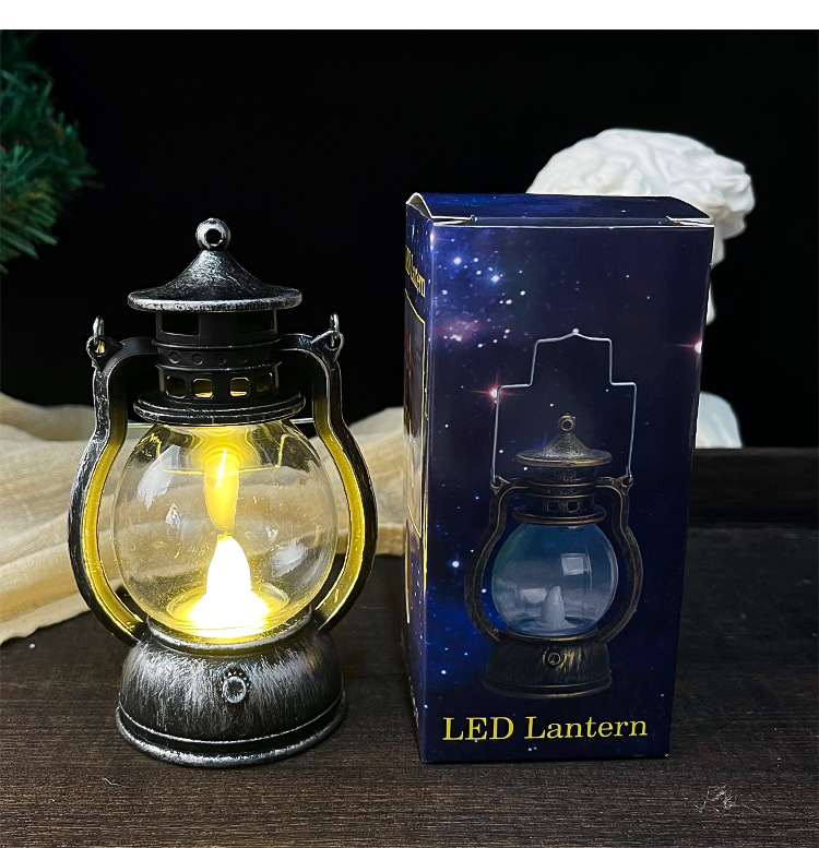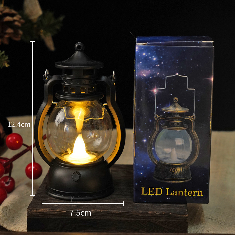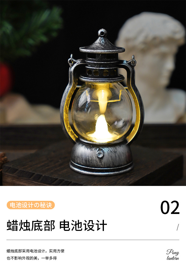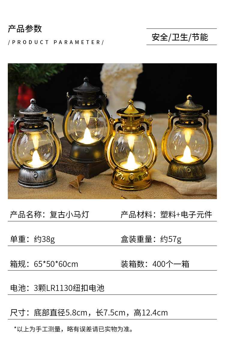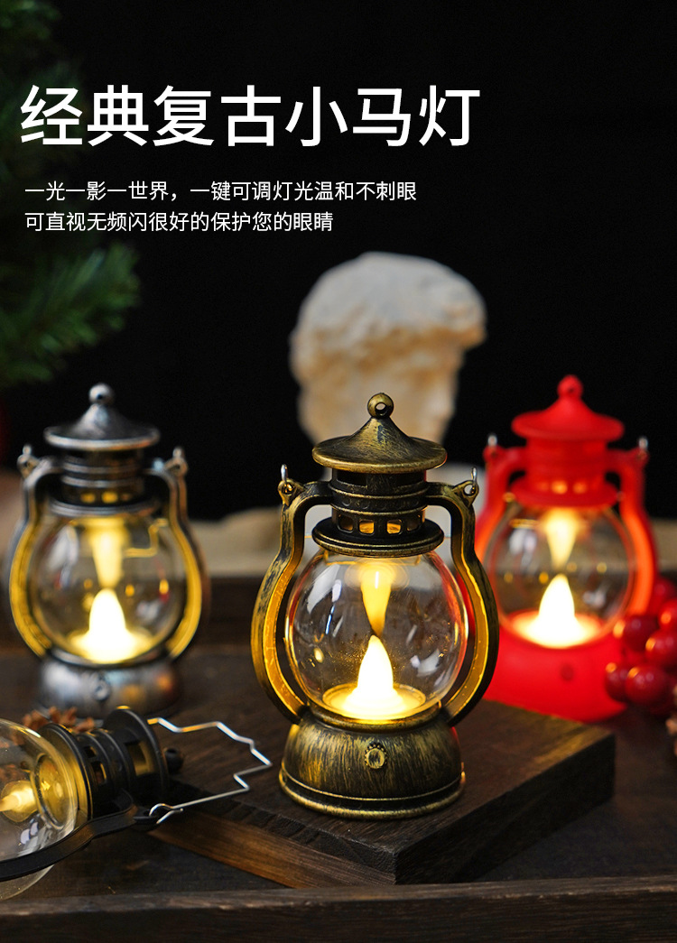 跨境复古小马灯LED电子蜡烛灯手提小油灯圣诞万圣节氛围装饰摆件