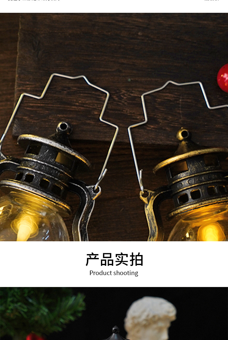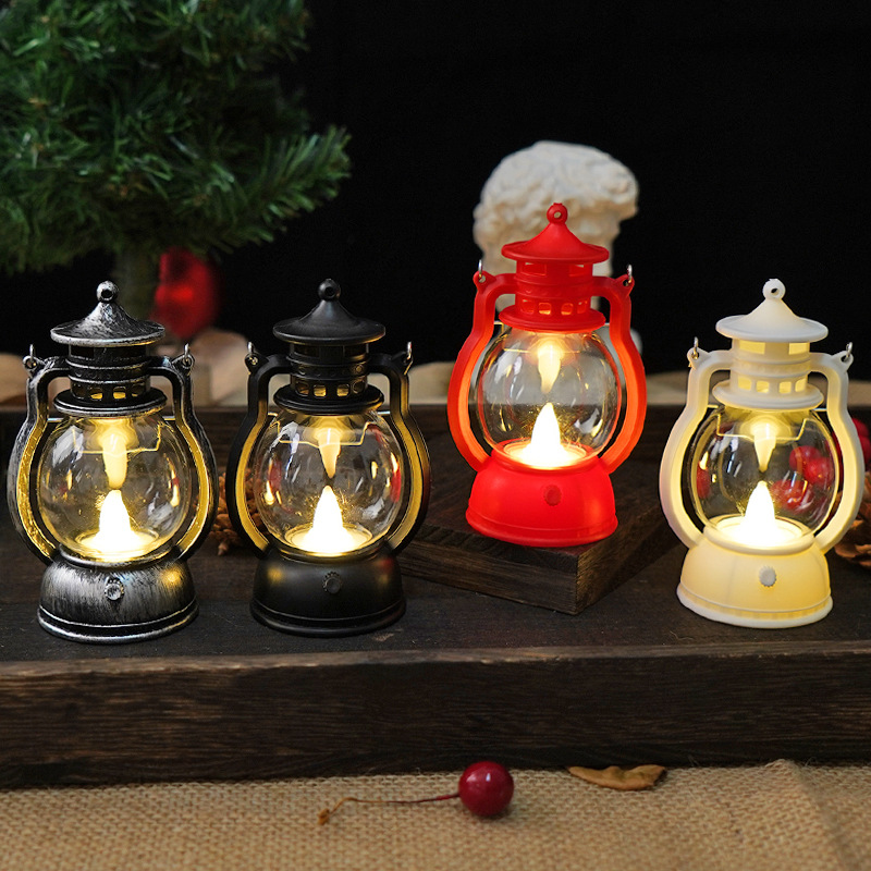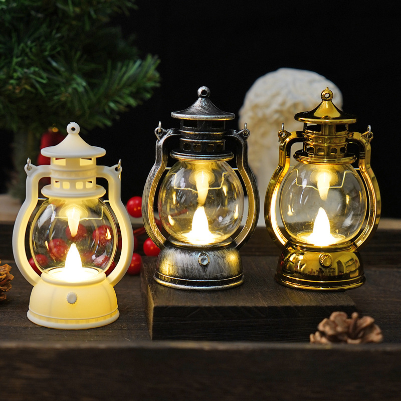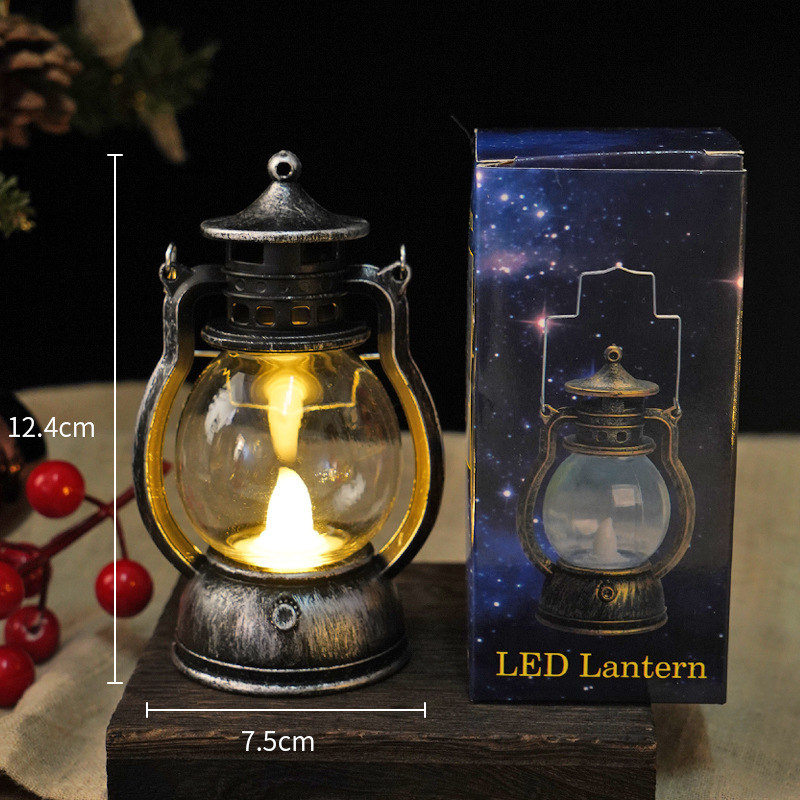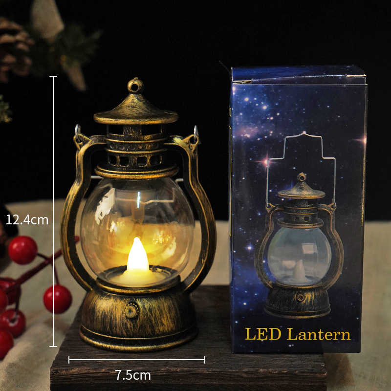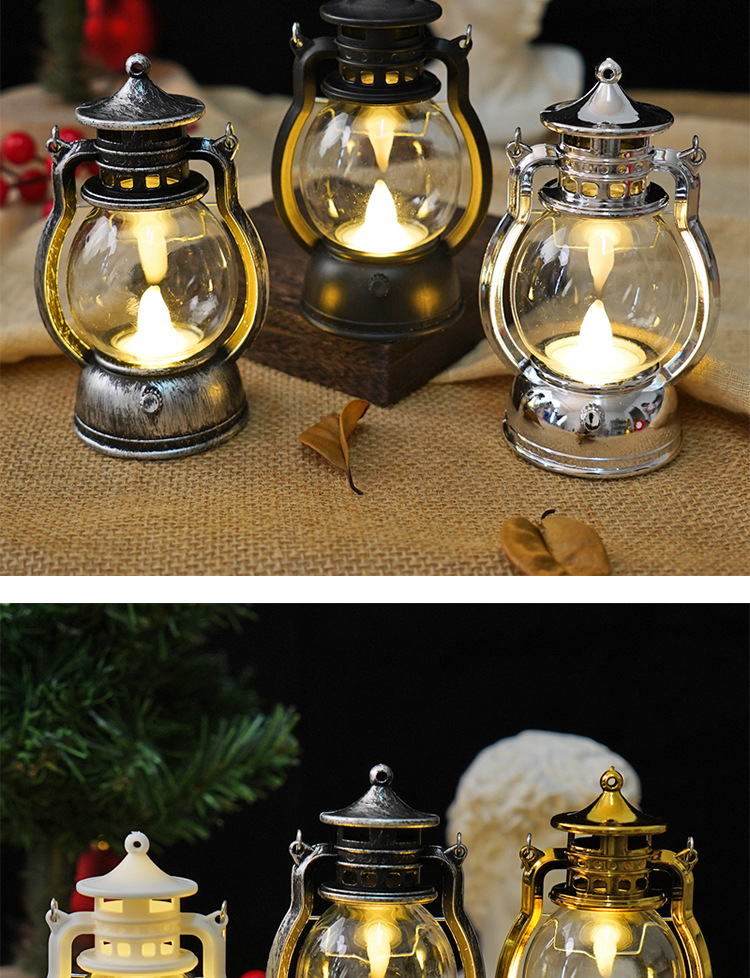 跨境复古小马灯LED电子蜡烛灯手提小油灯圣诞万圣节氛围装饰摆件