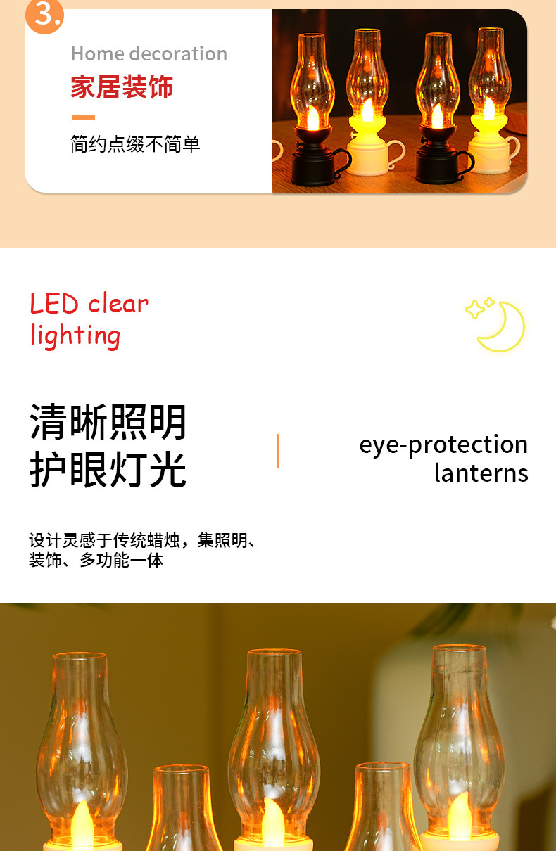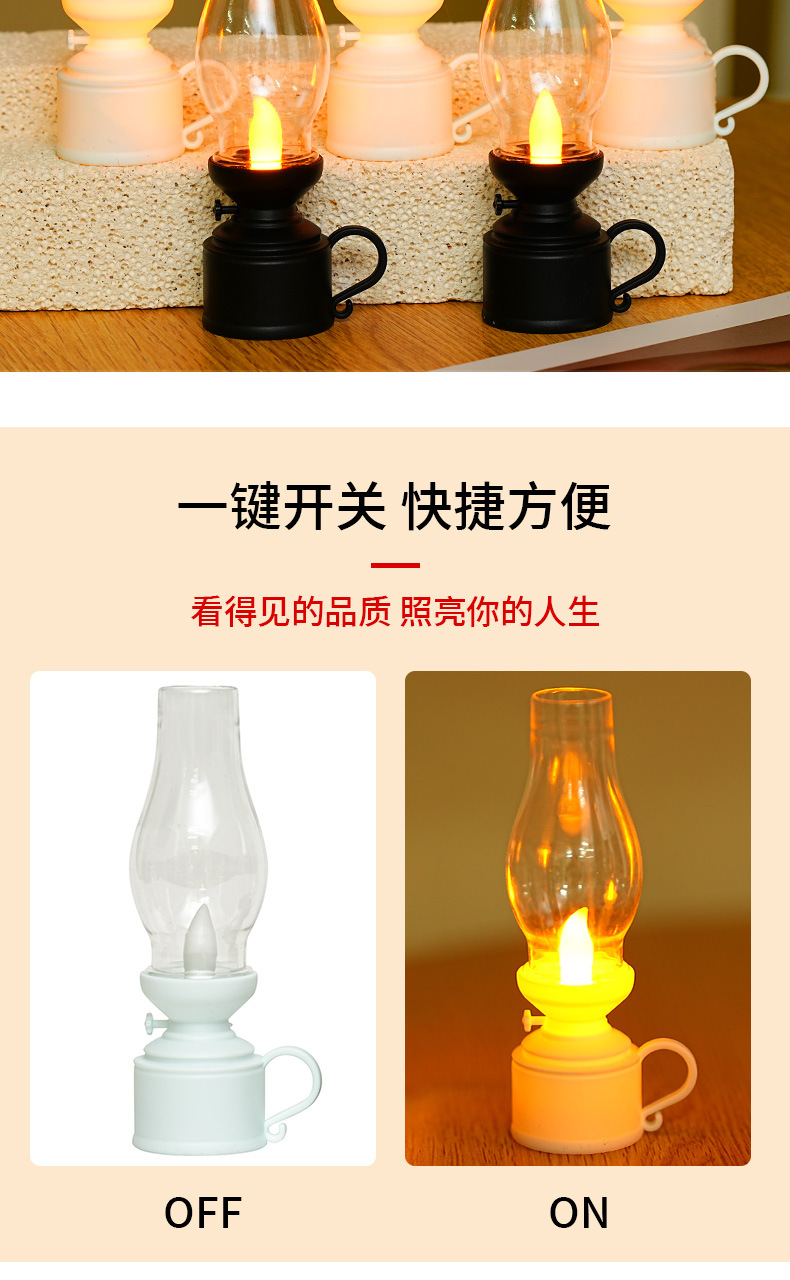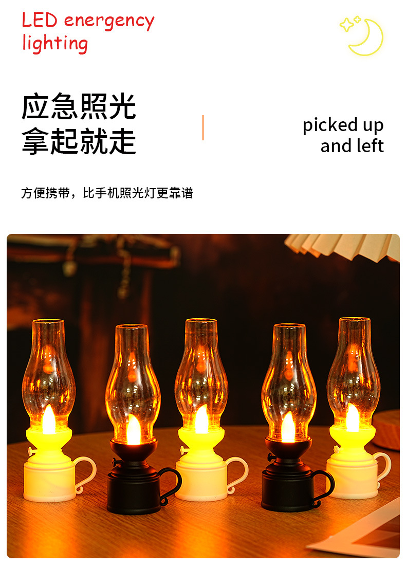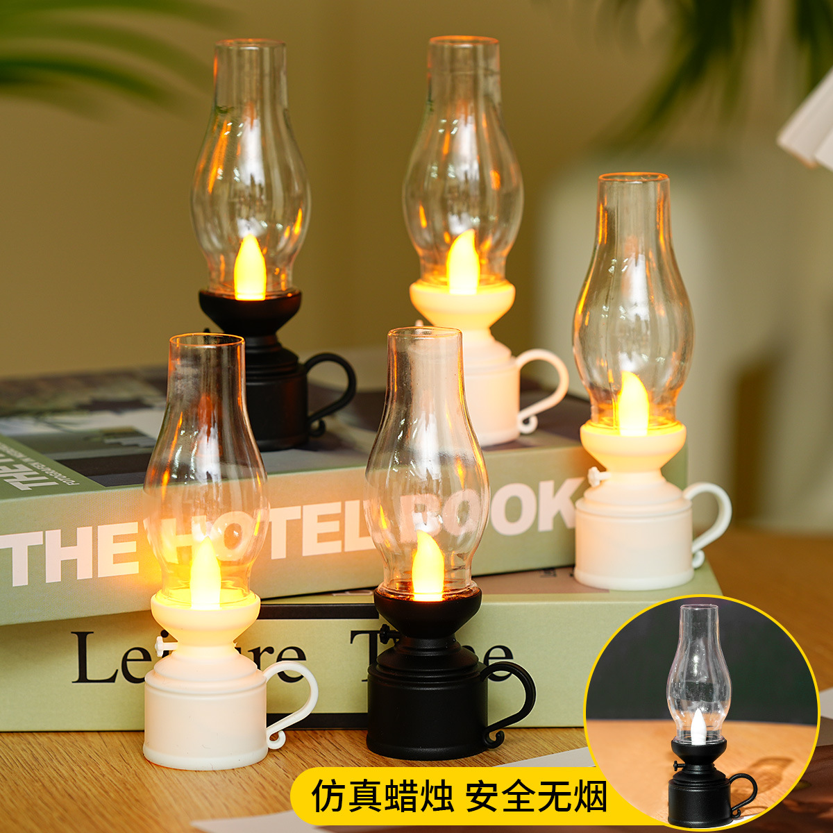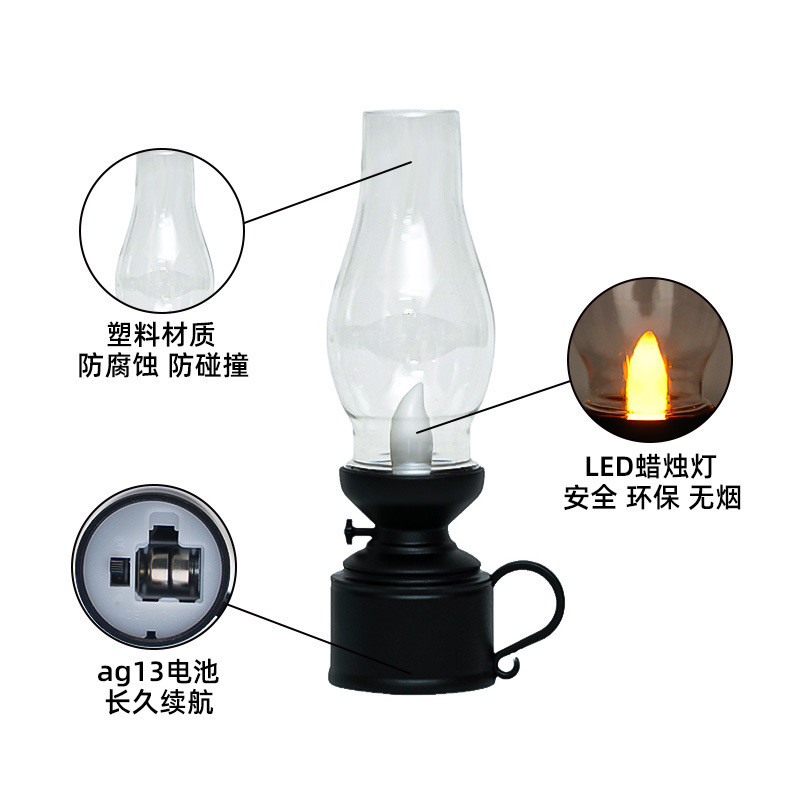 电子蜡烛复古油灯仿古LED煤油灯拍照氛围装饰灯无烟蜡烛户外露营