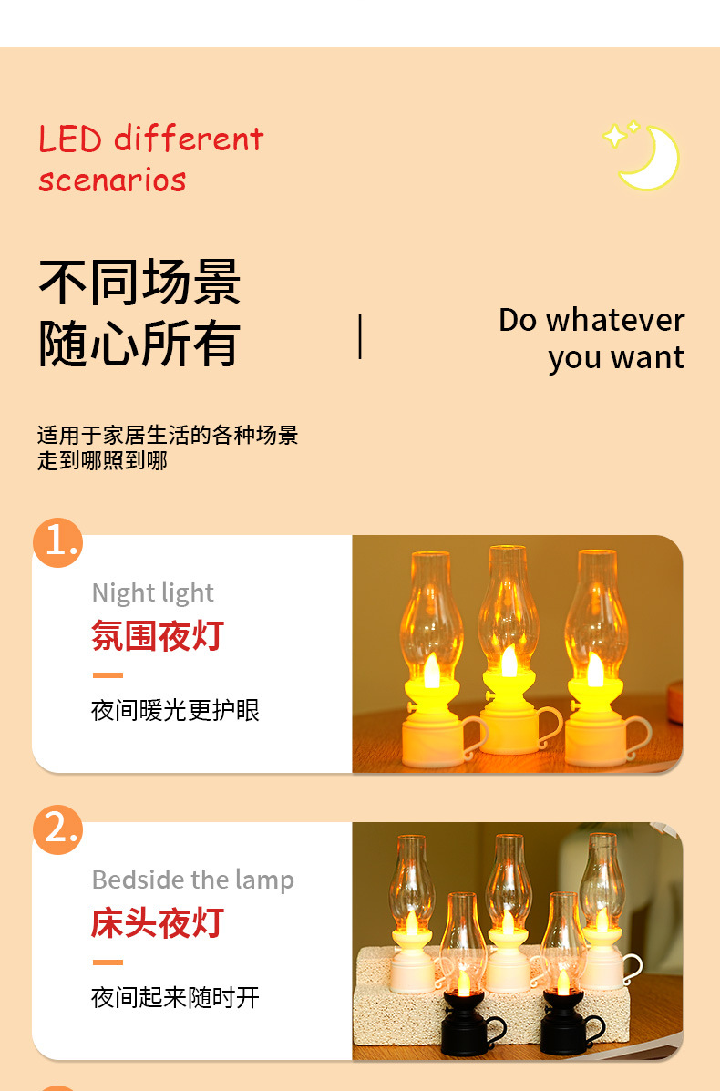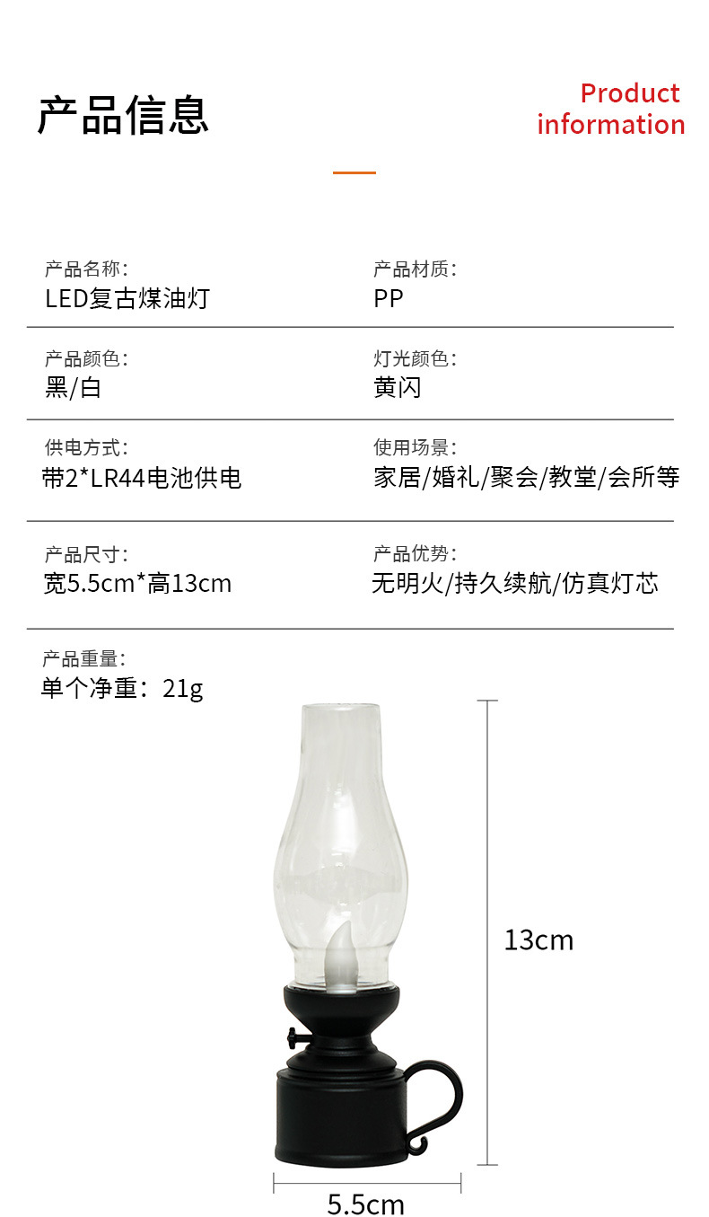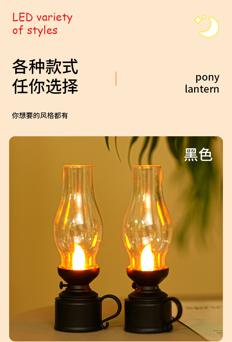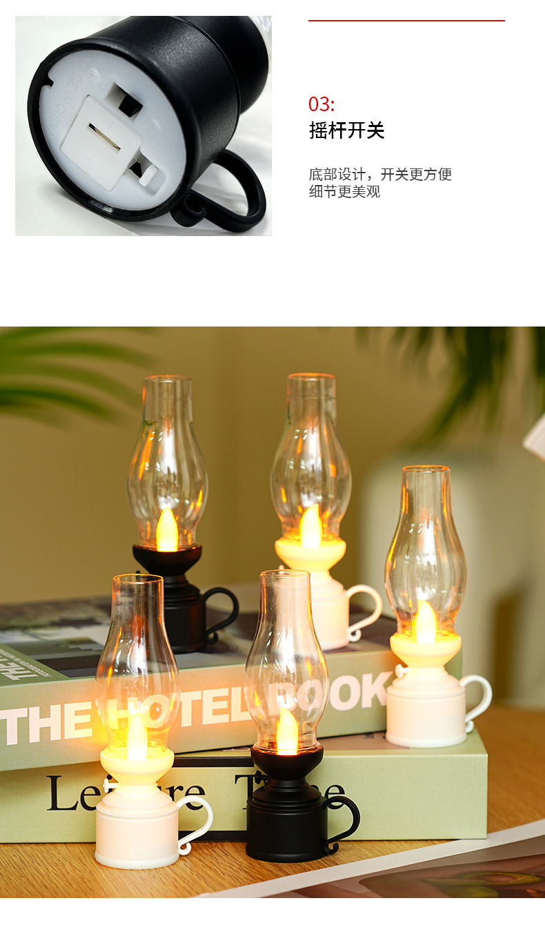 电子蜡烛复古油灯仿古LED煤油灯拍照氛围装饰灯无烟蜡烛户外露营