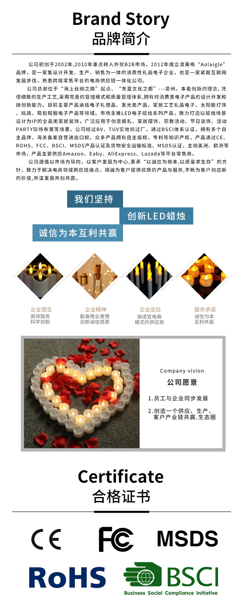 光能充电太阳能蜡烛灯 家用自亮家居户外庭院装饰电子LED小茶蜡