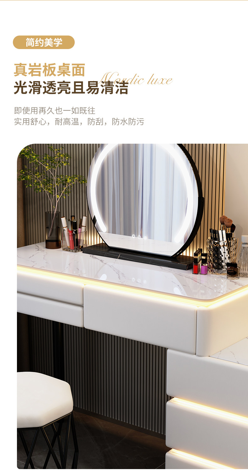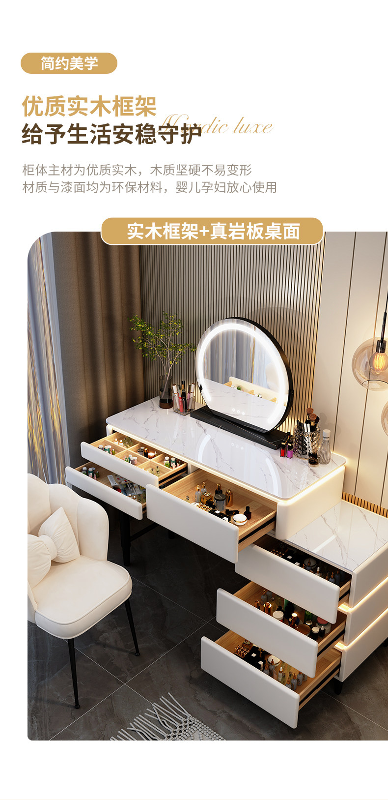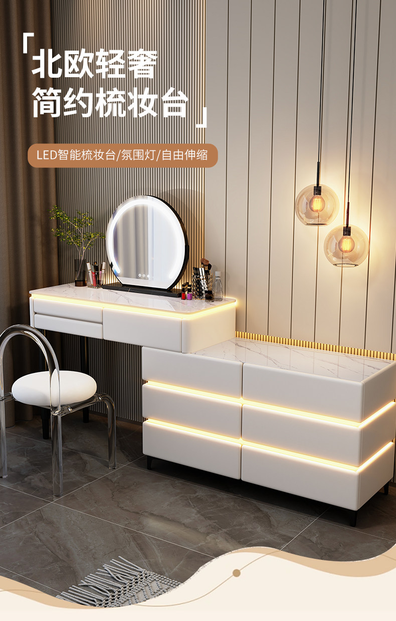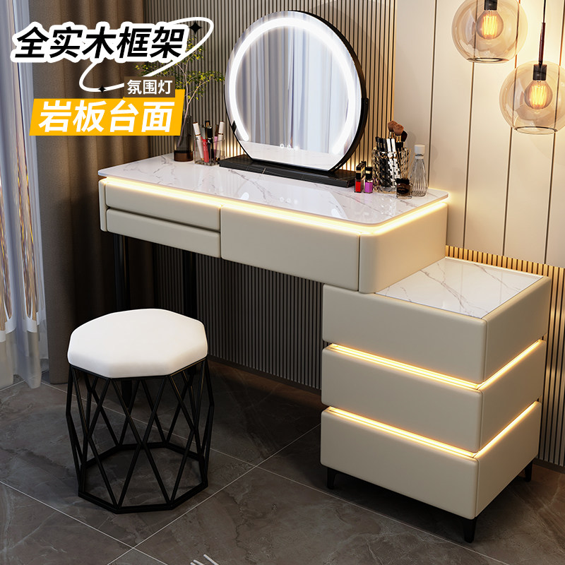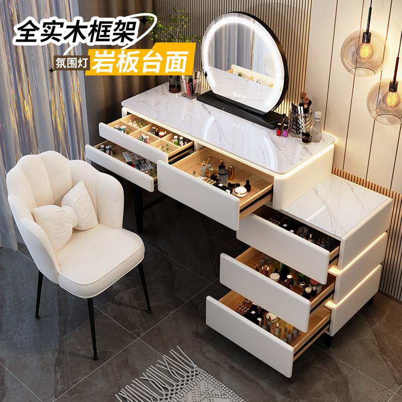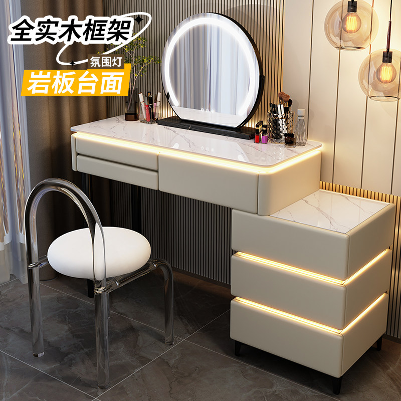 实木奶油风氛围灯梳妆台卧室现代简约一体网红轻奢网红爆款化妆桌