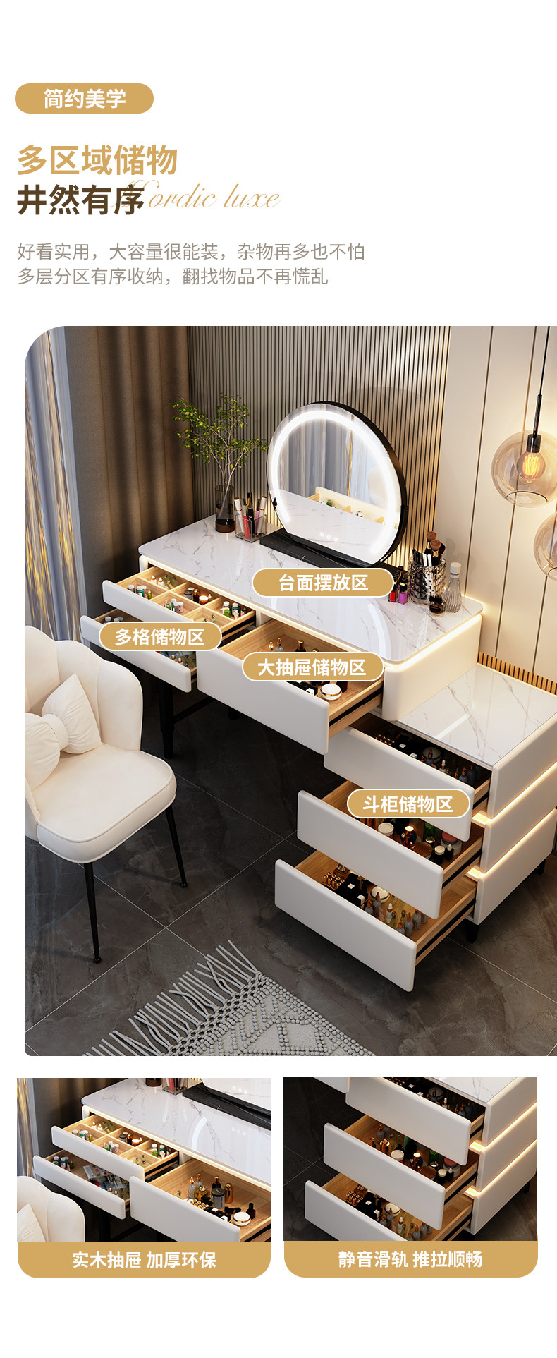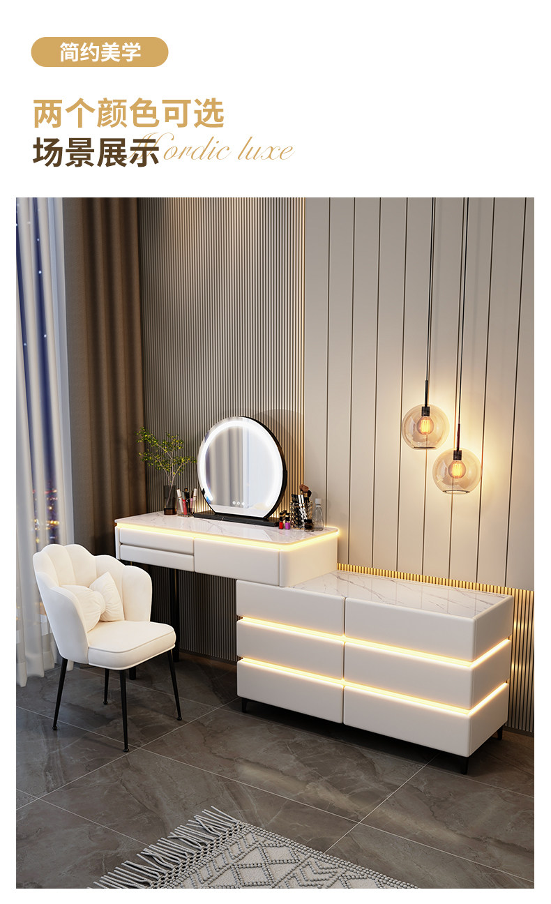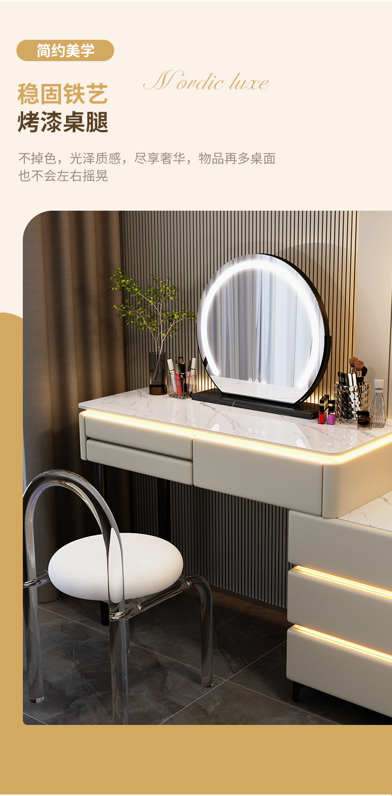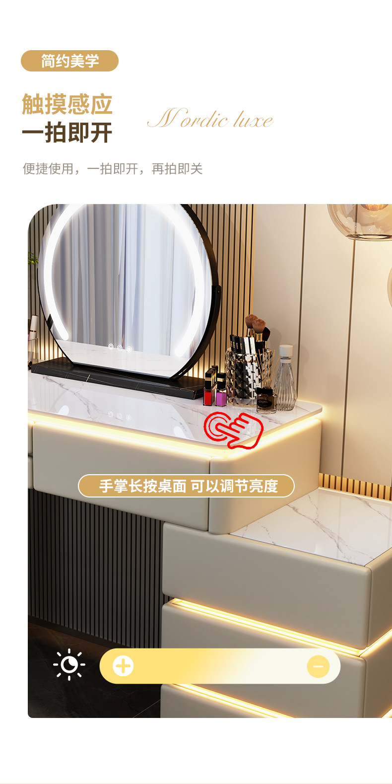 实木奶油风氛围灯梳妆台卧室现代简约一体网红轻奢网红爆款化妆桌