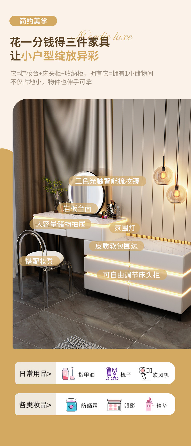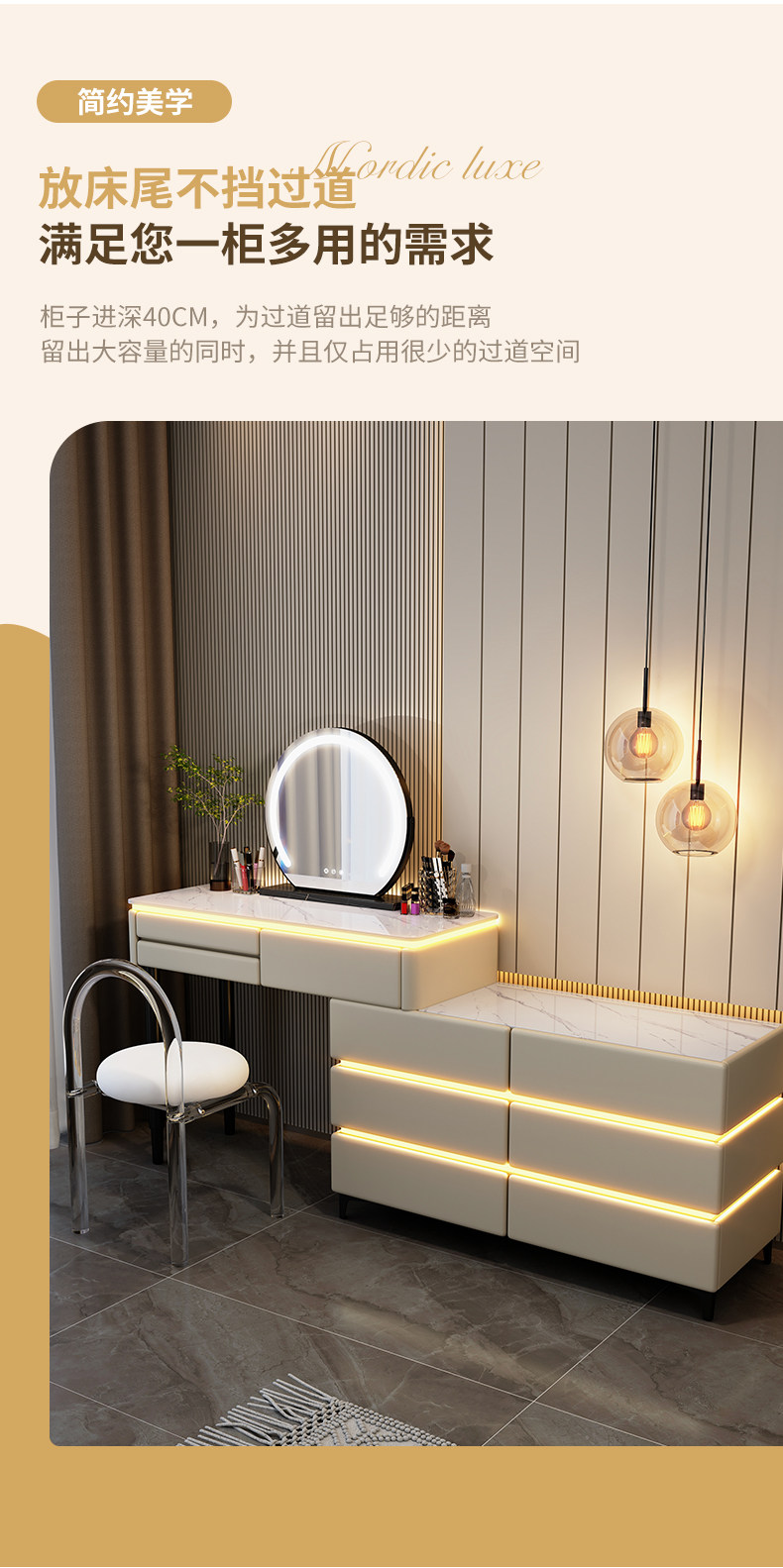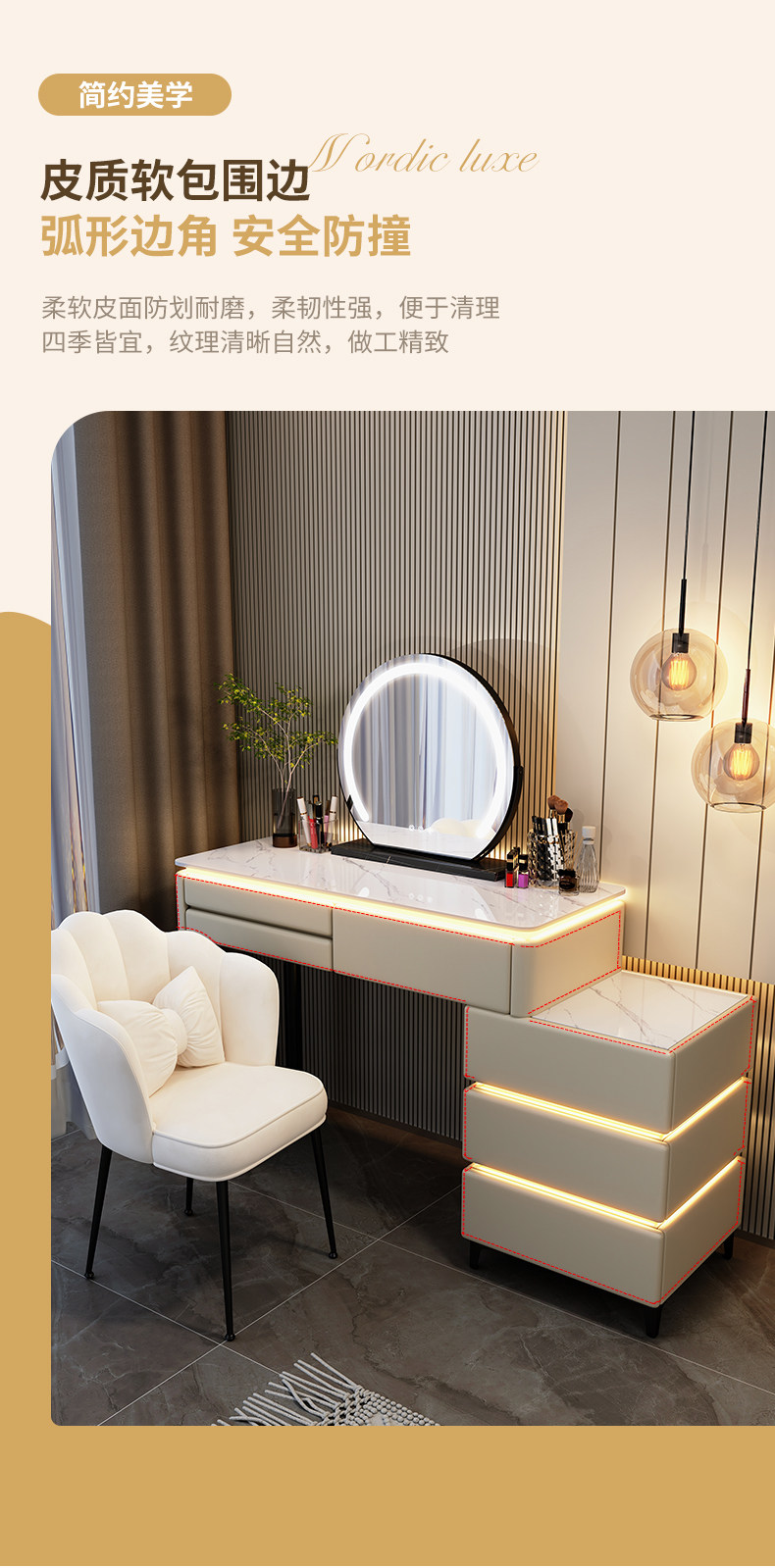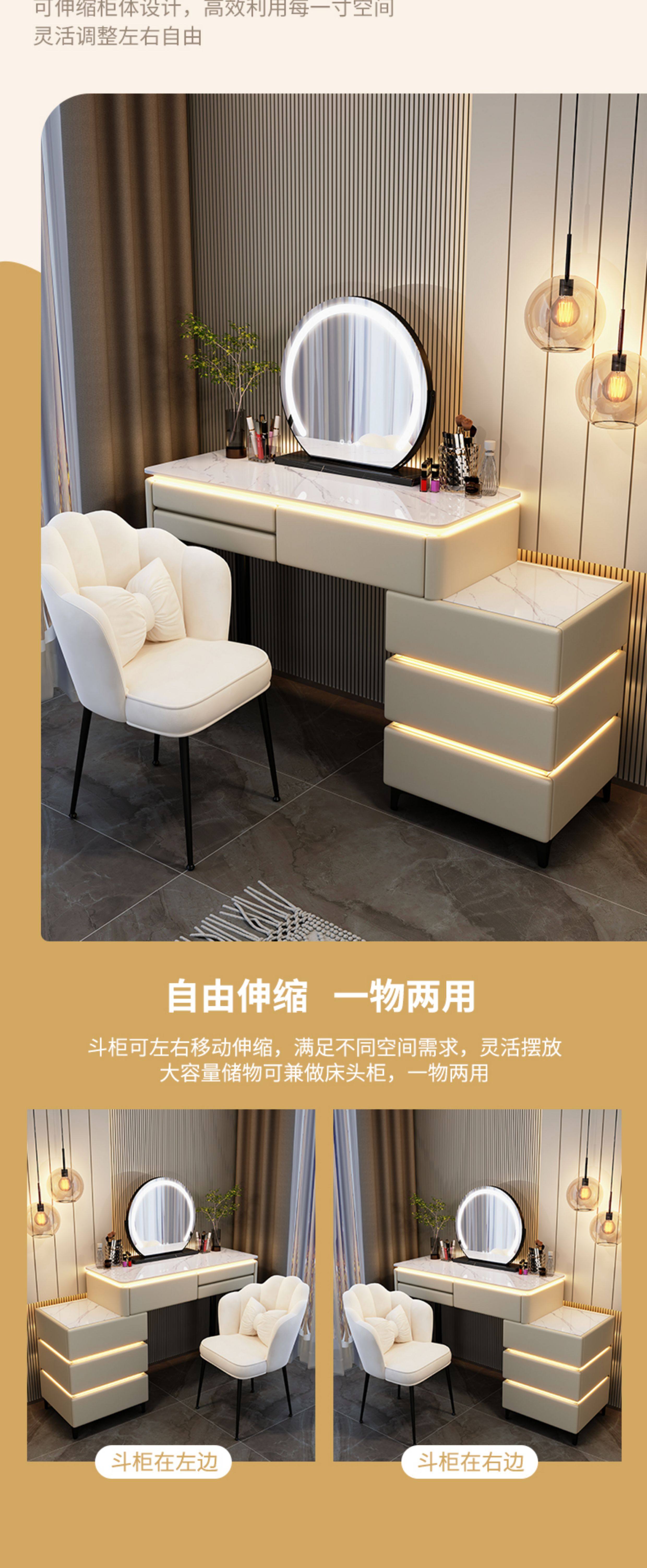 实木奶油风氛围灯梳妆台卧室现代简约一体网红轻奢网红爆款化妆桌