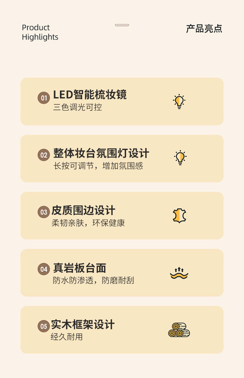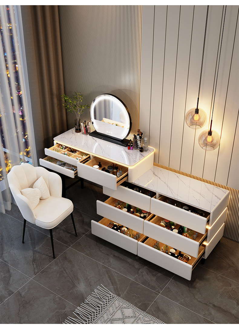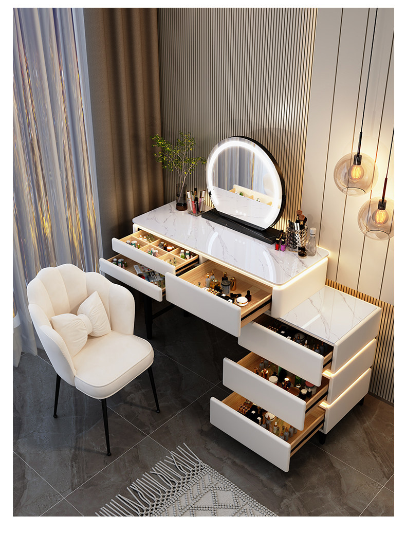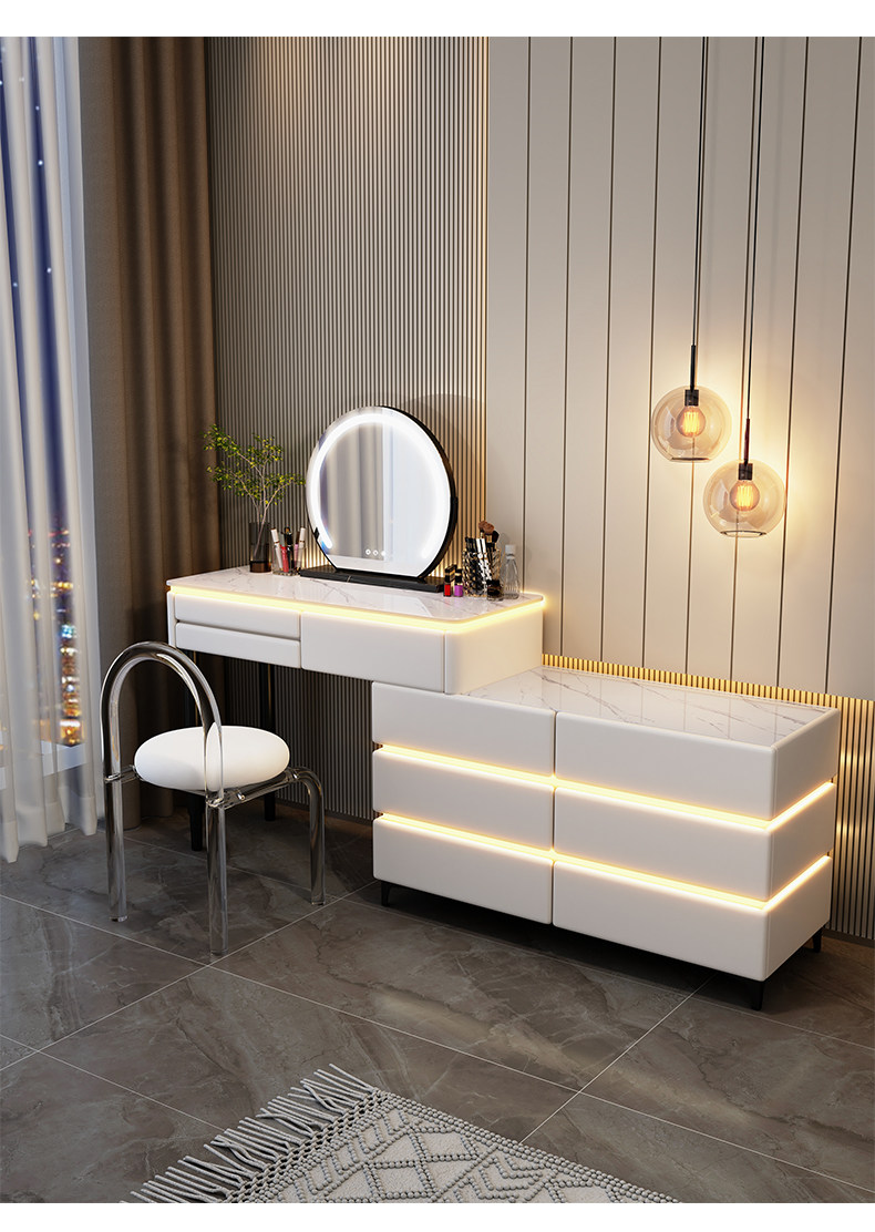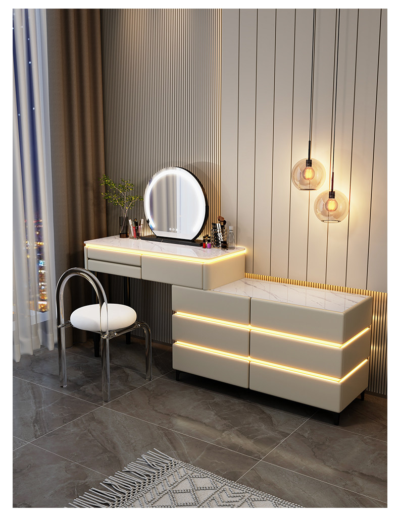 实木奶油风氛围灯梳妆台卧室现代简约一体网红轻奢网红爆款化妆桌