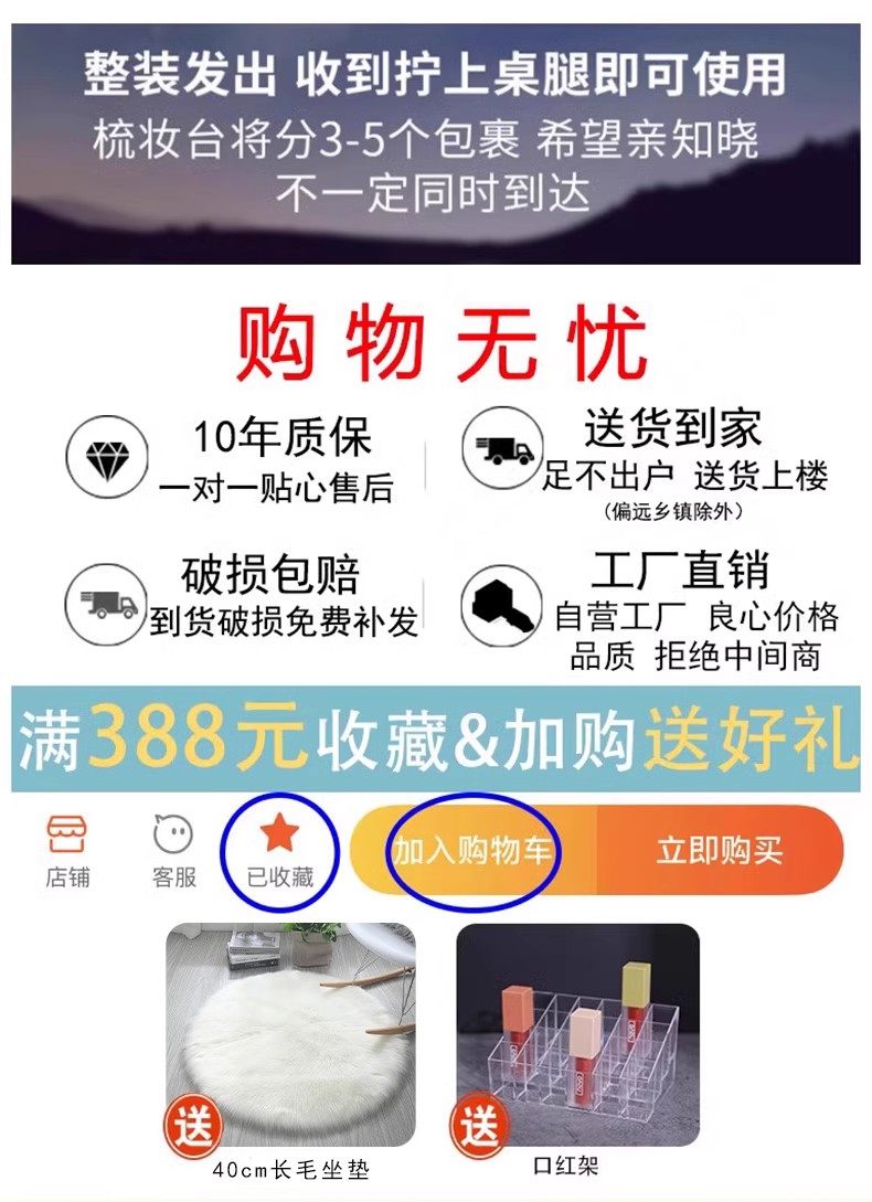 | three drawers side cabinet * 120cm khaki color + cabinet + mirror (no stool) * complete(三抽边柜款*120CM卡其色+柜+镜(无凳)*整装) | USD $149.3 | 200 piece available |