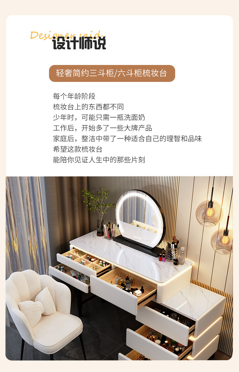 | six-drawer side cabinet * 100cm khaki color + cabinet + mirror + petal chair * complete set(六抽边柜款*100CM卡其色+柜+镜+花瓣椅*整装) | USD $198.61 | 200 piece available |