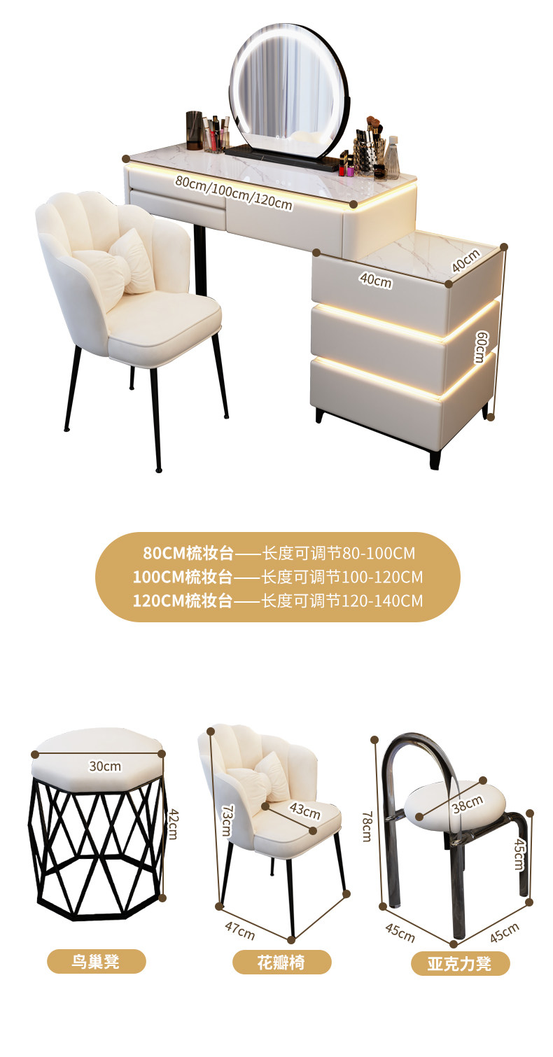 | three-drawer side cabinet * 80cm white + cabinet + mirror + petal chair * complete set(三抽边柜款*80CM白色+柜+镜+花瓣椅*整装) | USD $156.1 | 200 piece available |