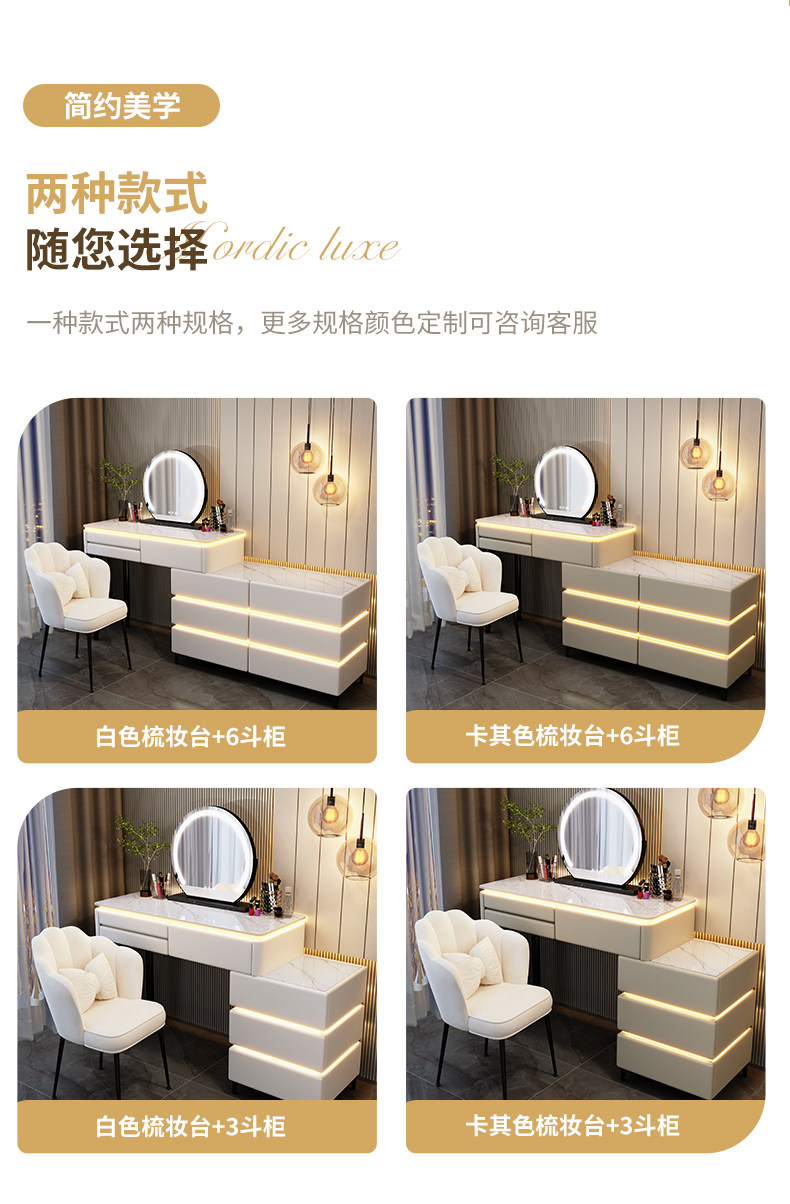 | three-drawer side cabinet * 100cm khaki color + cabinet + mirror + petal chair * complete set(三抽边柜款*100CM卡其色+柜+镜+花瓣椅*整装) | USD $161.2 | 200 piece available |