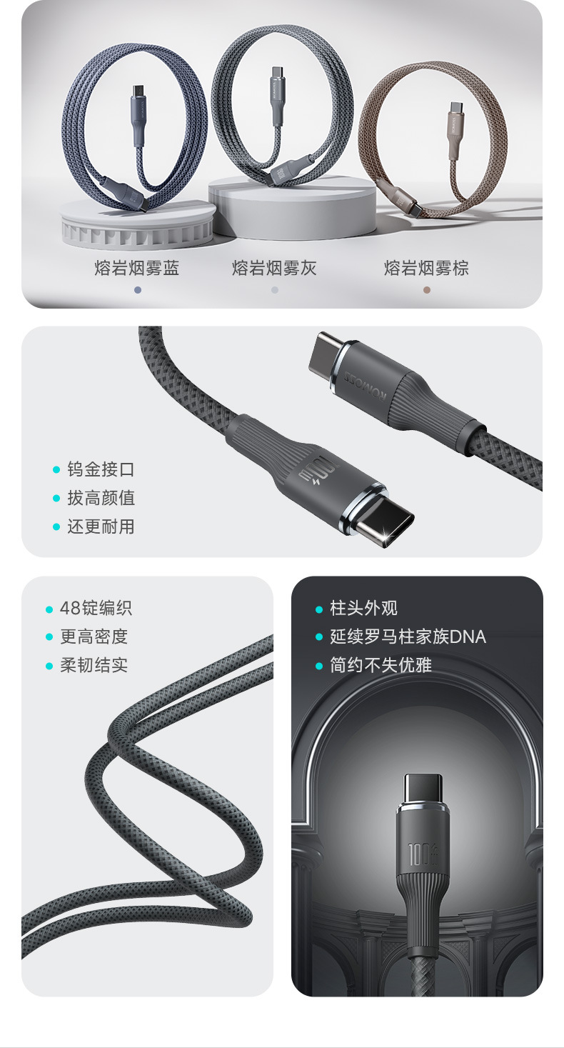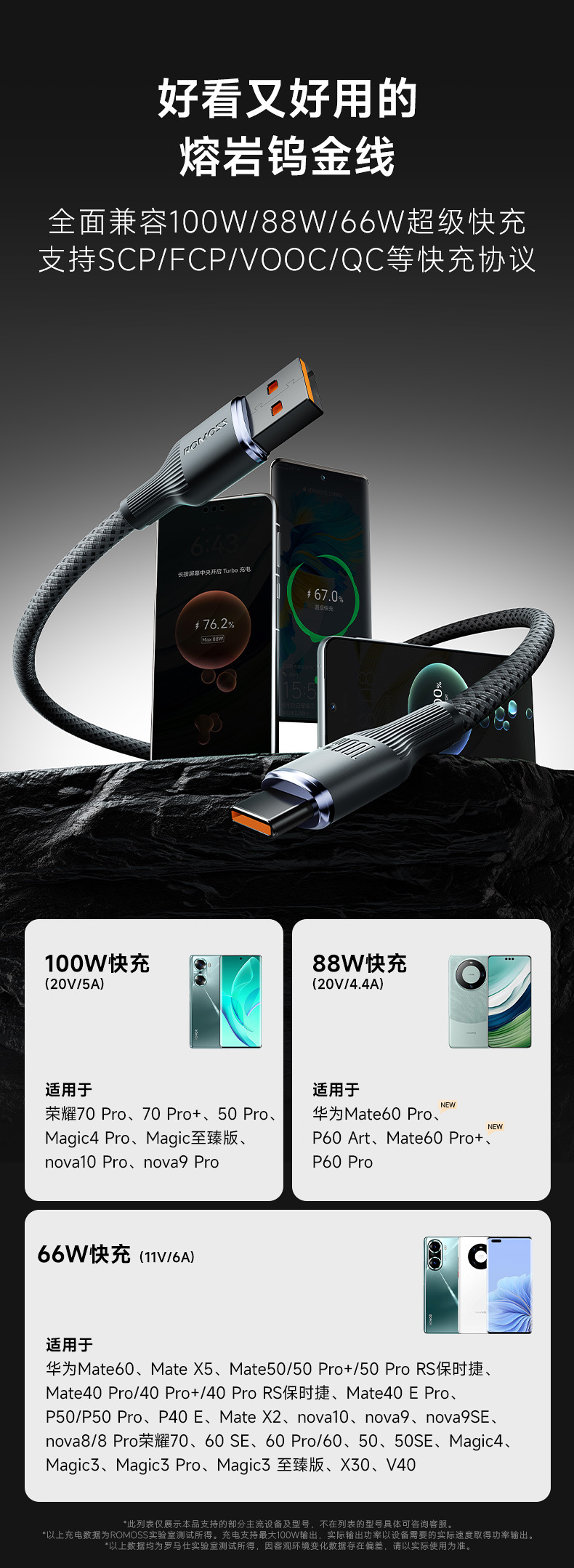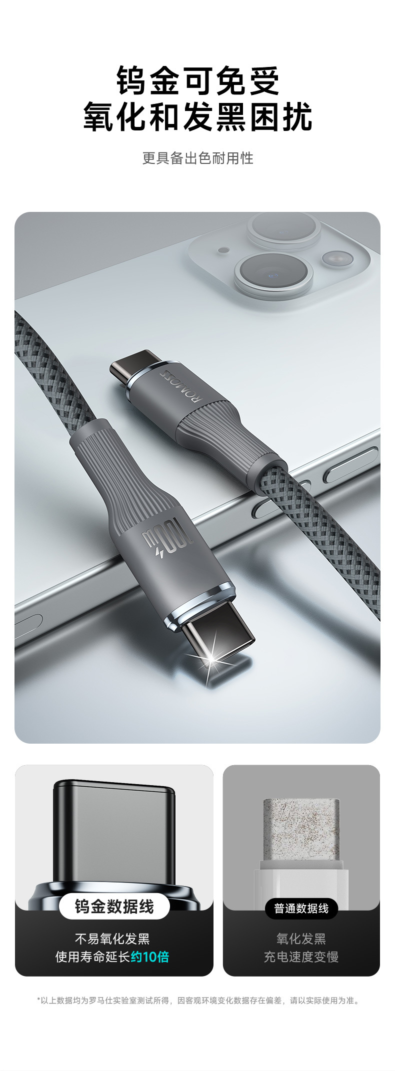 罗马仕6A数据线tpyec充电线适用华为mate60pro66w手机超级快充线