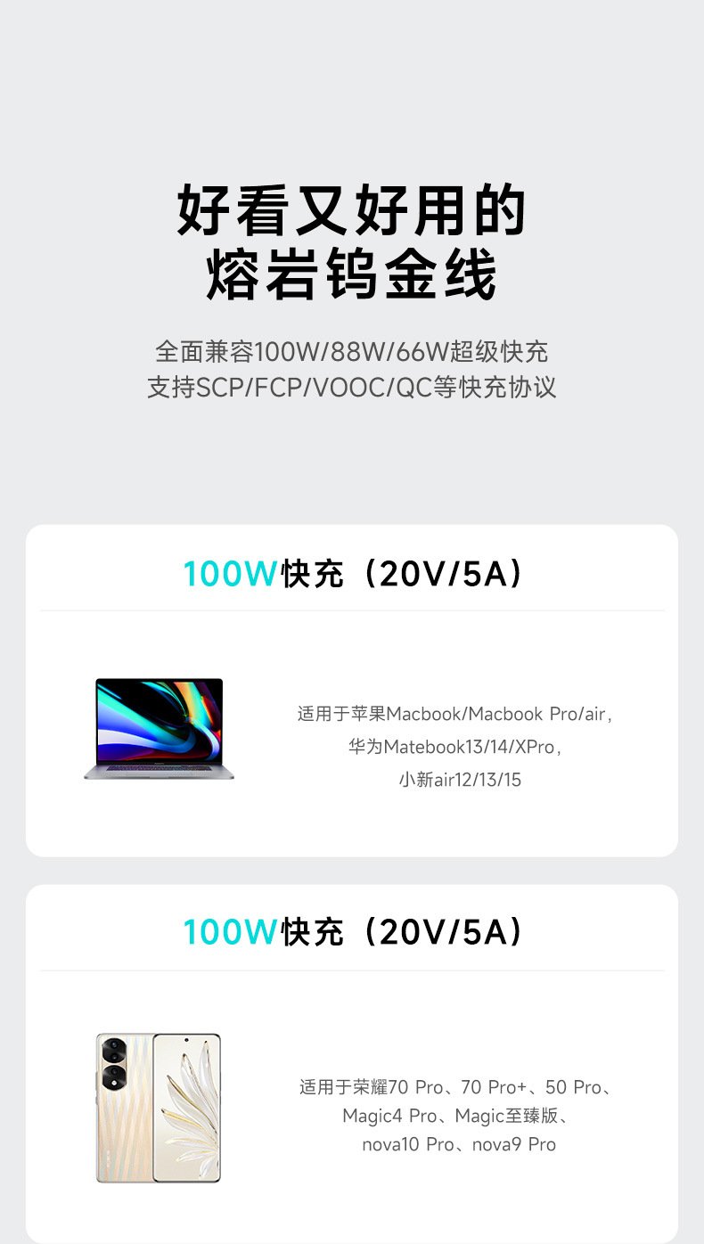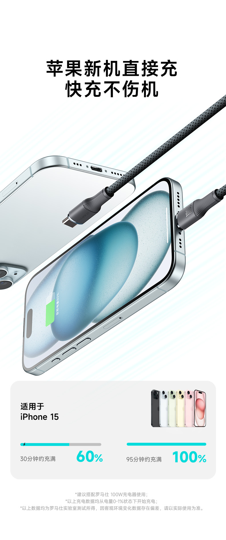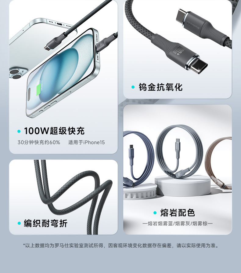 罗马仕6A数据线tpyec充电线适用华为mate60pro66w手机超级快充线